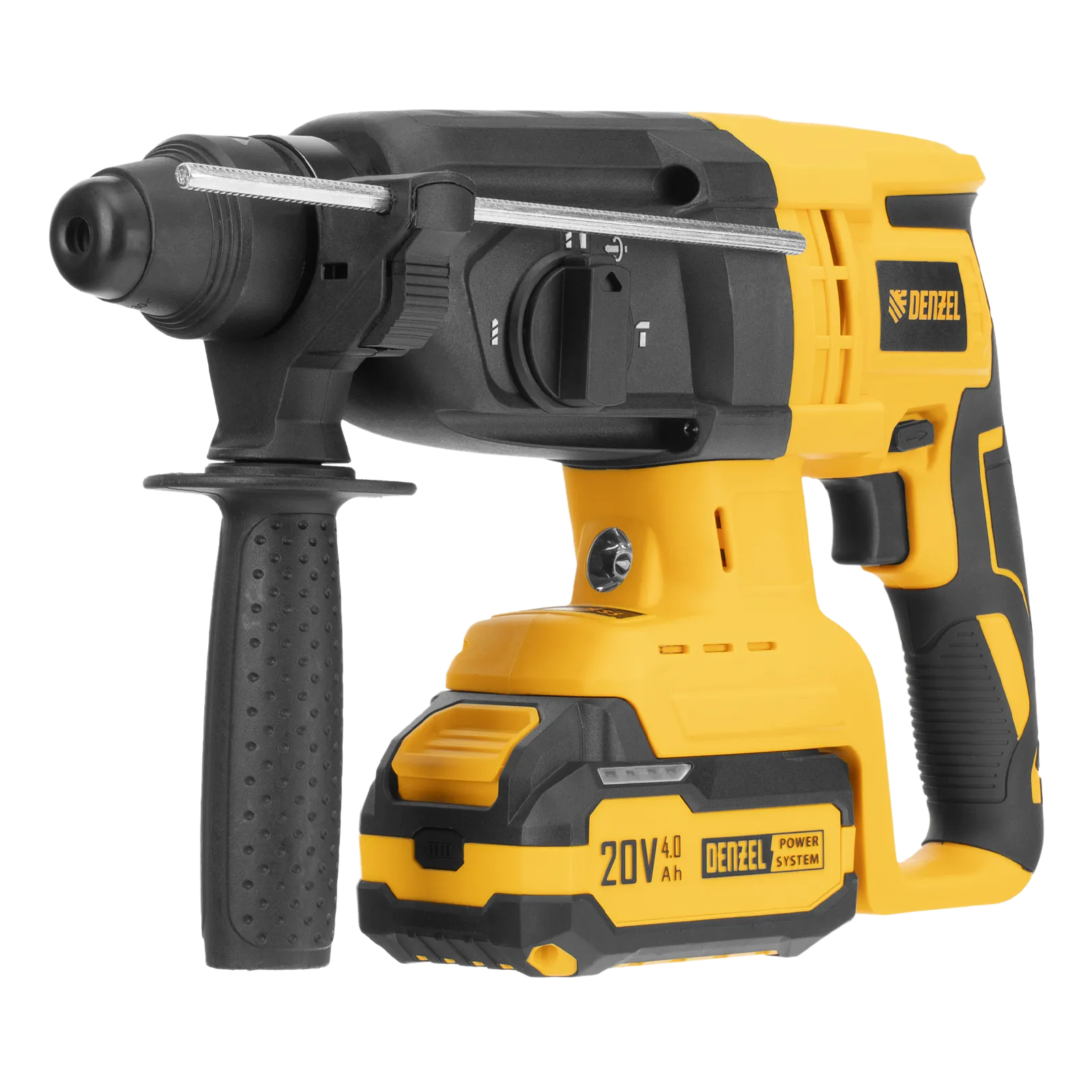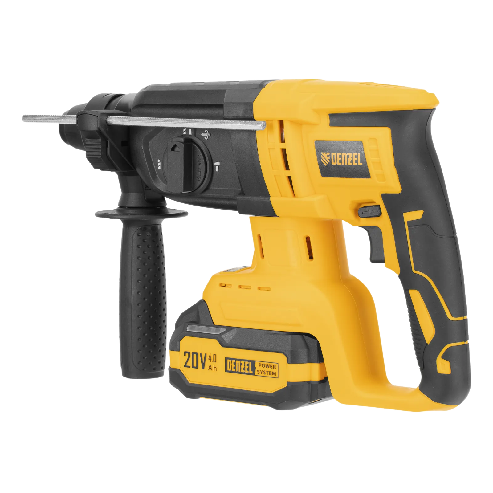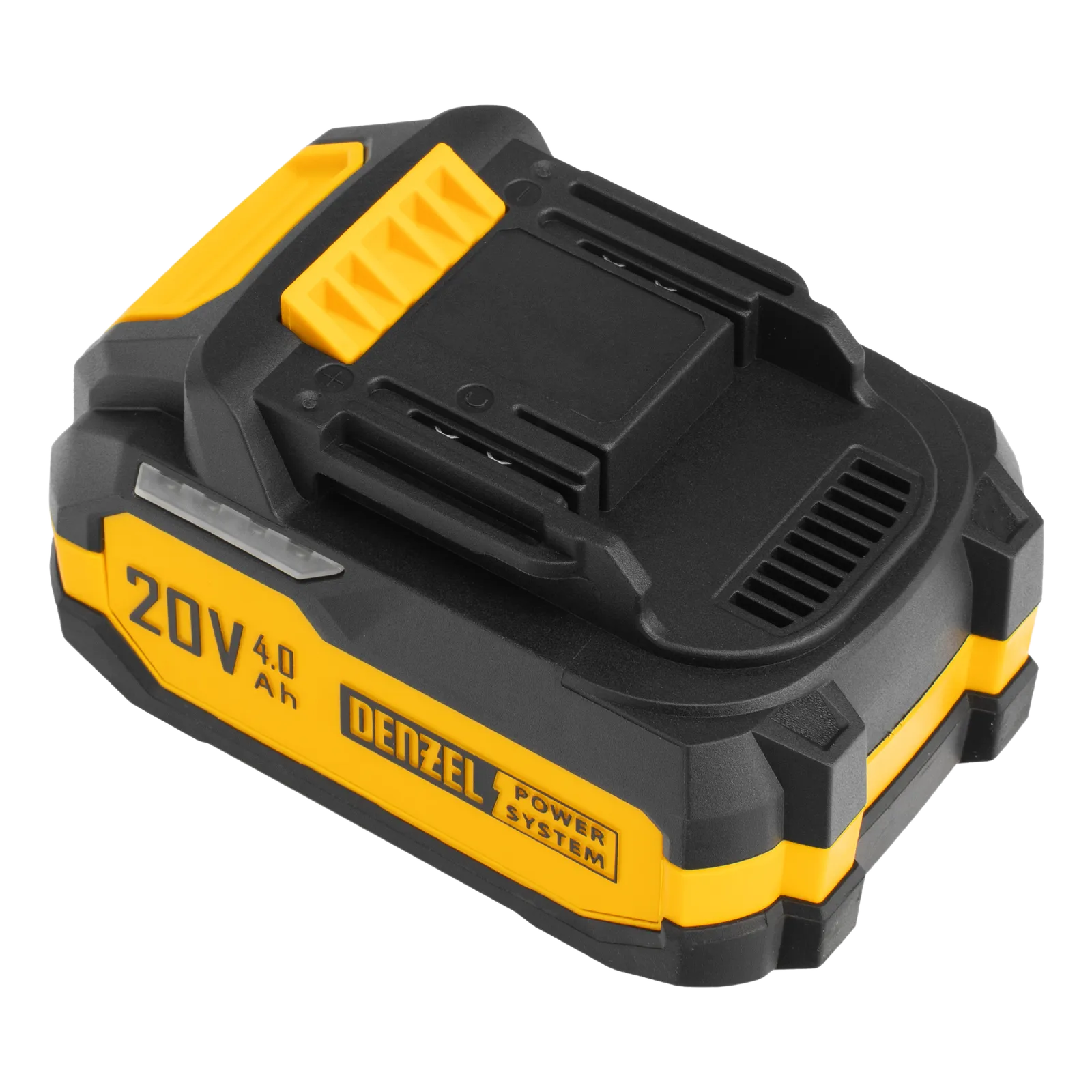 - Универсальность — аккумулятор Li-Ion емкостью 4 А·ч совместим со всеми инструментами единой платформы Denzel Power System 20V.