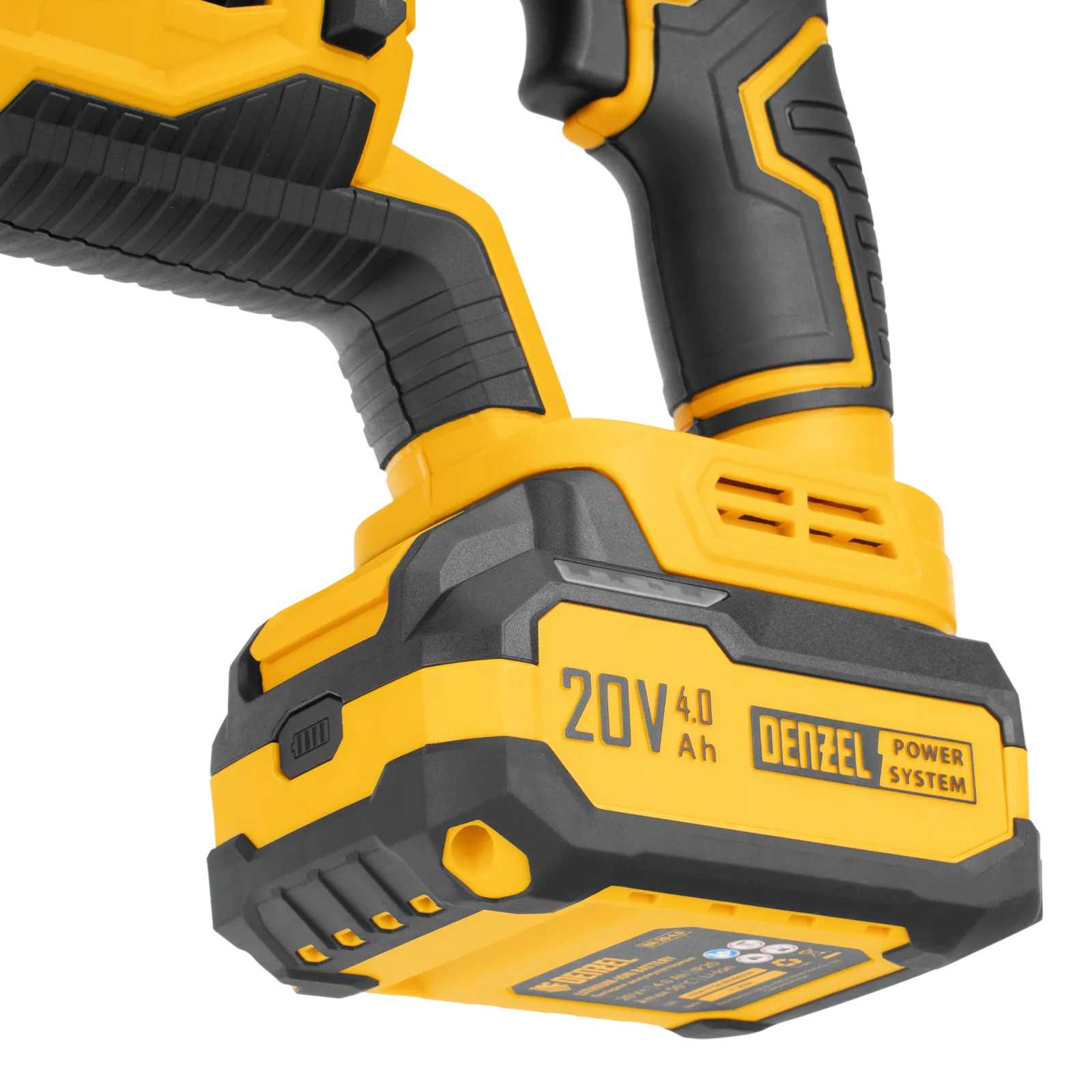 - Универсальность — аккумулятор совместим со всеми инструментами единой платформы Denzel Power System 20V.