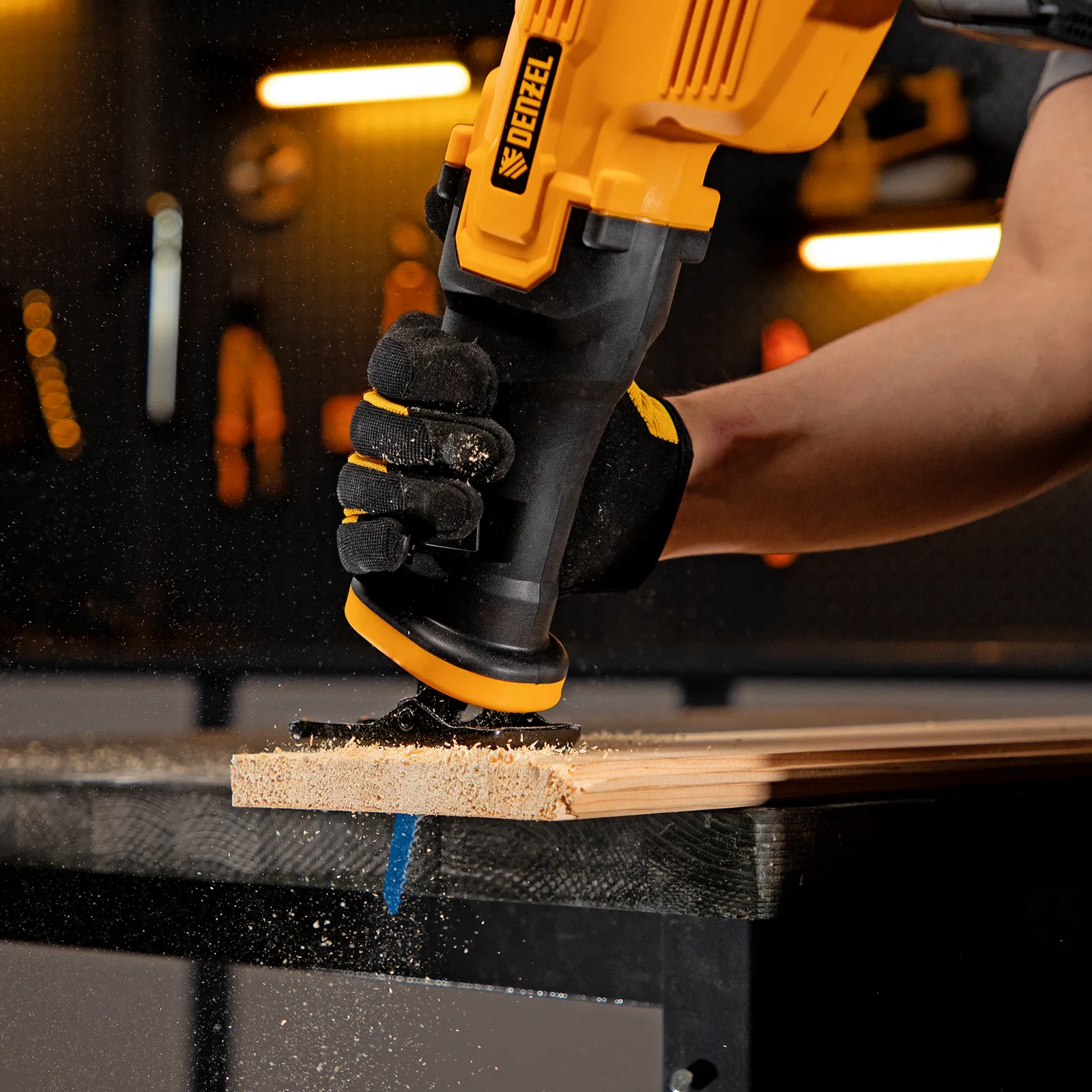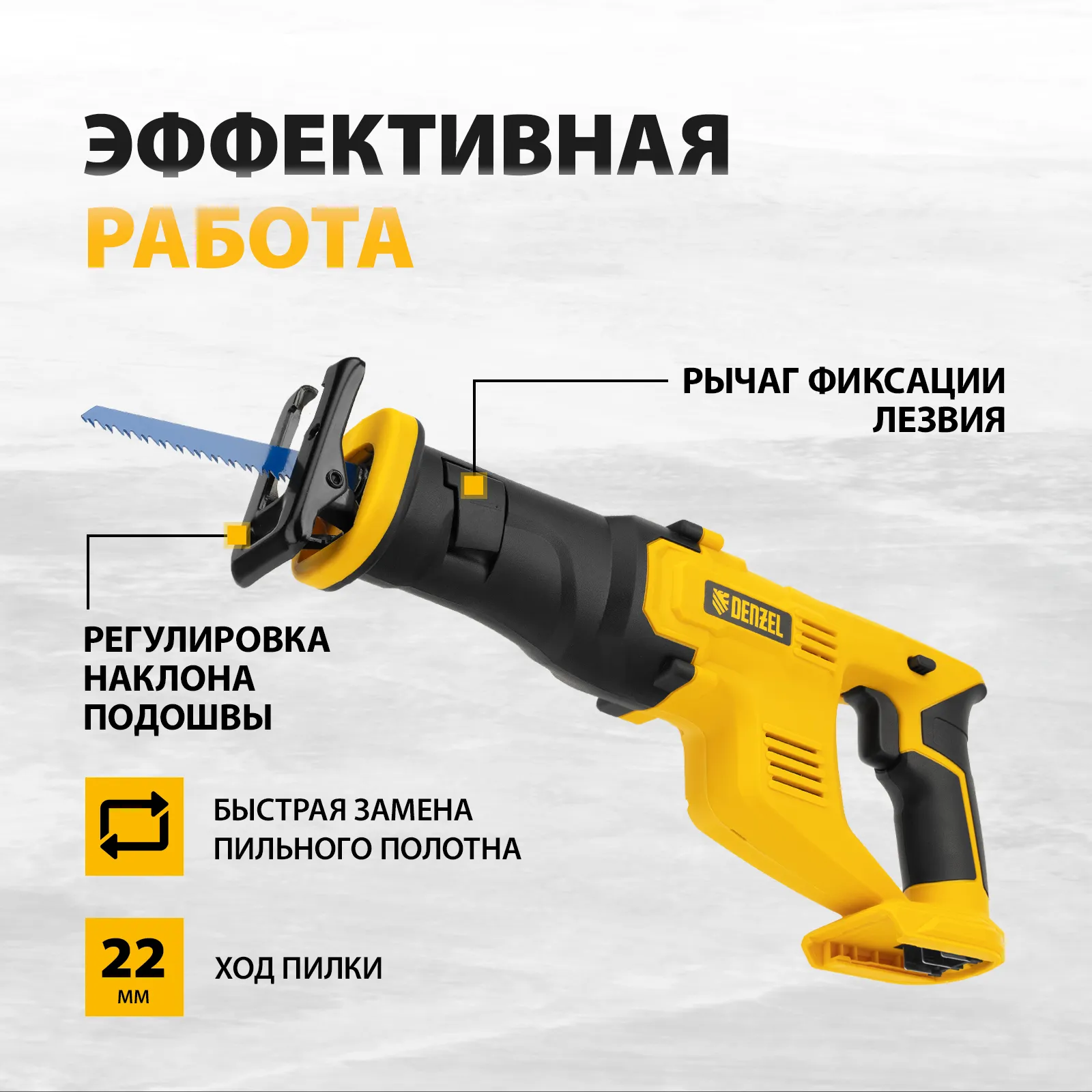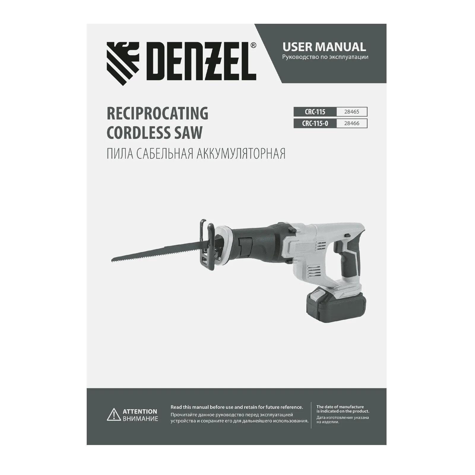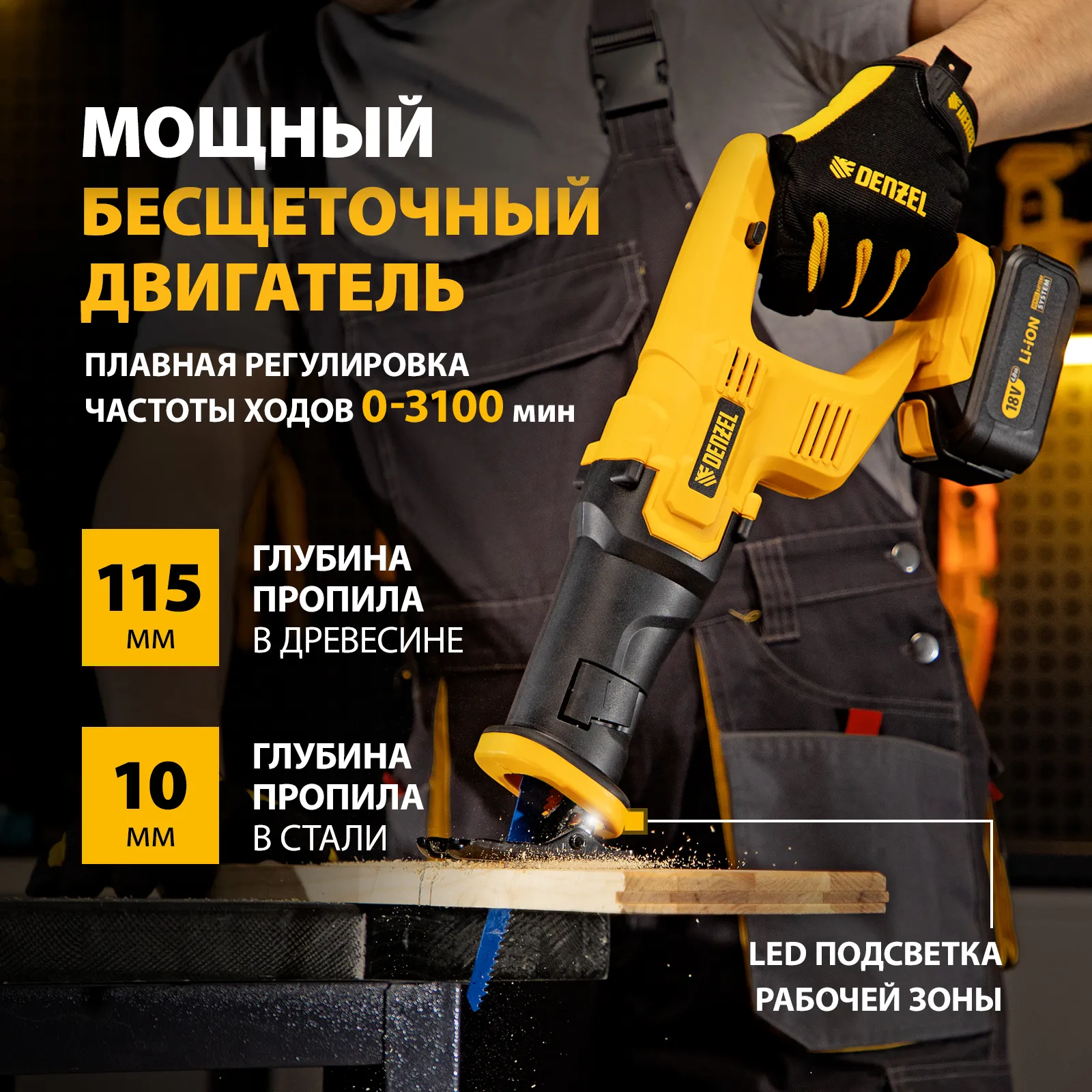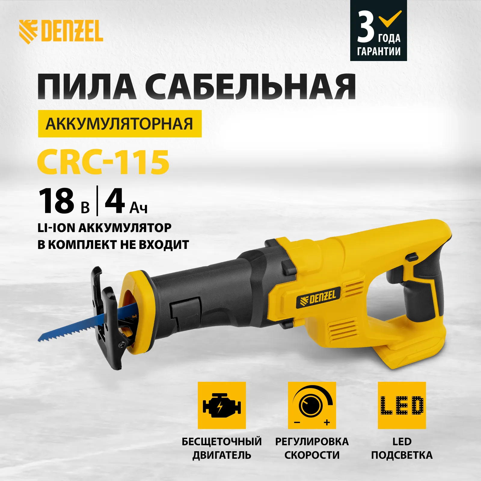 Сабельная аккумуляторная пила Denzel CRC-115-0 28466 работает от аккумулятора Li-Ion с рабочим напряжением 18 В. Предназначена для распила фанеры, досок, ДСП, ДВП, пластика, а также для обрезки веток. Максимальная глубина пропила в древесине составляет 115 мм, в стали — 10 мм. Оснастка совершает до 3000 ходов в минуту, что обеспечивает эффективную работу. ;Пила поставляется без аккумулятора и зарядного устройства, к ней подходит универсальный аккумулятор емкостью 4 А/ч, совместимый с любым инструментом единой платформы Denzel battery system 18V серии IB.