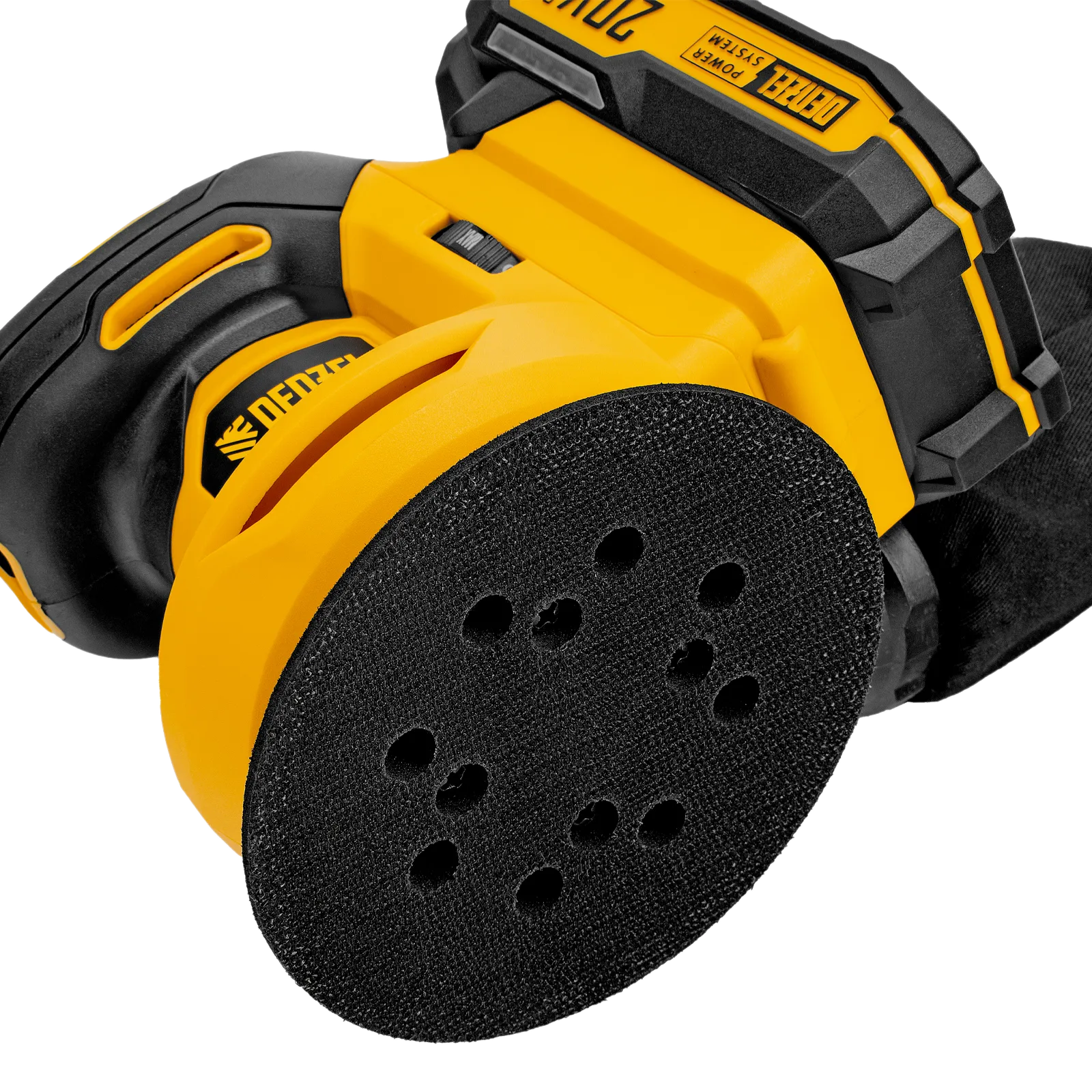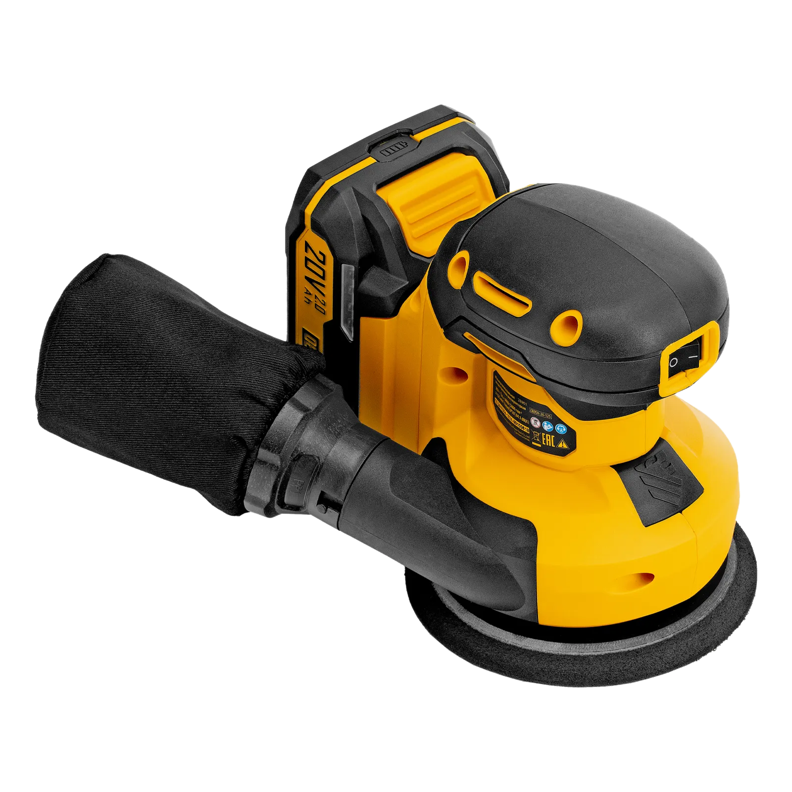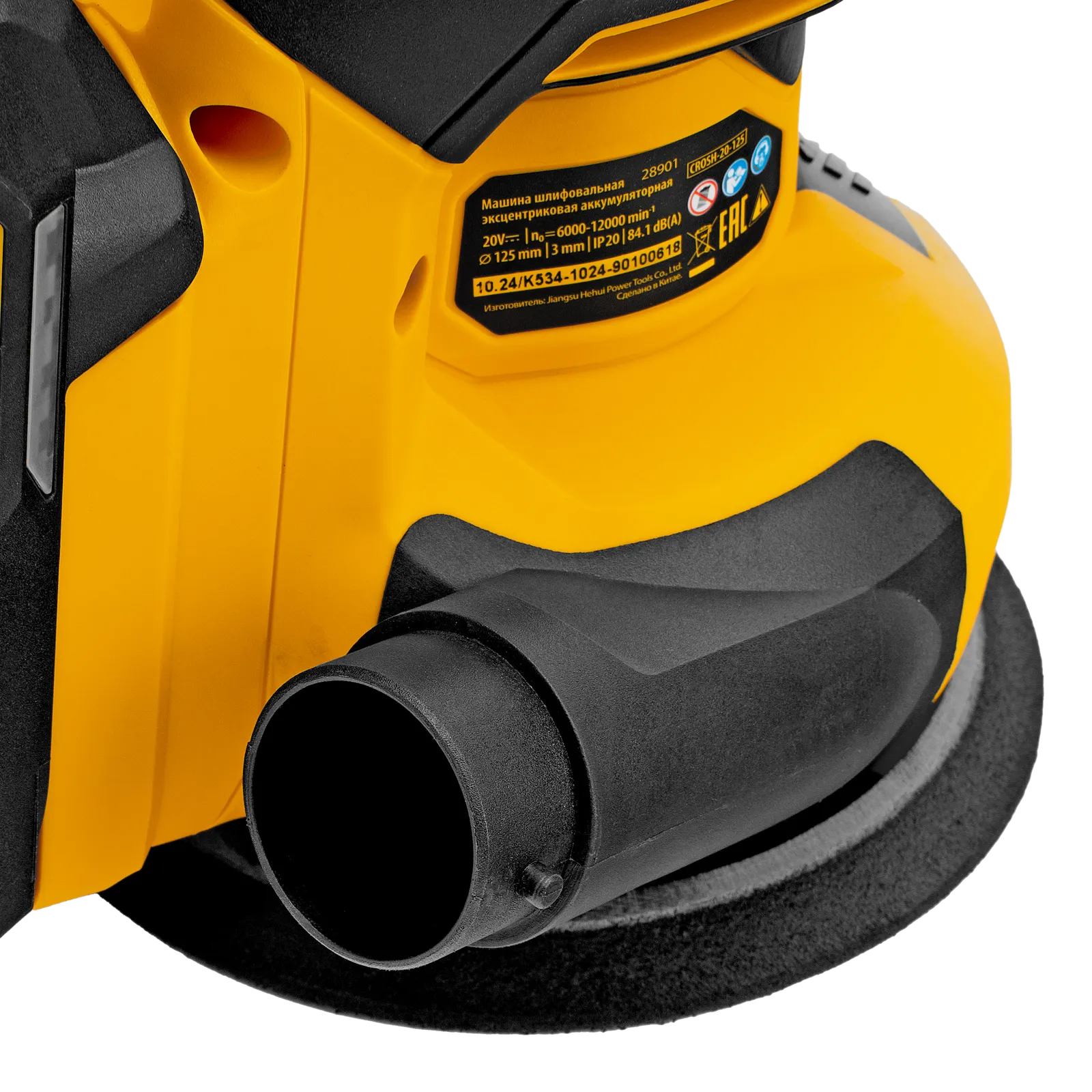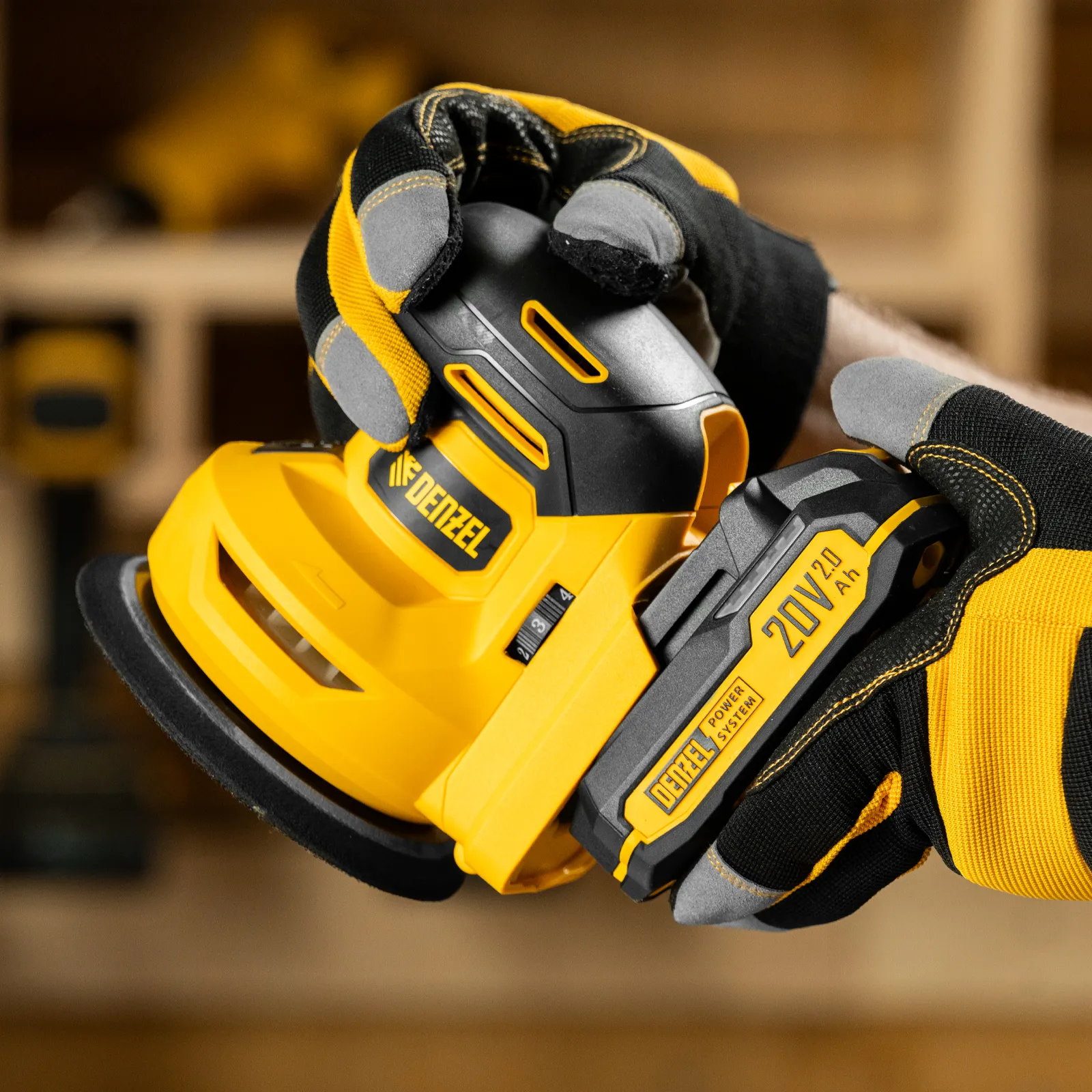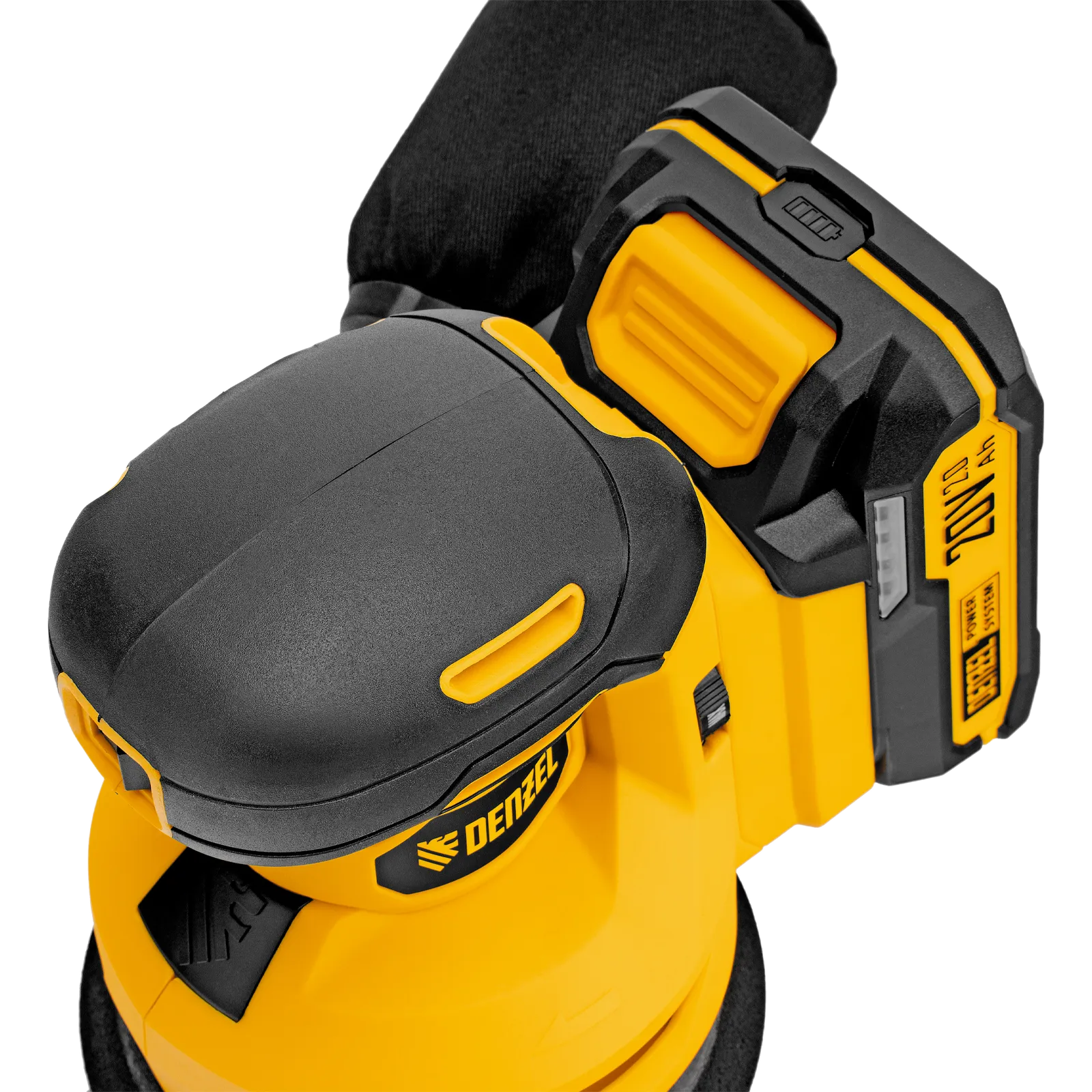 Аккумуляторная шлифовальная эксцентриковая машина Denzel CROSH-20-125 28901 работает от батареи Li-Ion 20 В и используется для сухого шлифования металлических, деревянных и пластиковых поверхностей. В зависимости от используемой оснастки позволяет как снимать толстый слой материала, так и проводить финишное шлифование. Машина совместима со шлифкругами диаметром 125 мм. В процессе работы подошва совершает вращательные и колебательные движения. Регулируя степень прижимания подошвы к поверхности, можно менять соотношение вращения и вибрации для максимально эффективной обработки. Машина оптимальна для применения в быту.