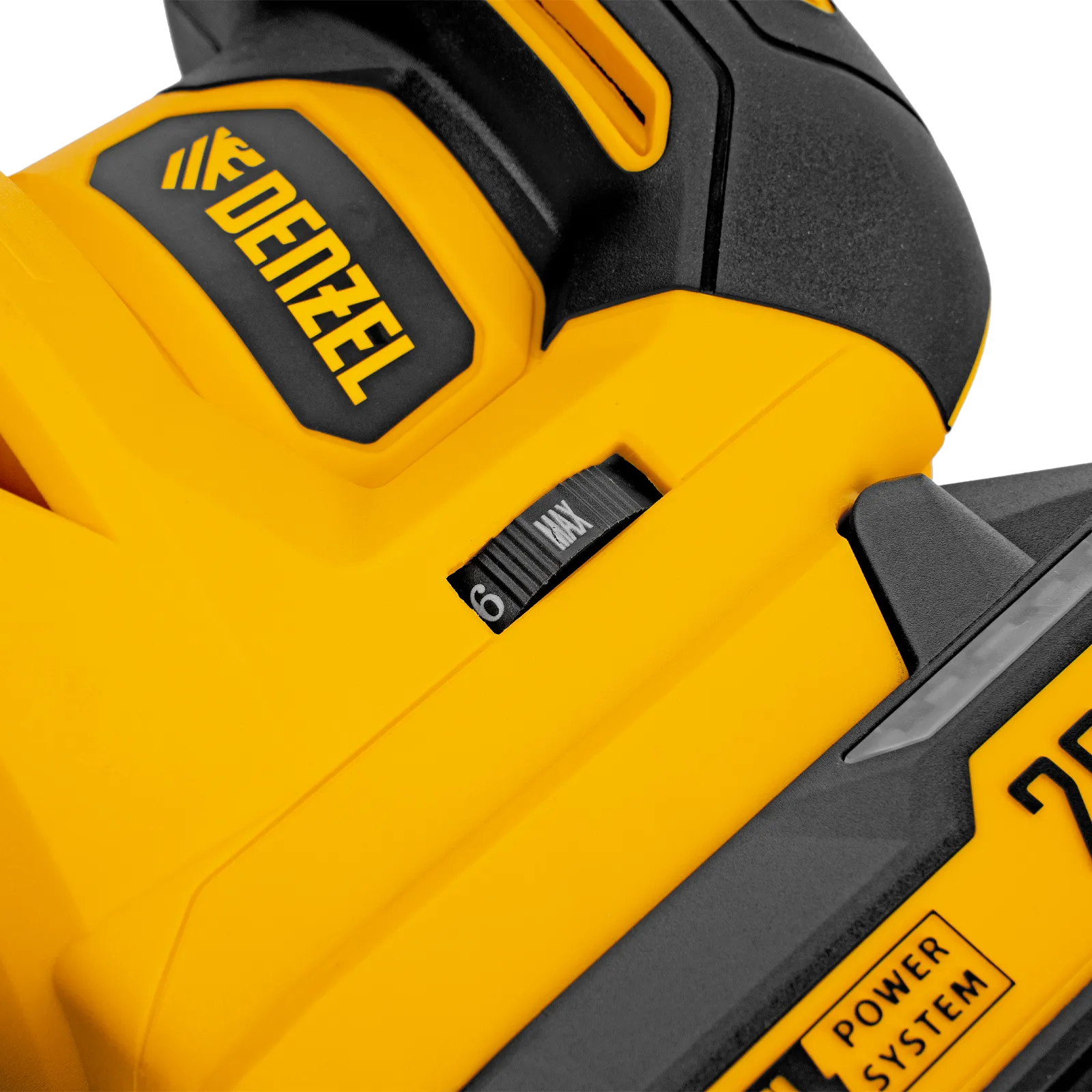 - Универсальность — аккумулятор Li-Ion емкостью 2 А·ч совместим со всеми инструментами единой платформы Denzel Power System 20V.