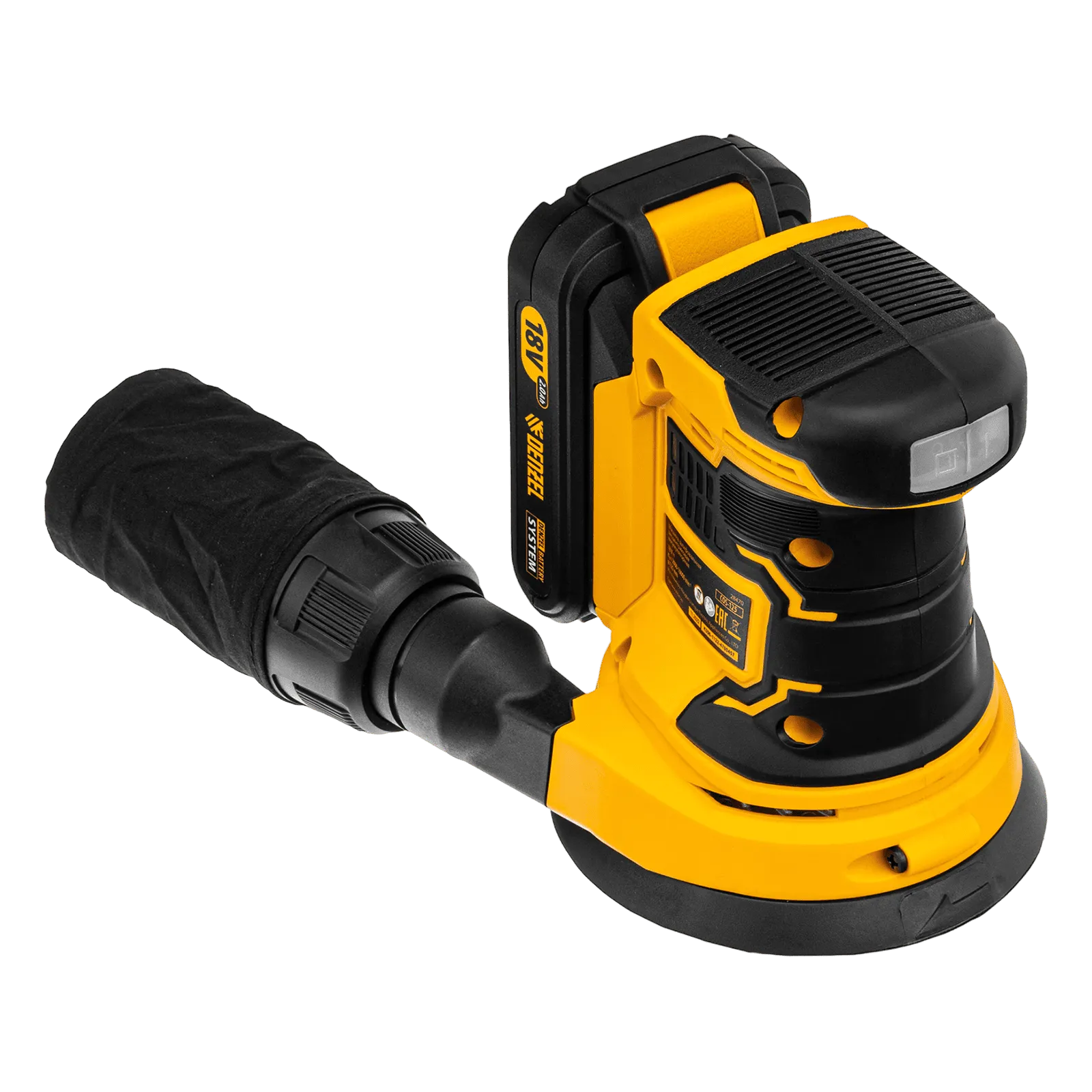 Аккумуляторная эксцентриковая шлифовальная машина Denzel COS-125 28470 работает от источника питания Li-Ion емкостью 2 А/ч, с рабочим напряжением 18 В. Предназначена для выполнения зачистных, шлифовальных и полировальных работ по древесине, металлу, пластику и камню. Применяется со шлифовальными и полировальными кругами диаметром 125 мм, скорость вращения составляет 2000-10000 об/мин, благодаря чему можно эффективно решать различные задачи.;Универсальный аккумулятор с интеллектуальной системой распознавания нагрузки совместим со всеми инструментами единой платформы Denzel battery system 18V серии IB.