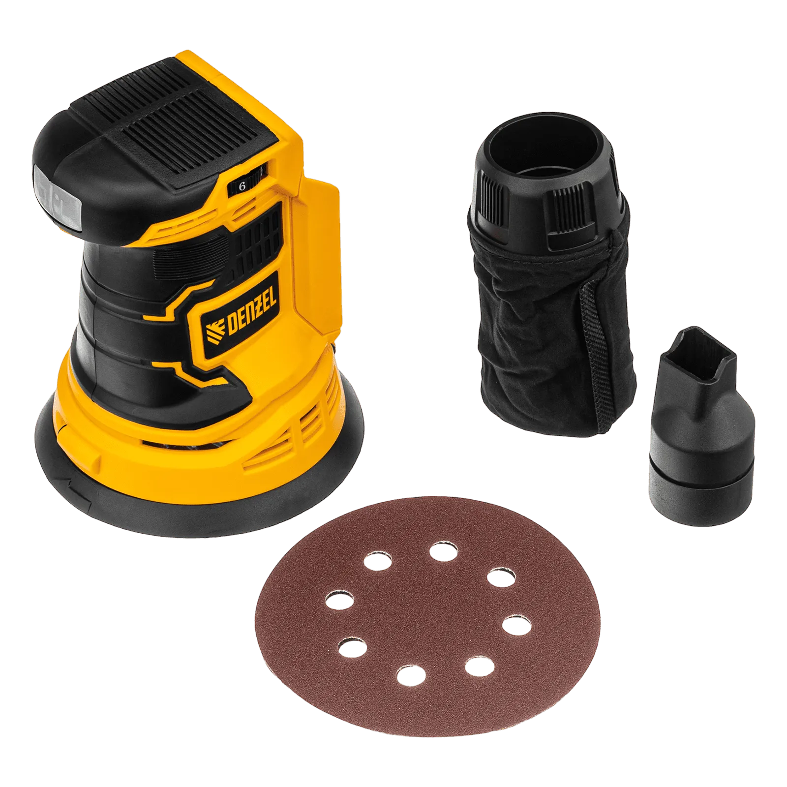 - Универсальность — к шлифовальной машине подходит аккумулятор 4Ач Li-ion, совместимый с любым инструментом 18V Denzel battery system серии IB (в комплект поставки не входит).