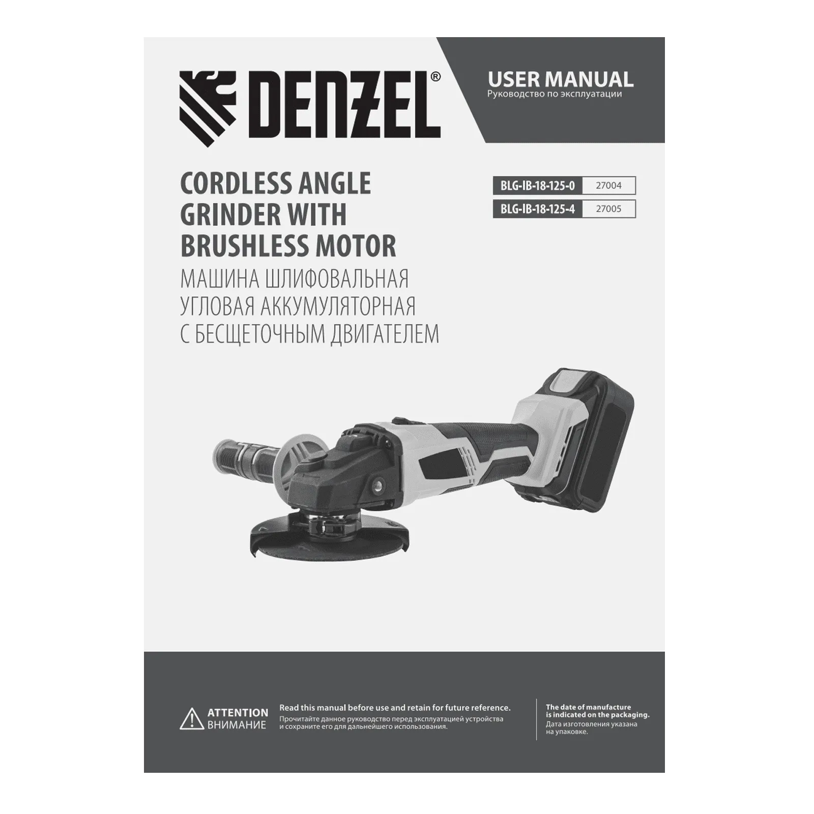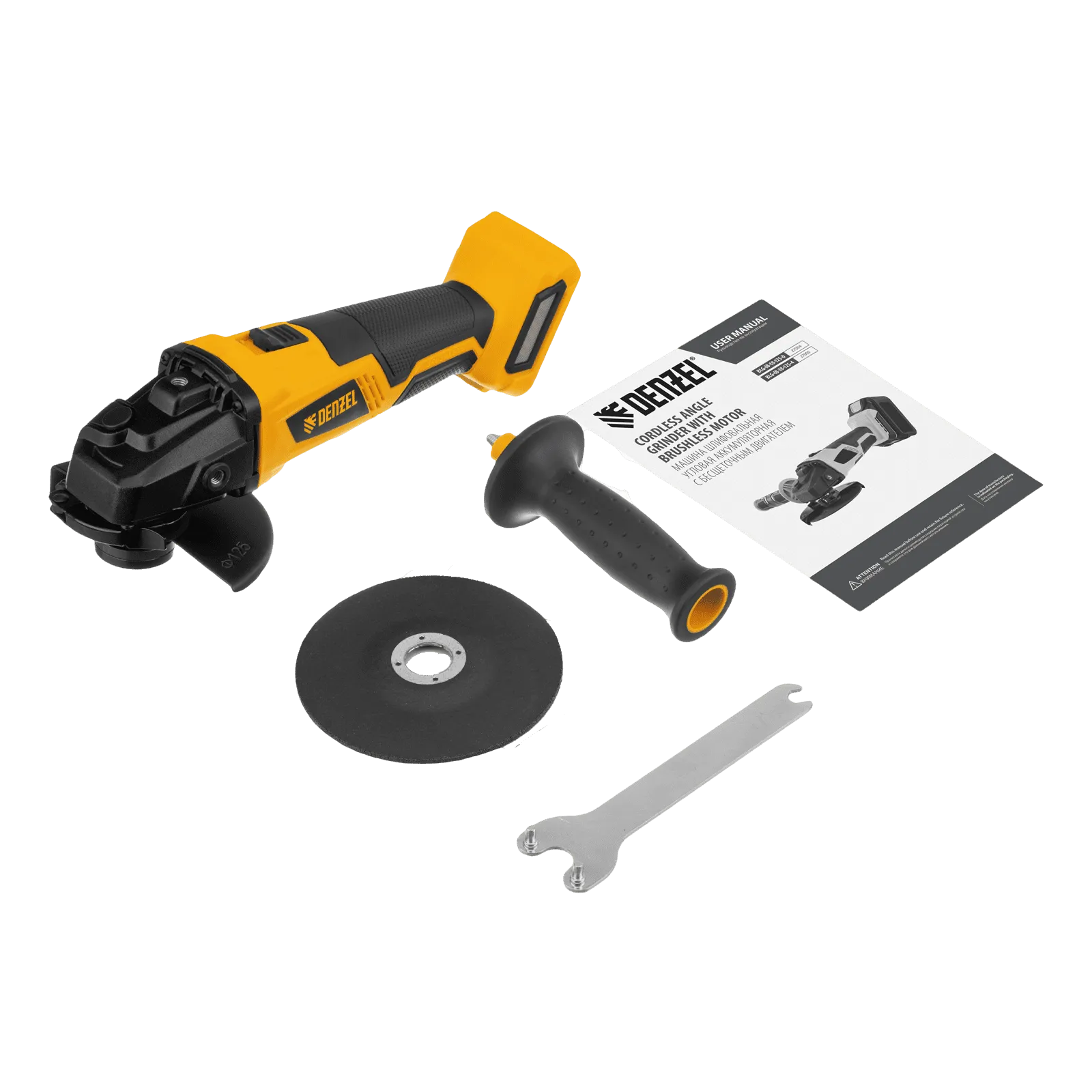 - Универсальность — к УШМ подходит аккумулятор 4Ач Li-ion, совместимый с любым инструментом 18V Denzel battery system серии IB (в комплект поставки не входит).