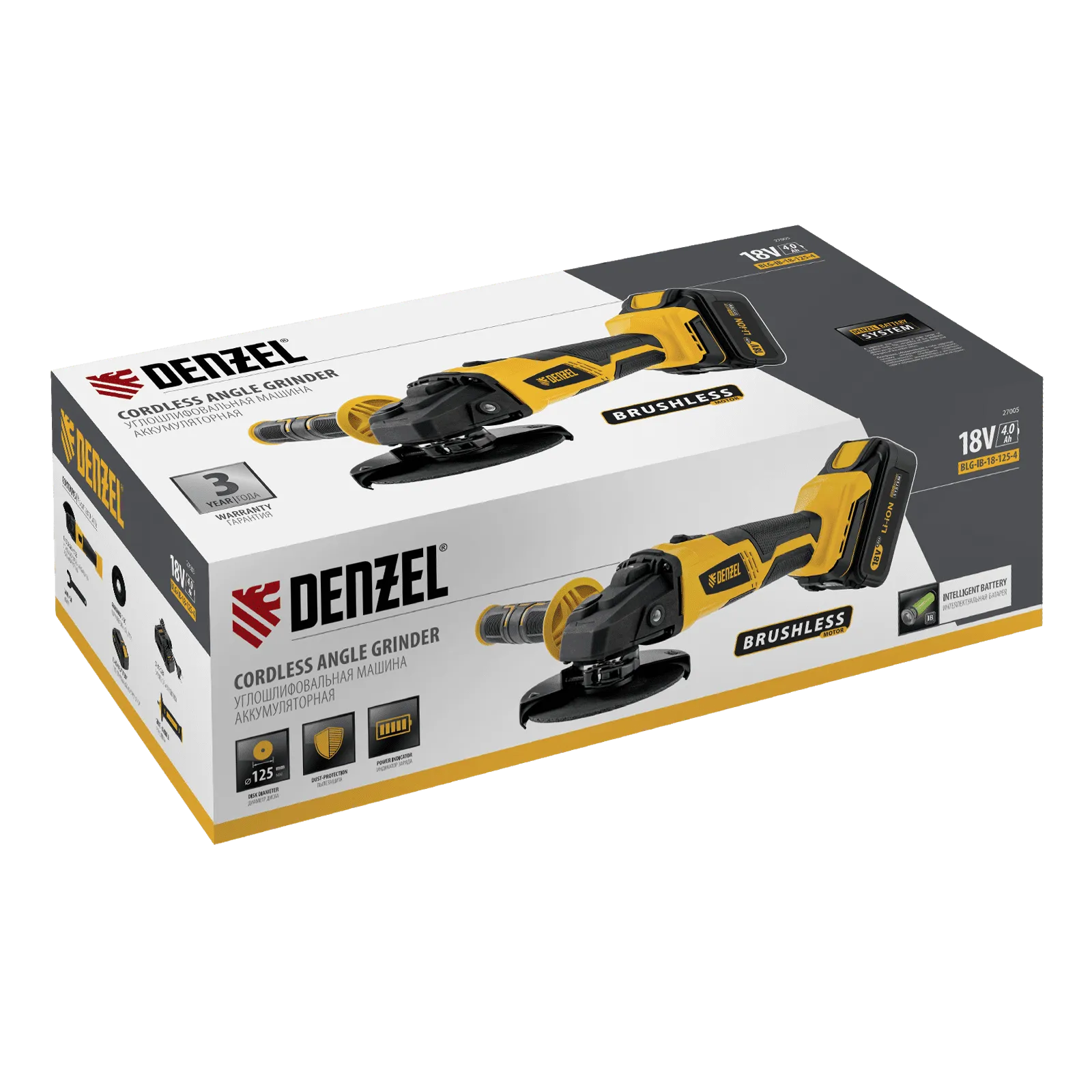 Аккумуляторная углошлифовальная машина Denzel BLG-IB-18-125-4 27005 с бесщеточным двигателем работает от аккумулятора Li-Ion с рабочим напряжением 18 В. Используется с оснасткой диаметром 125 мм для зачистки, шлифования и резки металла, камня, бетона. Мощный двигатель обеспечивает скорость вращения шпинделя 10000 об/мин, что позволяет эффективно решать поставленные задачи. Машина не нуждается в стационарном источнике электропитания, что расширяет возможности ее использования.