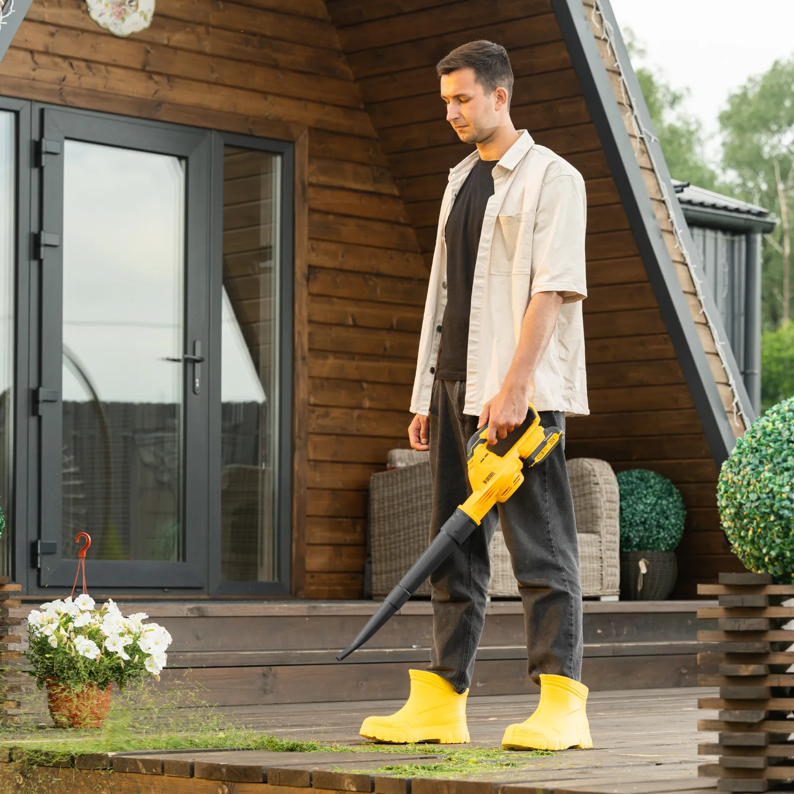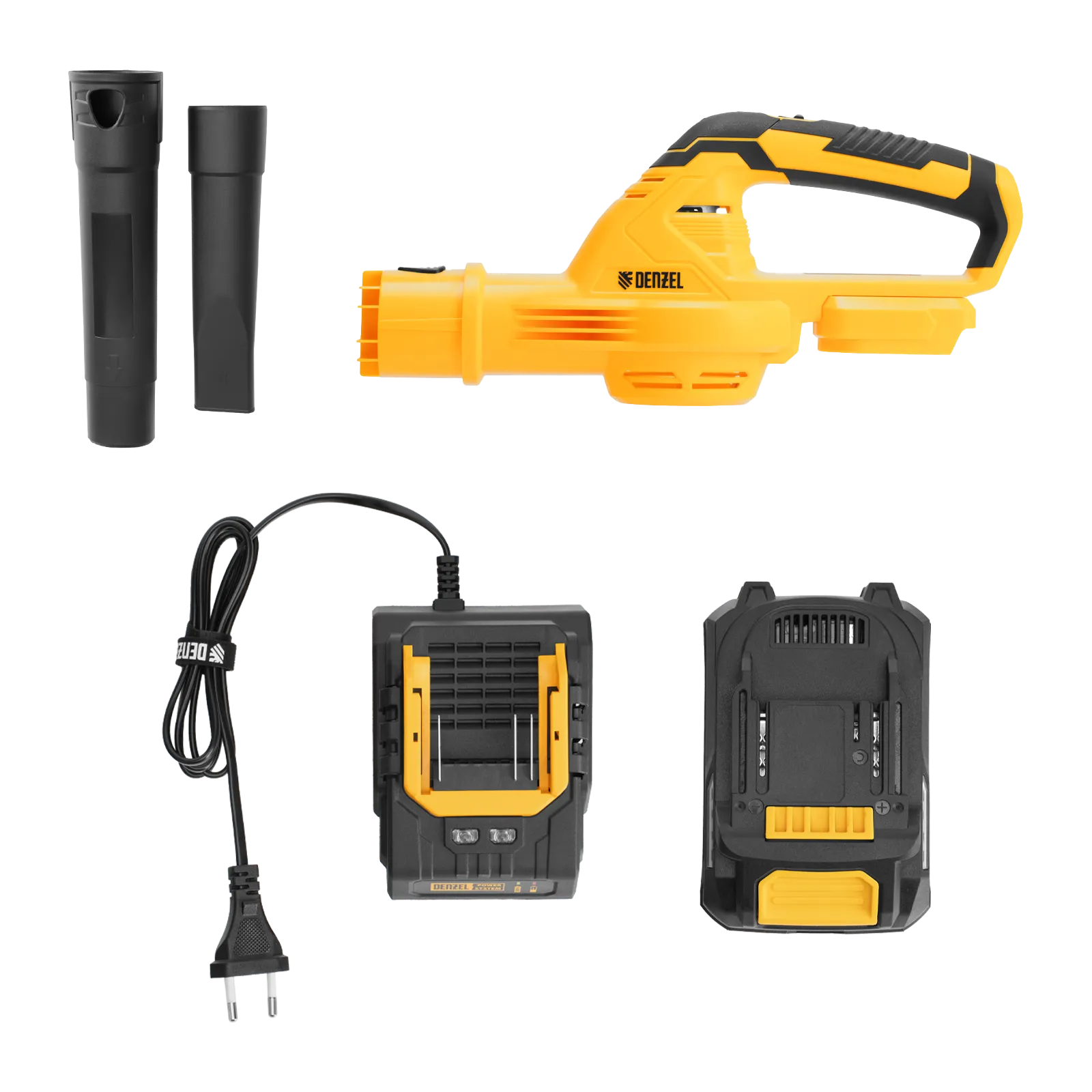 - Полная комплектация — воздуходувка поставляется с аккумулятором и зарядным устройством, поэтому полностью готова к эксплуатации.