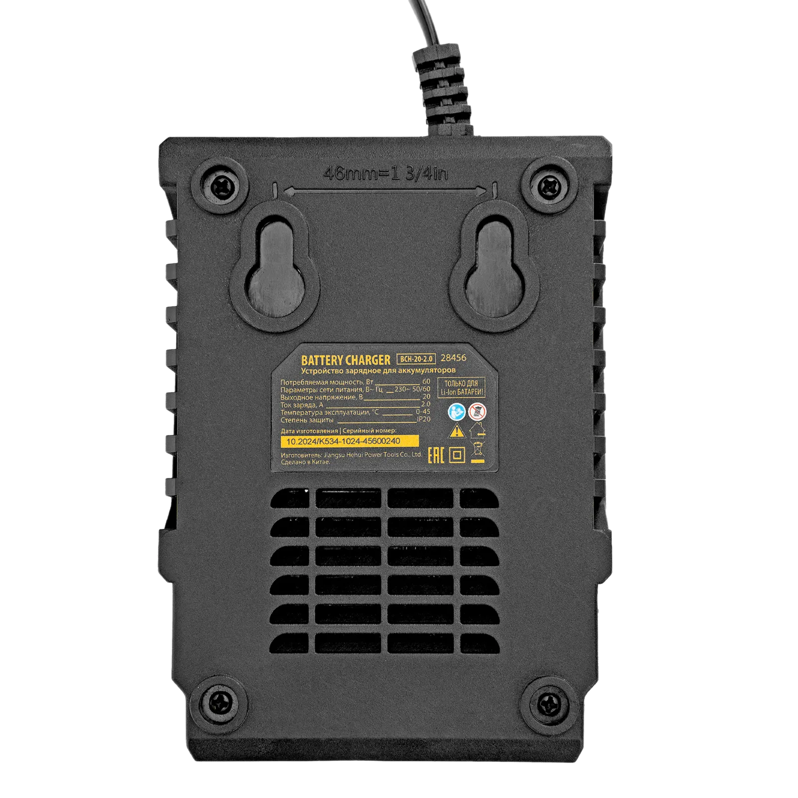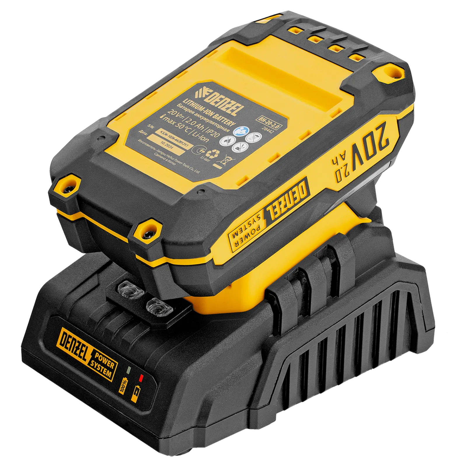 Зарядное устройство Denzel BCH-20-2.0 28456 предназначено для восстановления работоспособности Li-Ion аккумуляторов единой платформы Denzel Power System 20 V (артикулы 28442, 28444 и 28446). Поддерживает ток заряда 2,0 A. Обеспечивает быструю и полную зарядку, что позволяет избежать длительных перерывов в работе с аккумуляторным инструментом.
