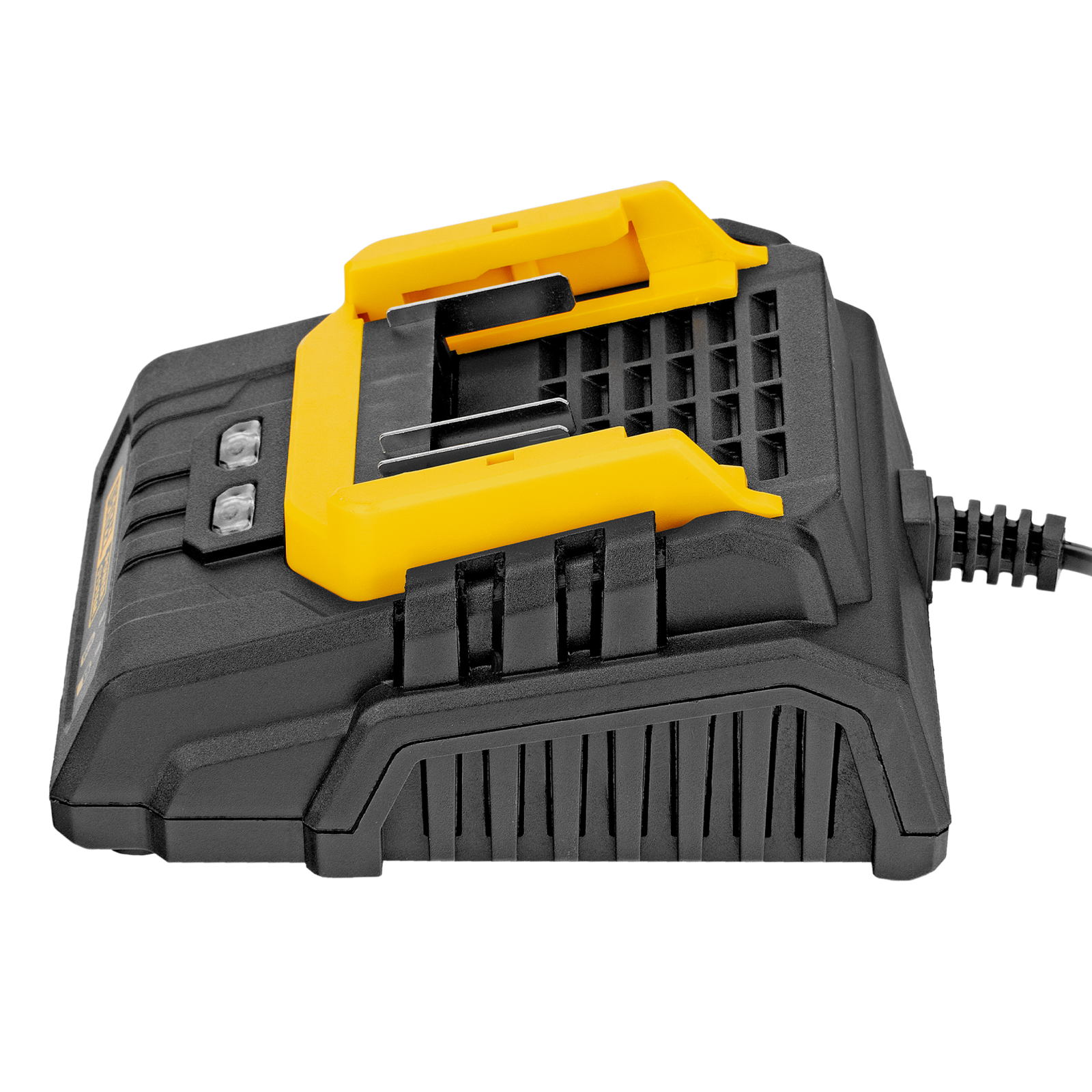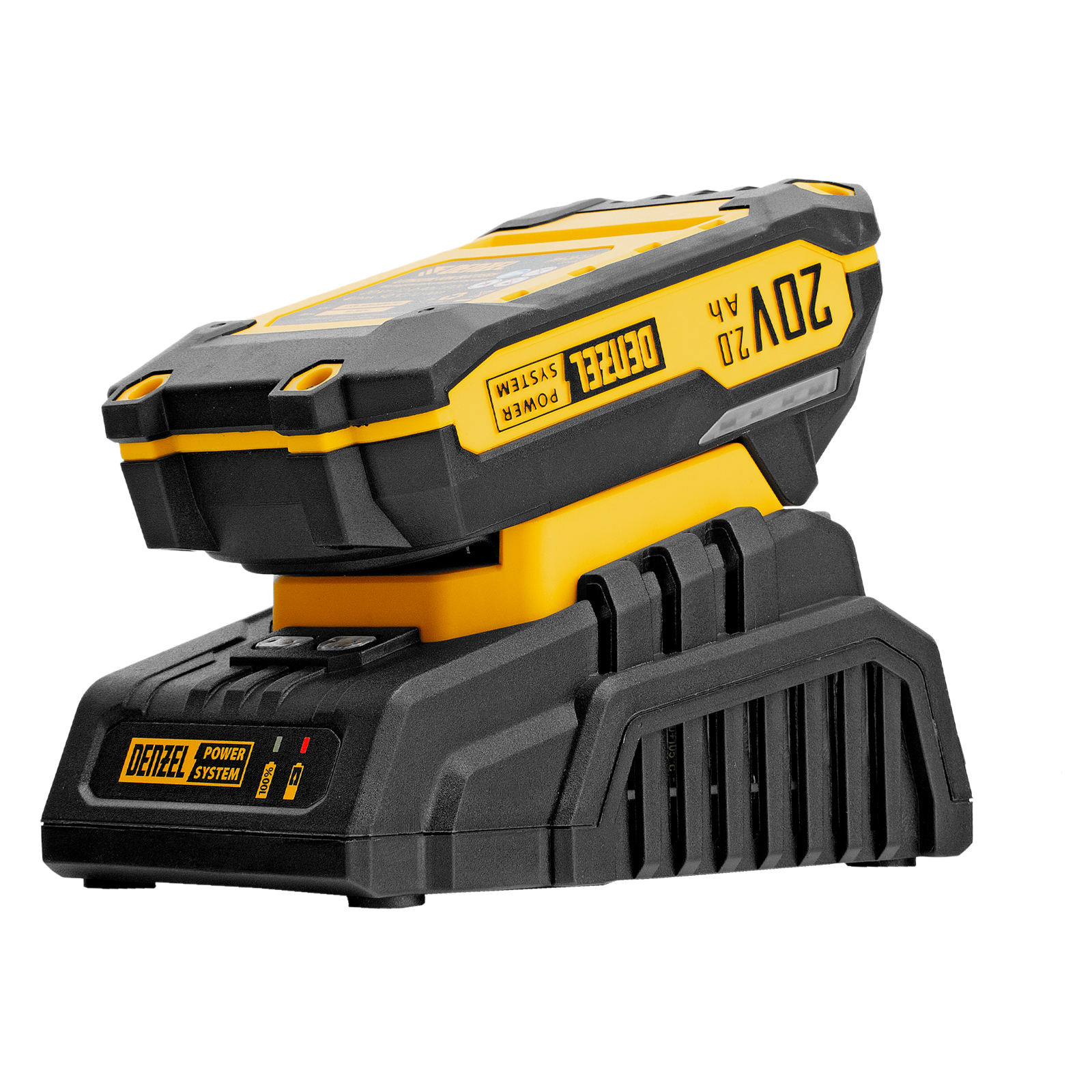 Зарядное устройство Denzel BCH-20-2.0 28456 поддерживает ток заряда 2,0 A и предназначено для восстановления работоспособности аккумуляторов Denzel Li-Ion 20 В (артикулы 28442, 28444 и 28446). Обеспечивает быструю и полную зарядку, что позволяет избежать длительных перерывов в работе с аккумуляторным инструментом.