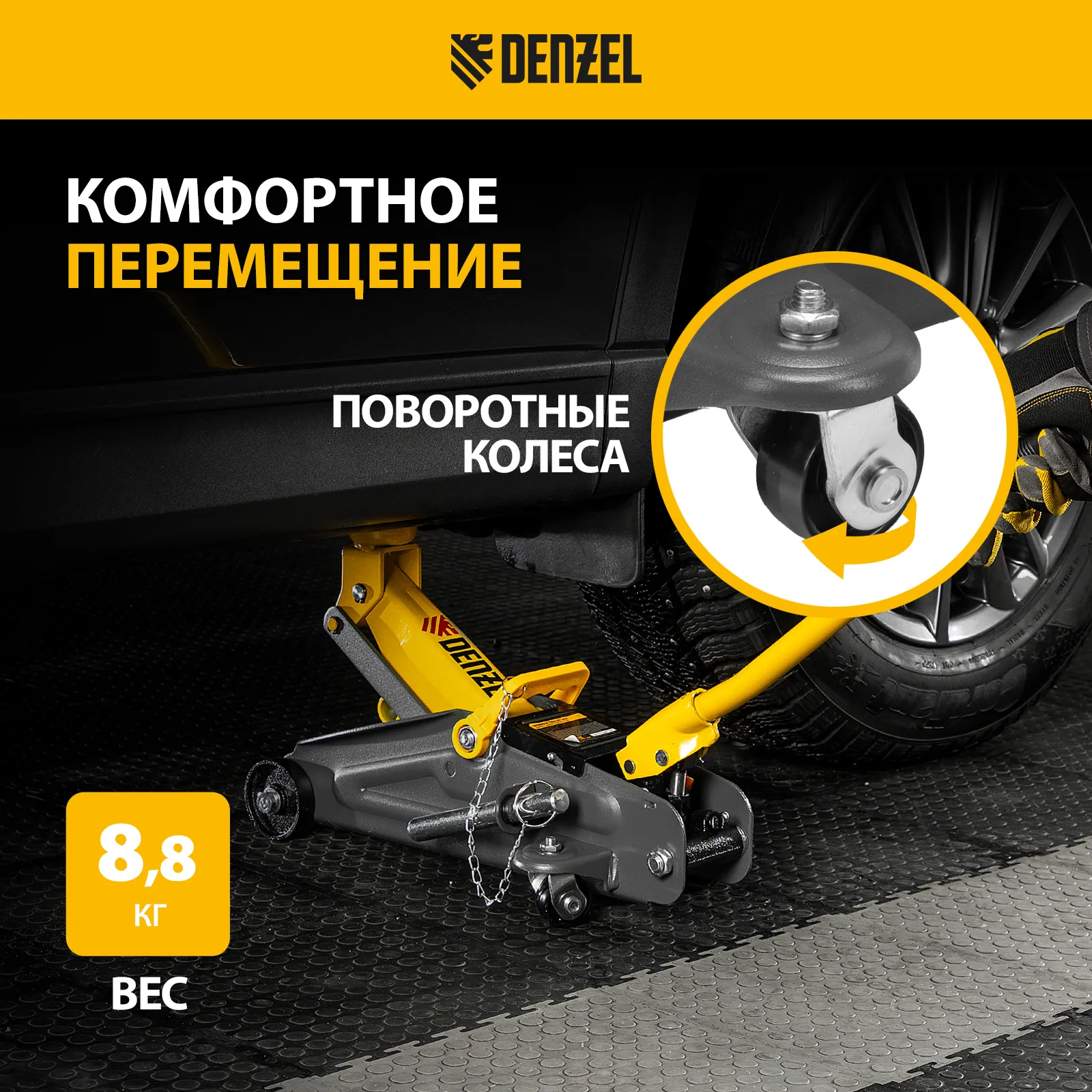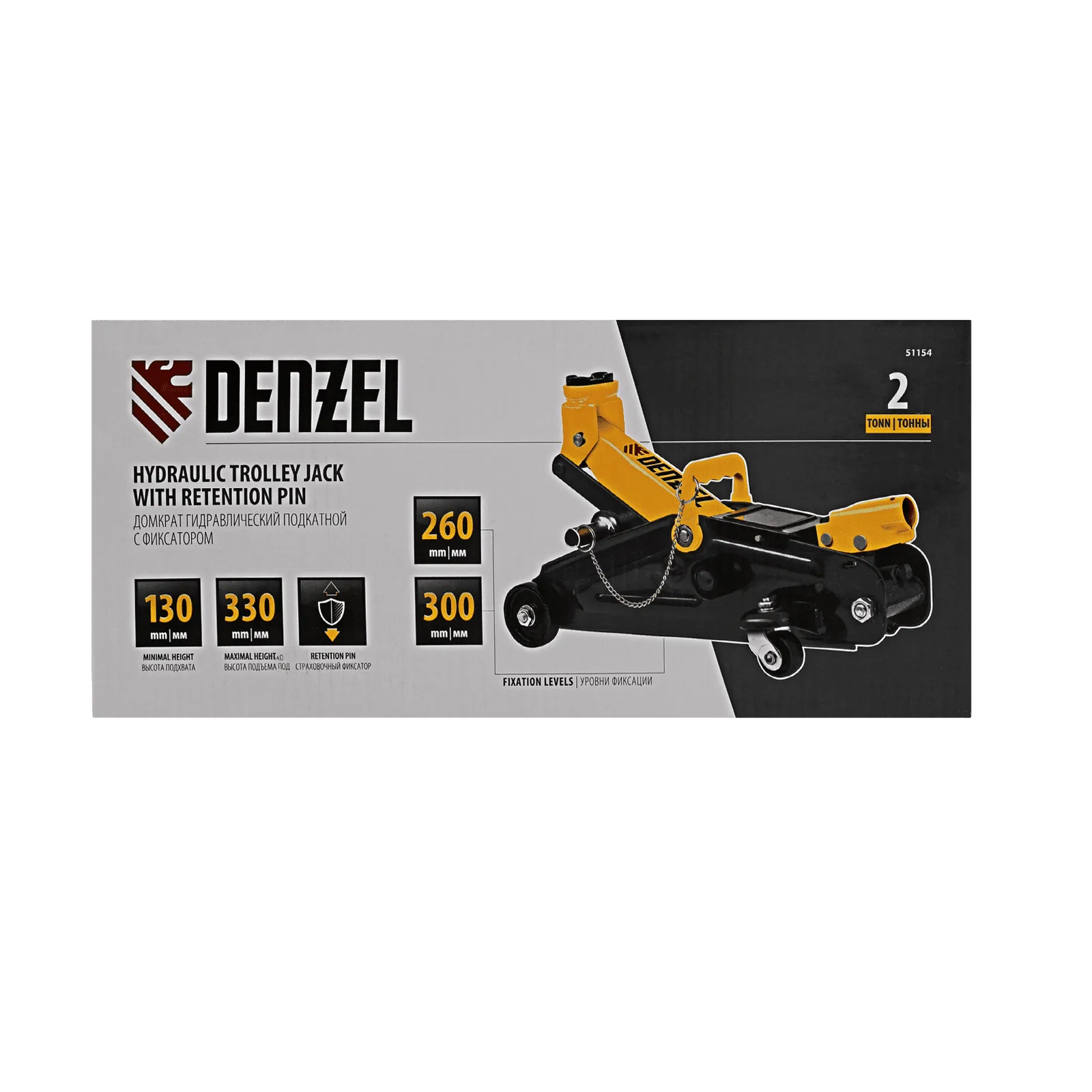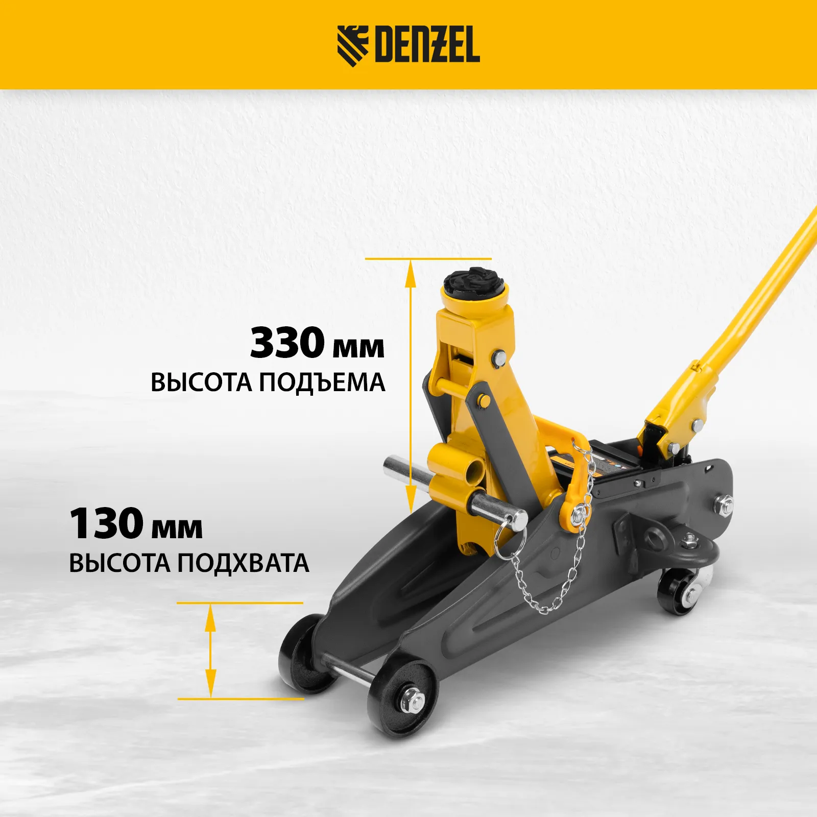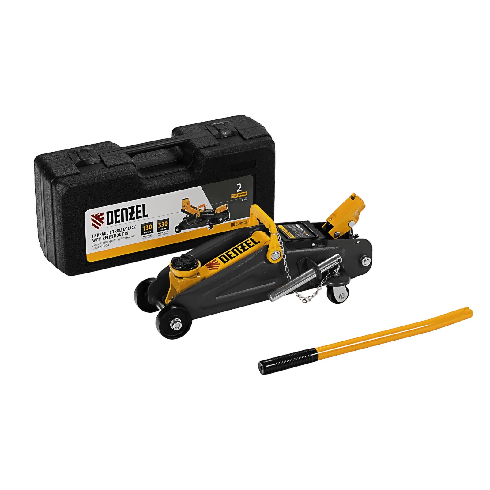 Гидравлический подкатной домкрат с фиксатором Denzel 51154, с высотой подхвата 130 мм, предназначен для плавного подъема грузов массой до 2 т на высоту до 330 мм. Страховочный штифт позволяет фиксировать подъемный рычаг на высоте 260 и 300 мм для безопасной работы. Домкрат пригодится владельцам легковых автомобилей со стандартным клиренсом.