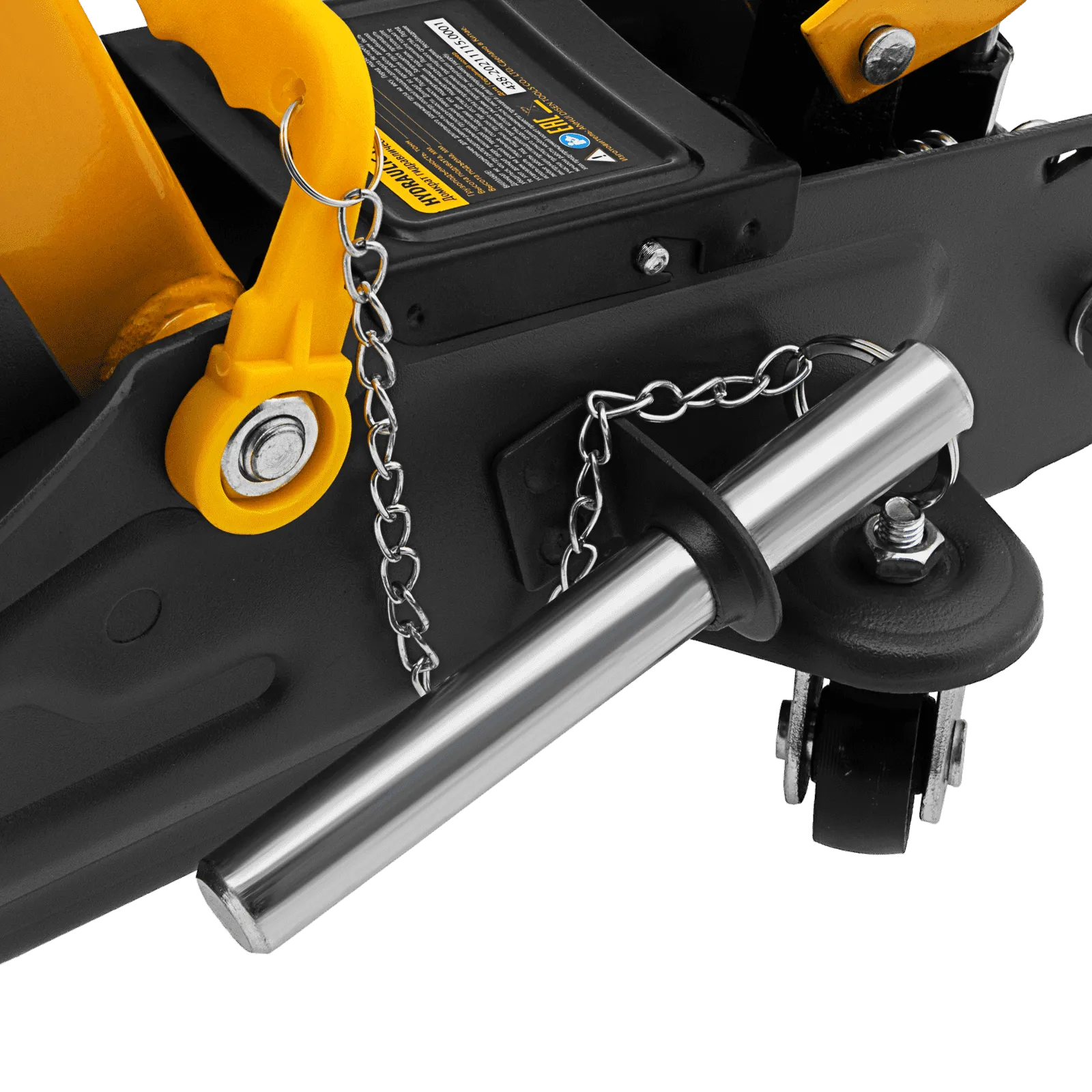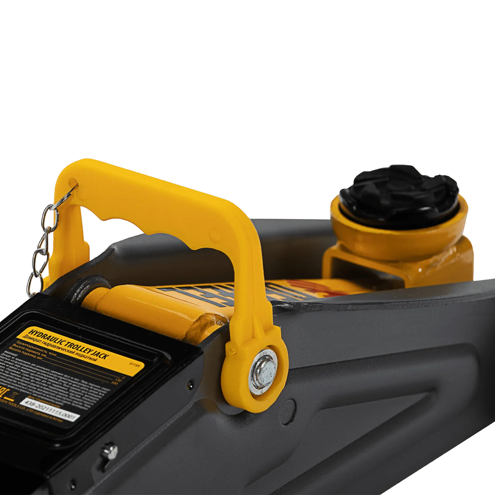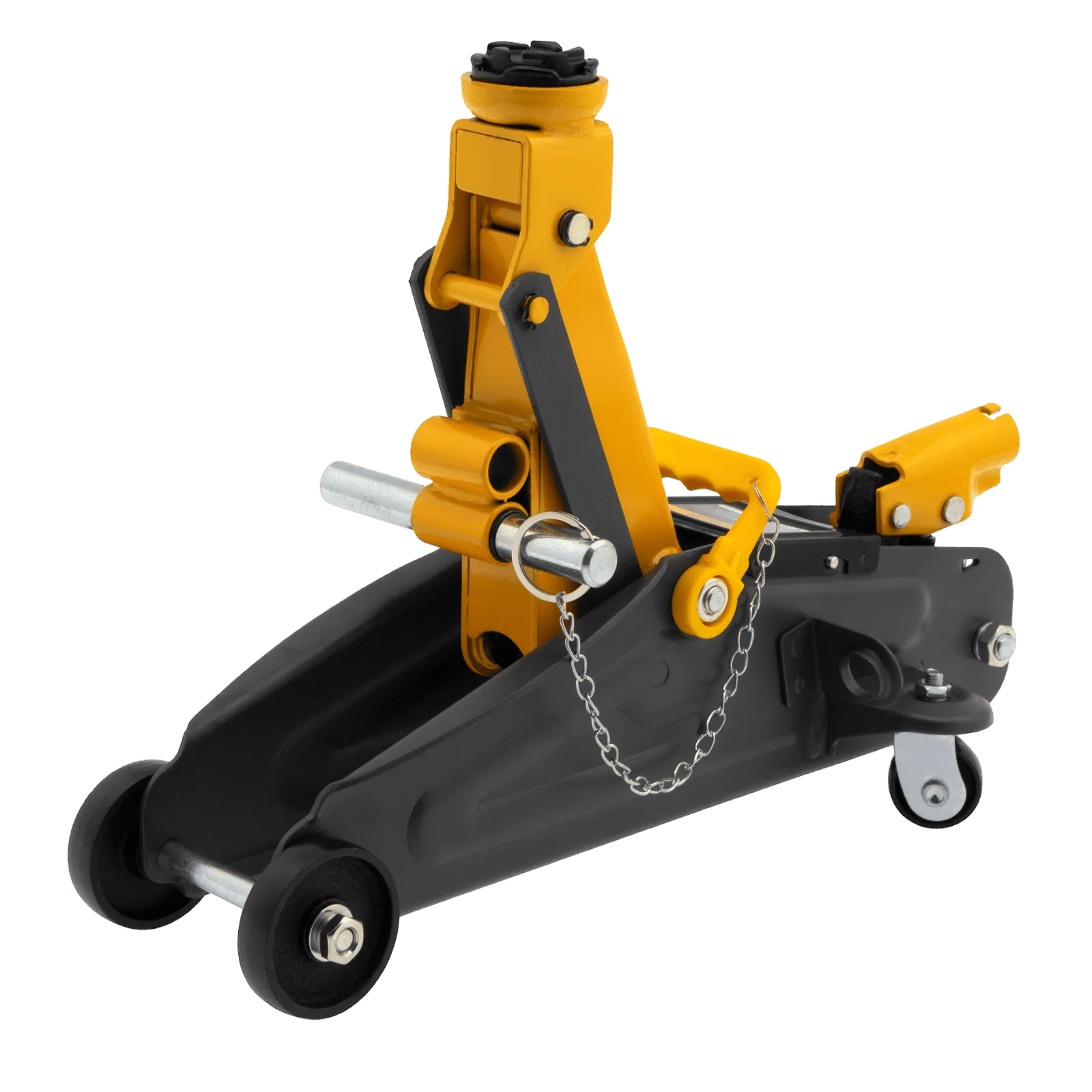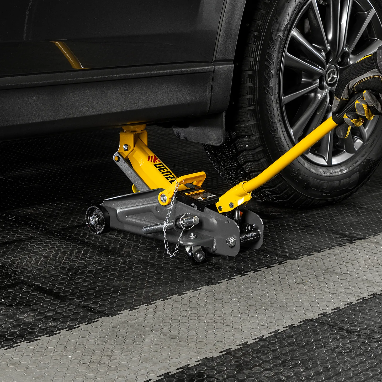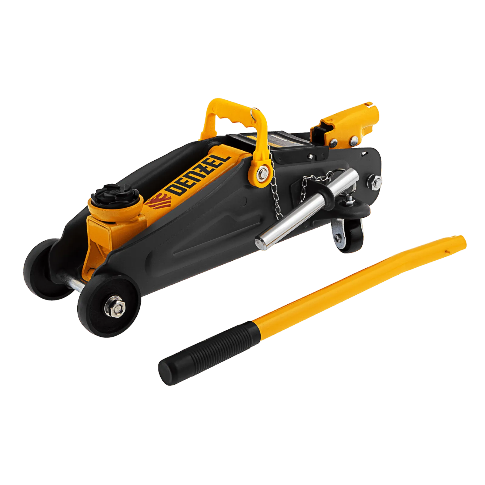 Гидравлический подкатной домкрат с фиксатором Denzel 51154, с высотой подхвата 130 мм, предназначен для плавного подъема грузов массой до 2 т на высоту до 330 мм. Страховочный штифт позволяет фиксировать подъемный рычаг на высоте 260 и 300 мм для безопасной работы. Домкрат пригодится владельцам легковых автомобилей со стандартным клиренсом.
