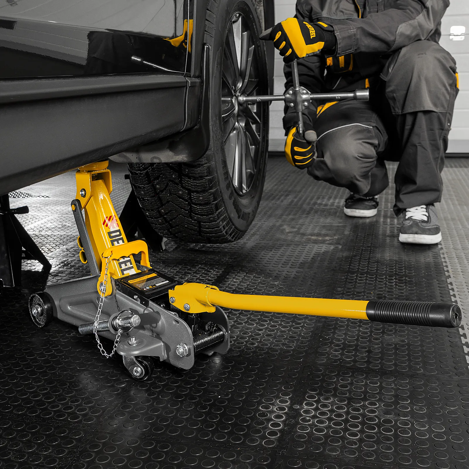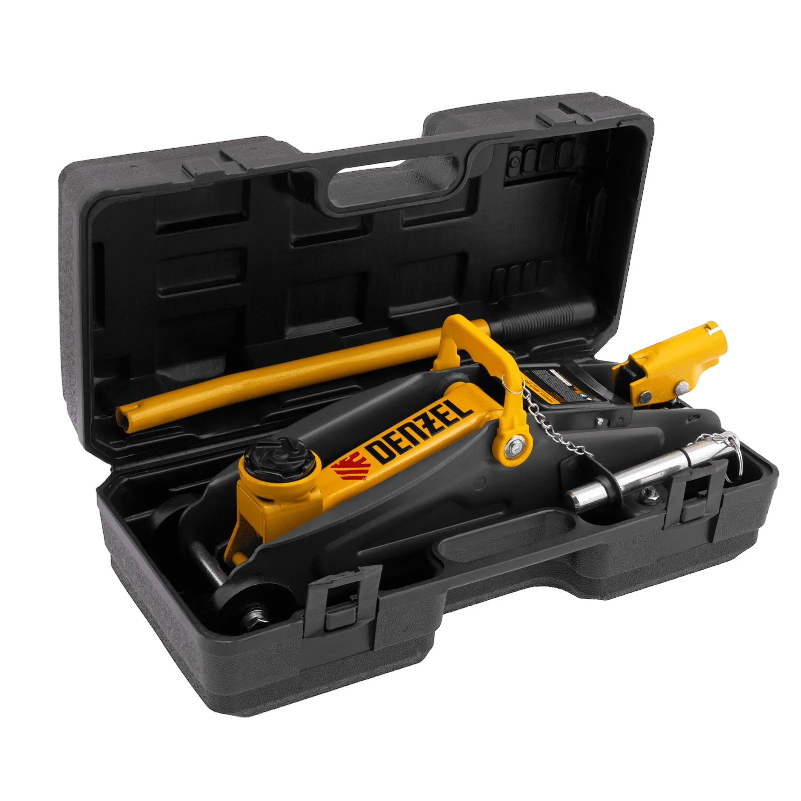 - Удобное хранение и транспортировка — домкрат поставляется в прочном пластиковом кейсе.