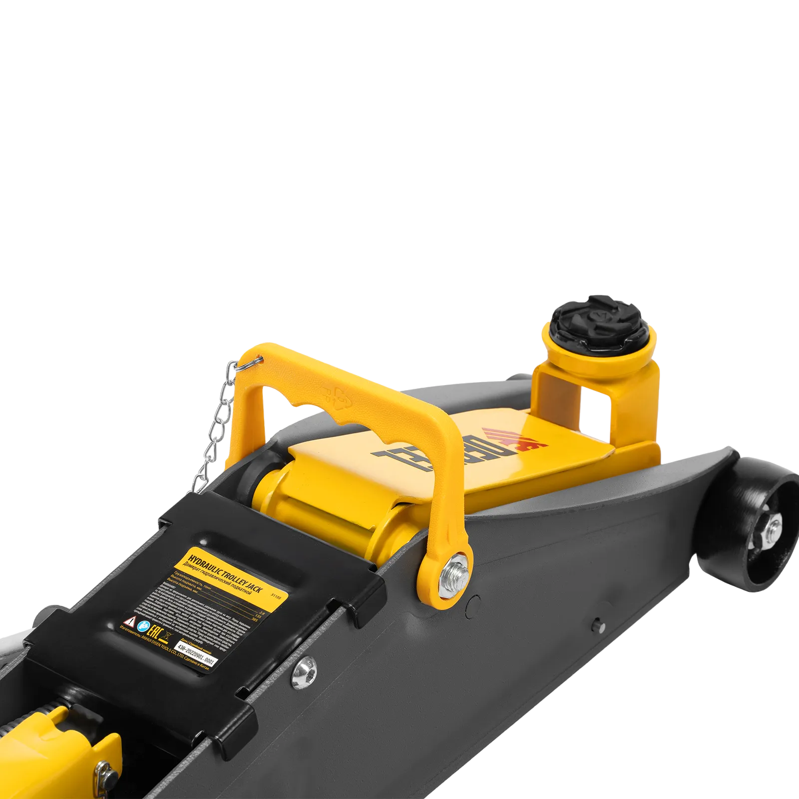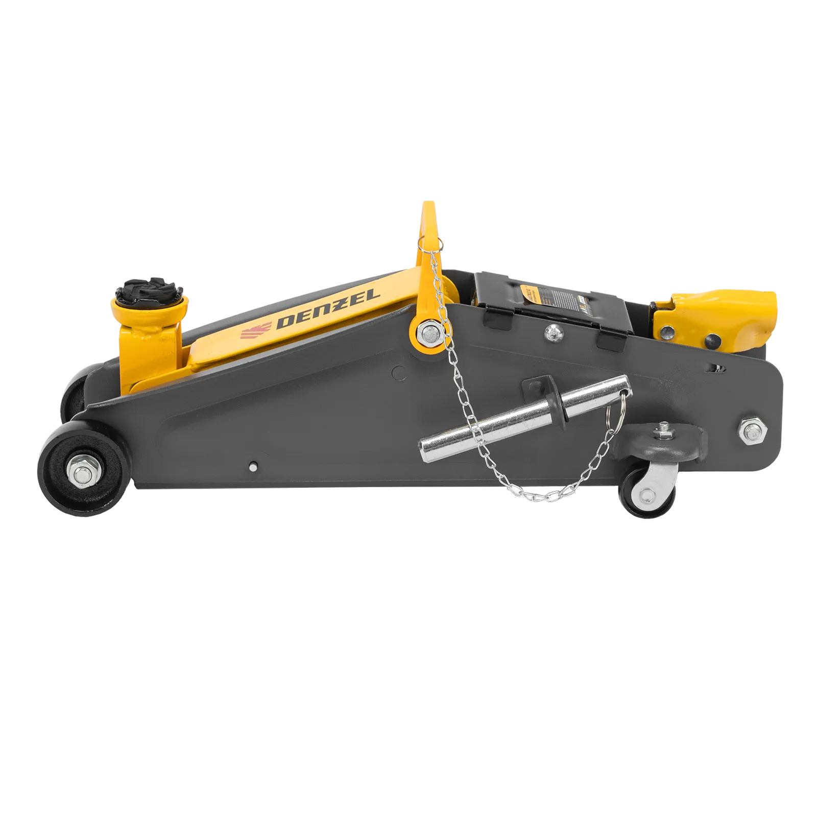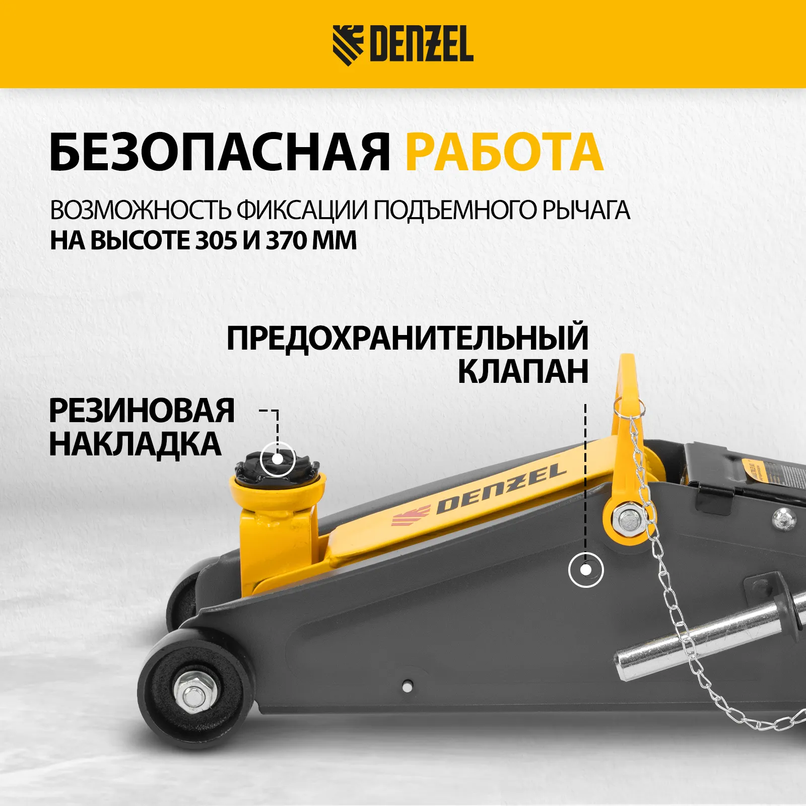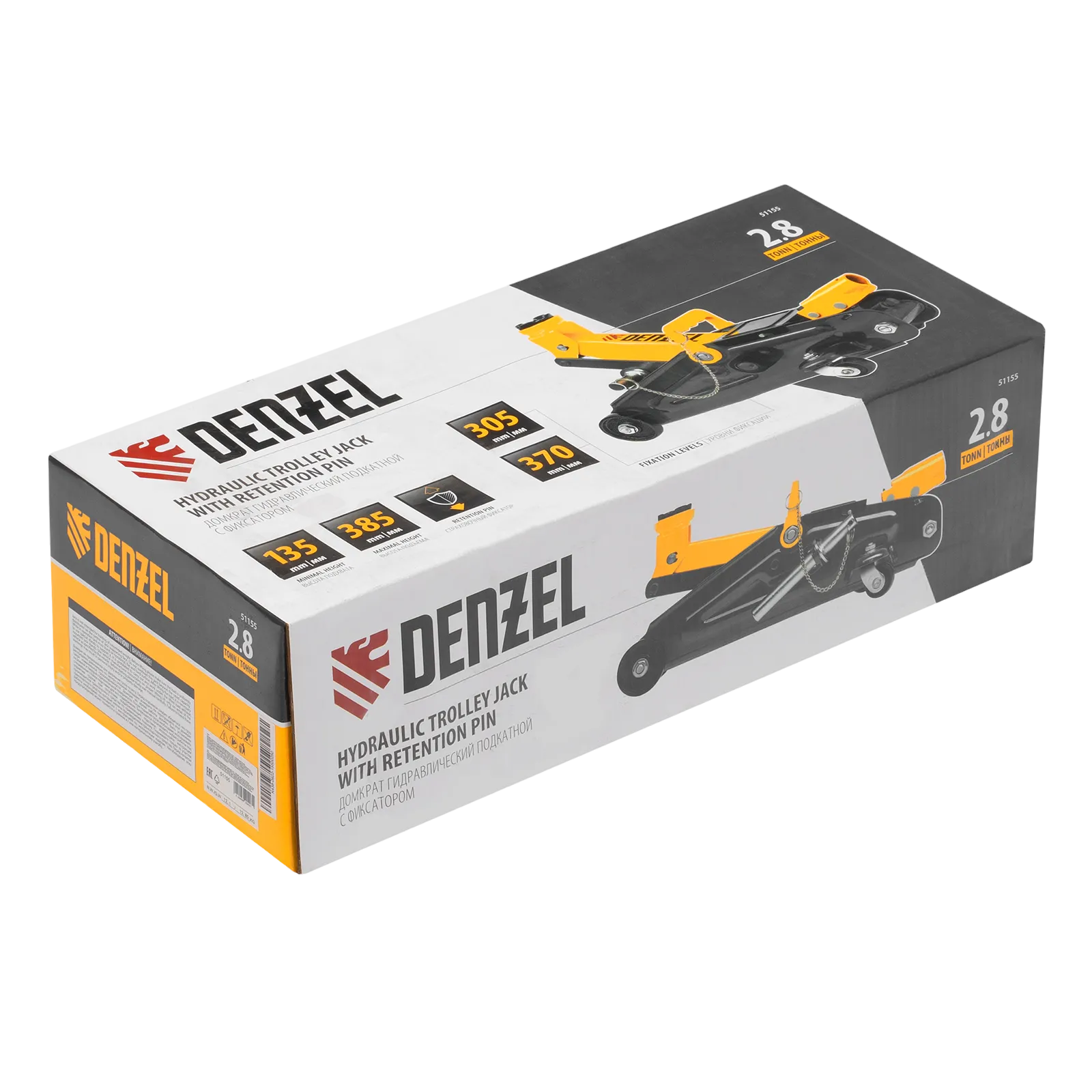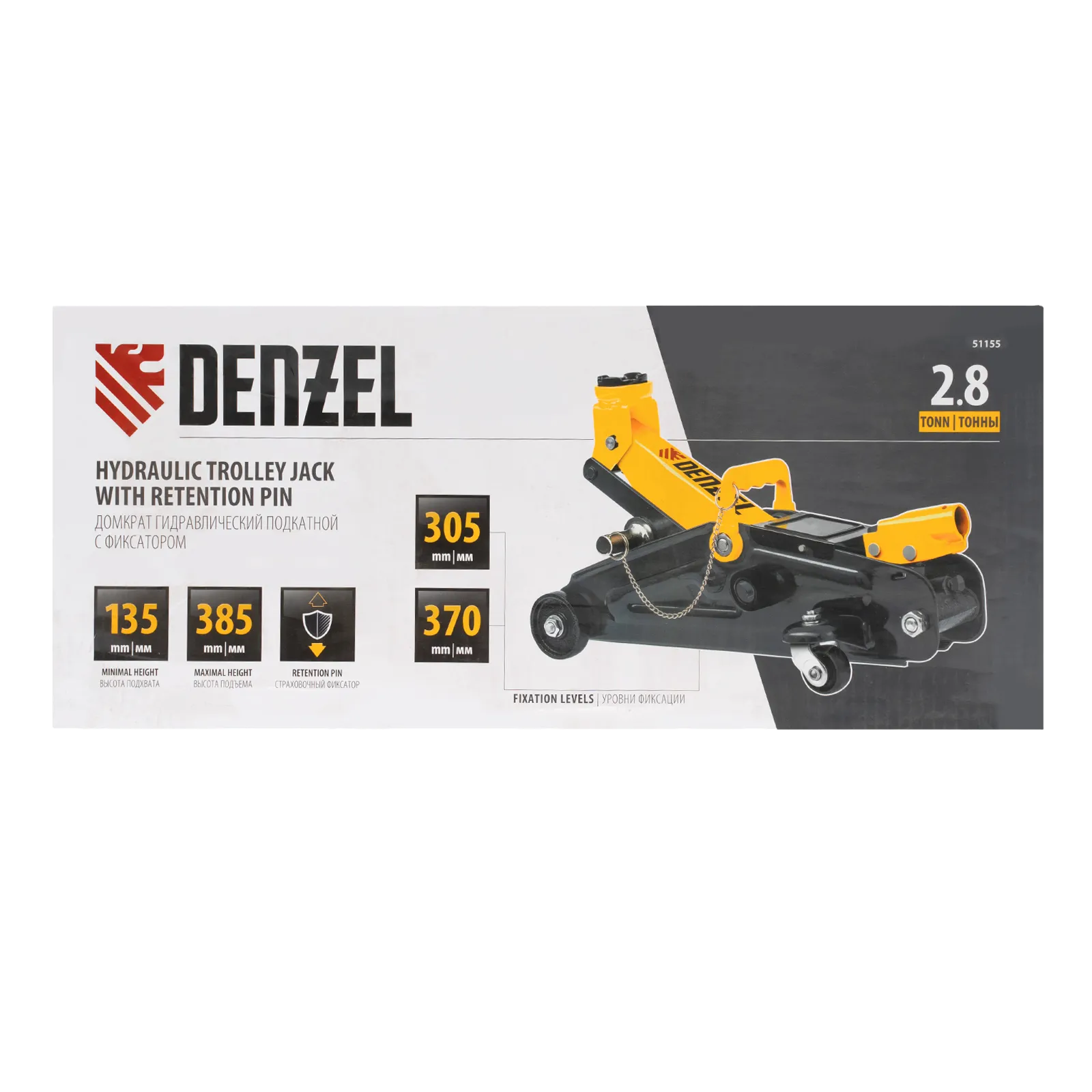 Гидравлический подкатной домкрат с фиксатором Denzel 51155 с высотой подхвата 135 мм предназначен для плавного подъема грузов массой до 2,8 т на высоту до 385 мм. Страховочный штифт позволяет фиксировать подъемный рычаг на высоте 305 и 370 мм для безопасной работы. Домкрат пригодится владельцам легковых автомобилей со стандартным клиренсом.