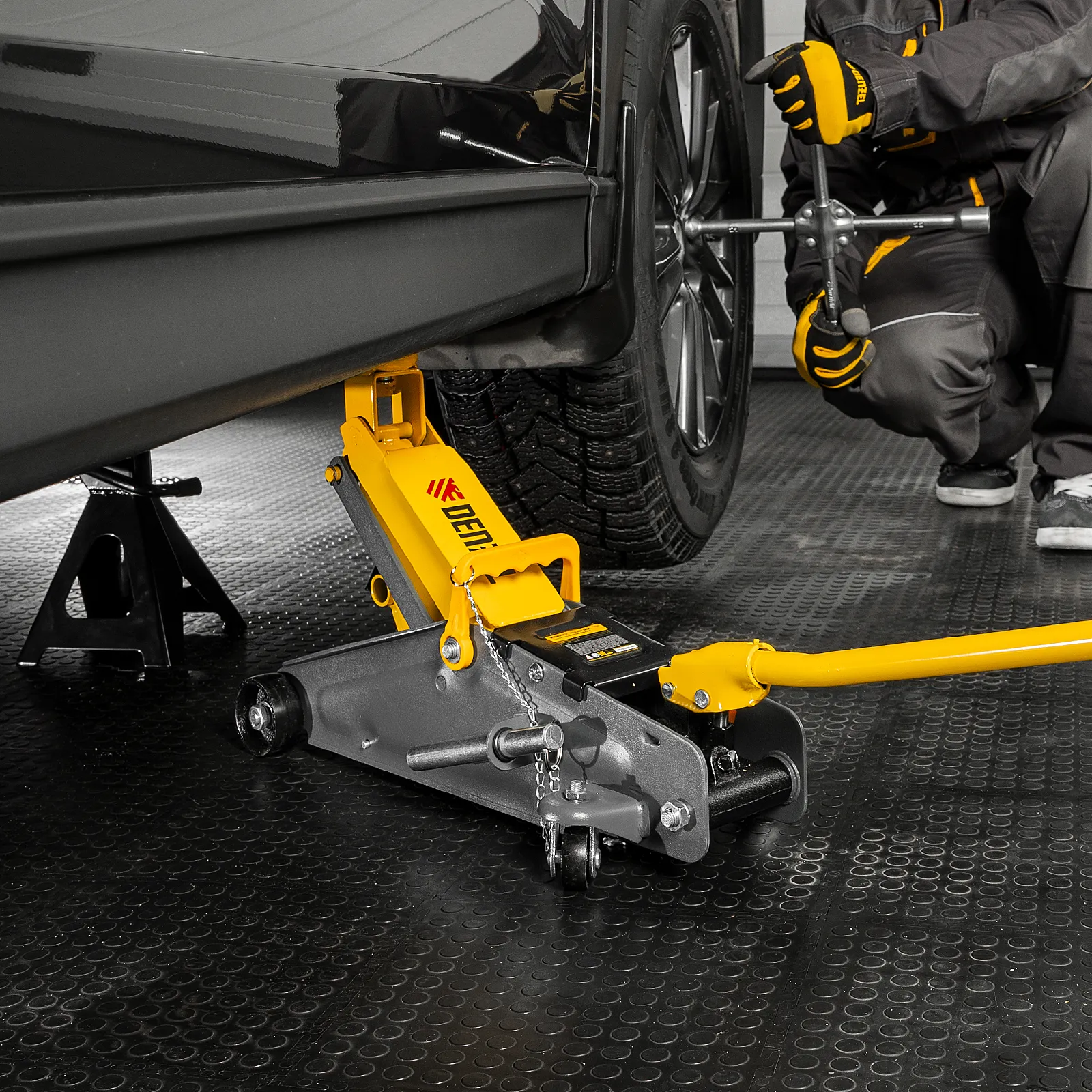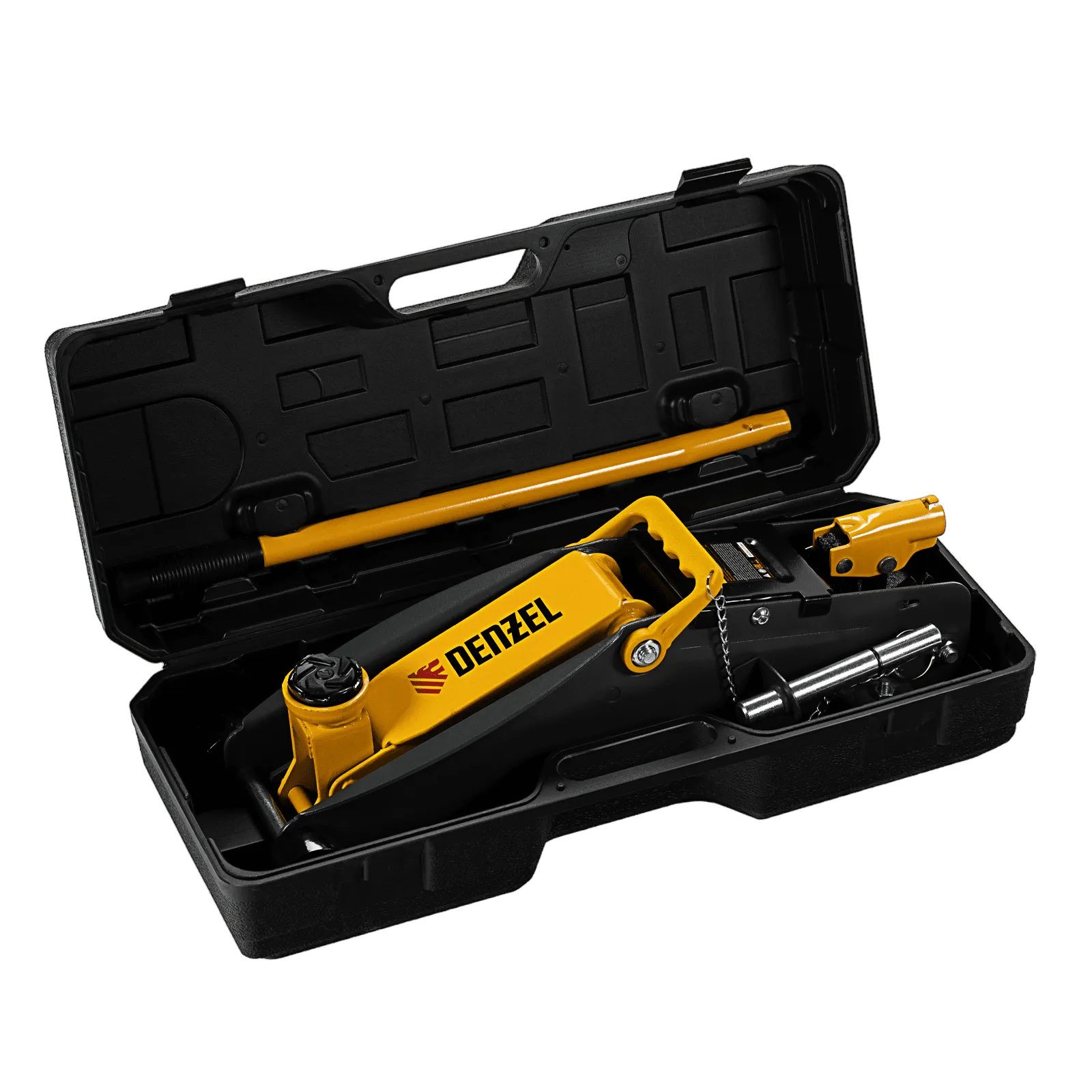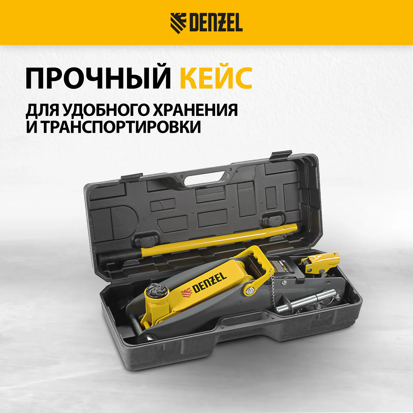 - Удобное хранение и транспортировка — домкрат поставляется в прочном пластиковом кейсе.
