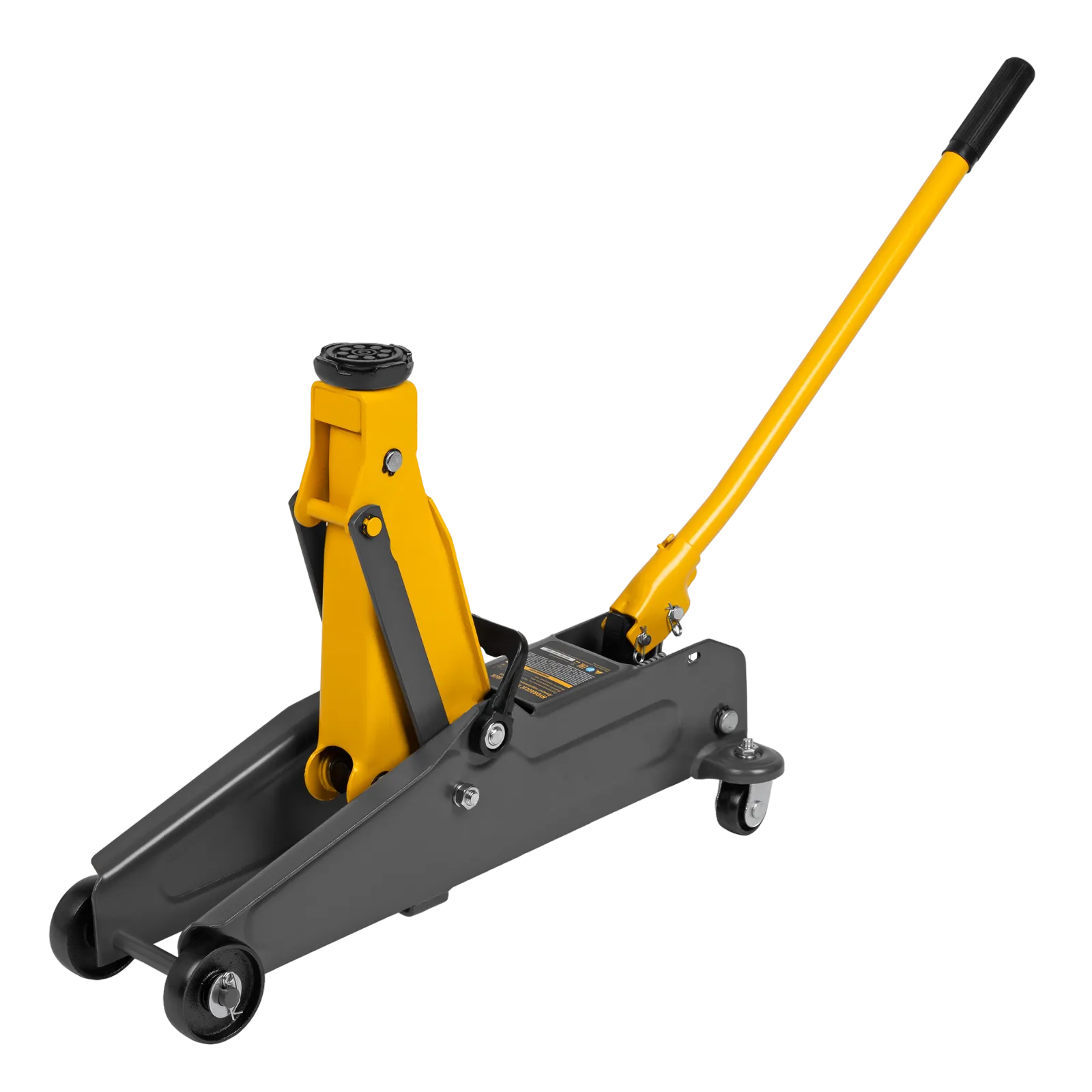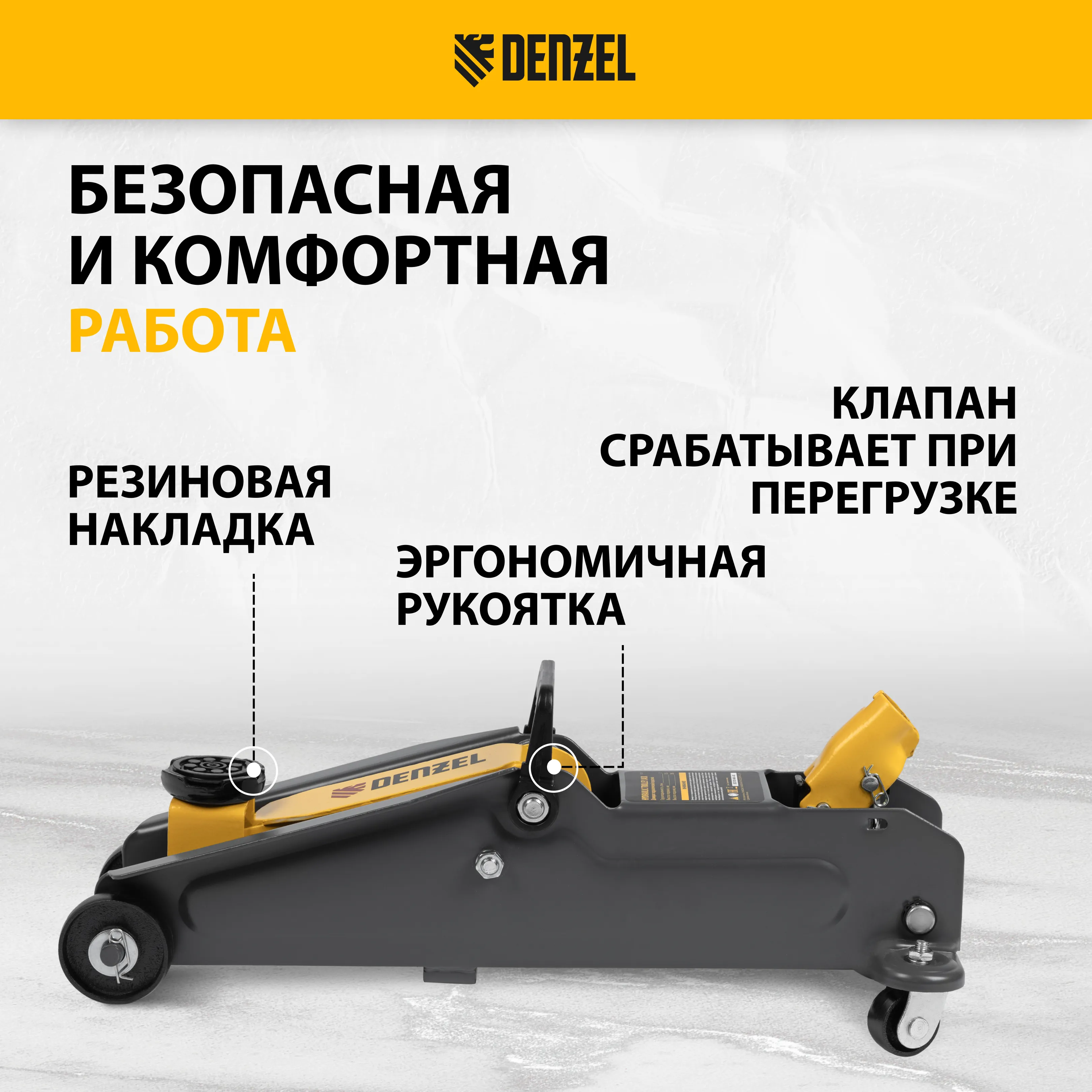 Гидравлический подкатной домкрат Denzel 51230 с высотой подхвата 135 мм предназначен для плавного подъема грузов массой до 2 т на высоту до 385 мм. Домкрат пригодится владельцам легковых автомобилей со стандартным клиренсом.