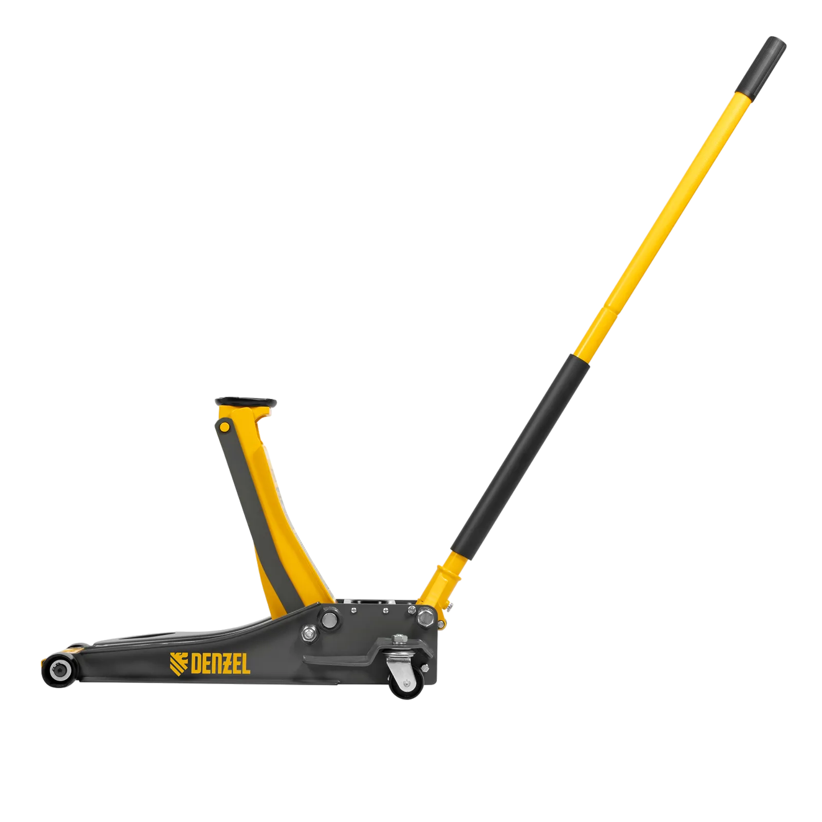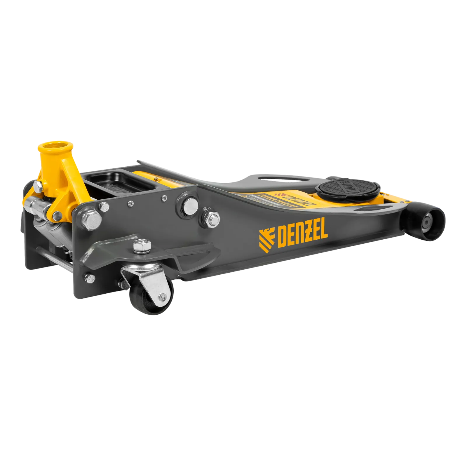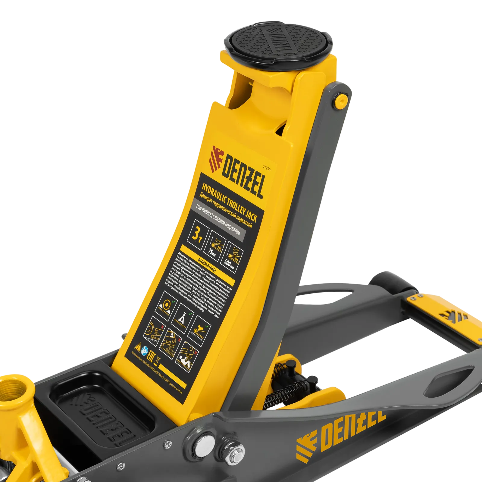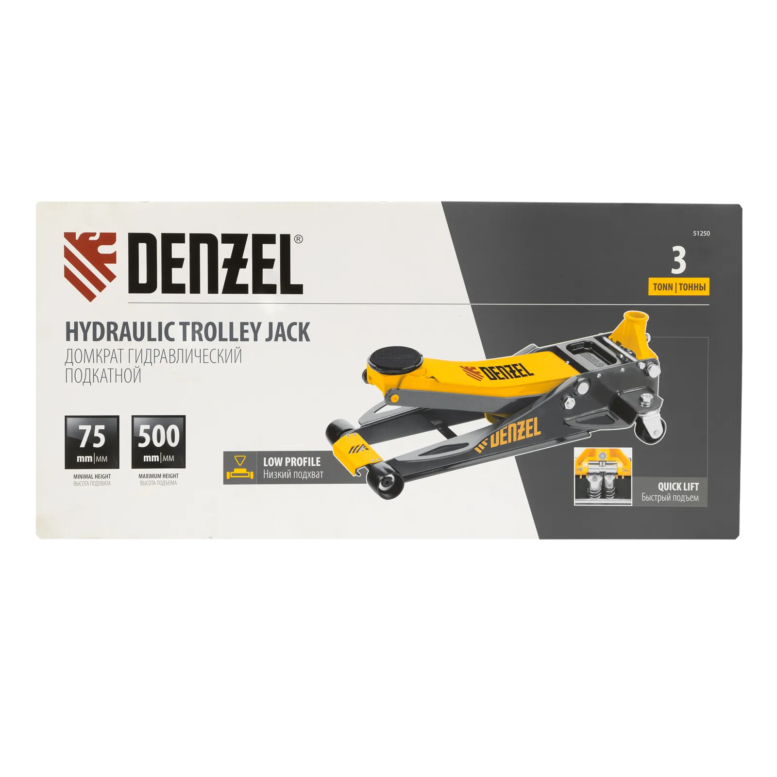 Профессиональный подкатной гидравлический домкрат Denzel 51250 с низким подхватом используется для быстрого подъема на высоту 75-500 мм всех типов автомобилей массой до 3 т и с любым клиренсом, в том числе сверхнизким. В гидравлическом блоке предусмотрено 2 насоса (система быстрого подъема QUICK LIFT), благодаря чему для достижения предельной высоты достаточно 6 качков рукоятки. Домкрат подходит для использования на станциях профессионального техобслуживания и шиномонтажа, а также для личного использования.