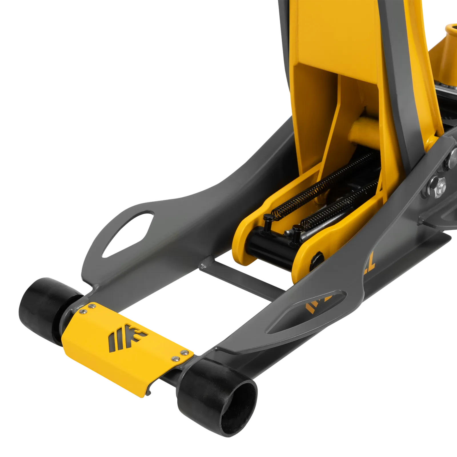 - Инновационная усиленная конструкция — боковые крылья обеспечивают дополнительную жесткость и увеличивают металлоемкость, а также повышают удобство подката и регулировки домкрата под автомобилем.