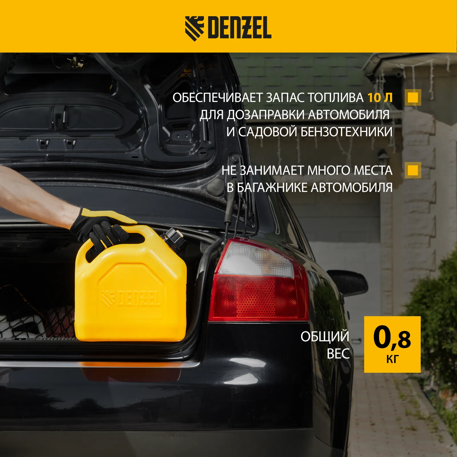 Премиум-канистра DENZEL 53129 объемом 10 л используется для хранения и транспортировки ГСМ. Ее удобно брать в дорогу, а также можно поставить на даче, или в гараже. Канистра пригодится для заправки автомобиля и бензотехники.