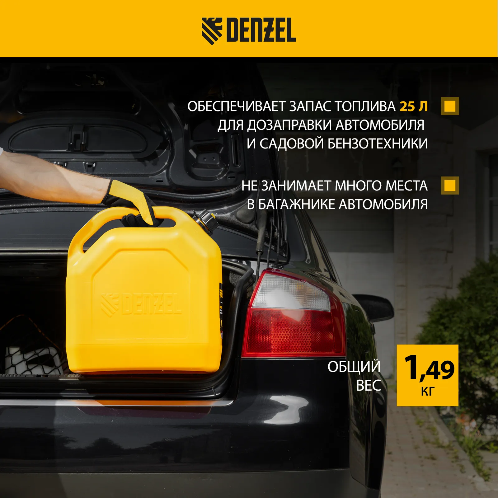 Премиум-канистра DENZEL 53132 объемом 25 л используется для хранения и транспортировки ГСМ. Ее удобно брать в дорогу, а также можно поставить на даче, или в гараже. Канистра пригодится для заправки автомобиля и бензотехники.