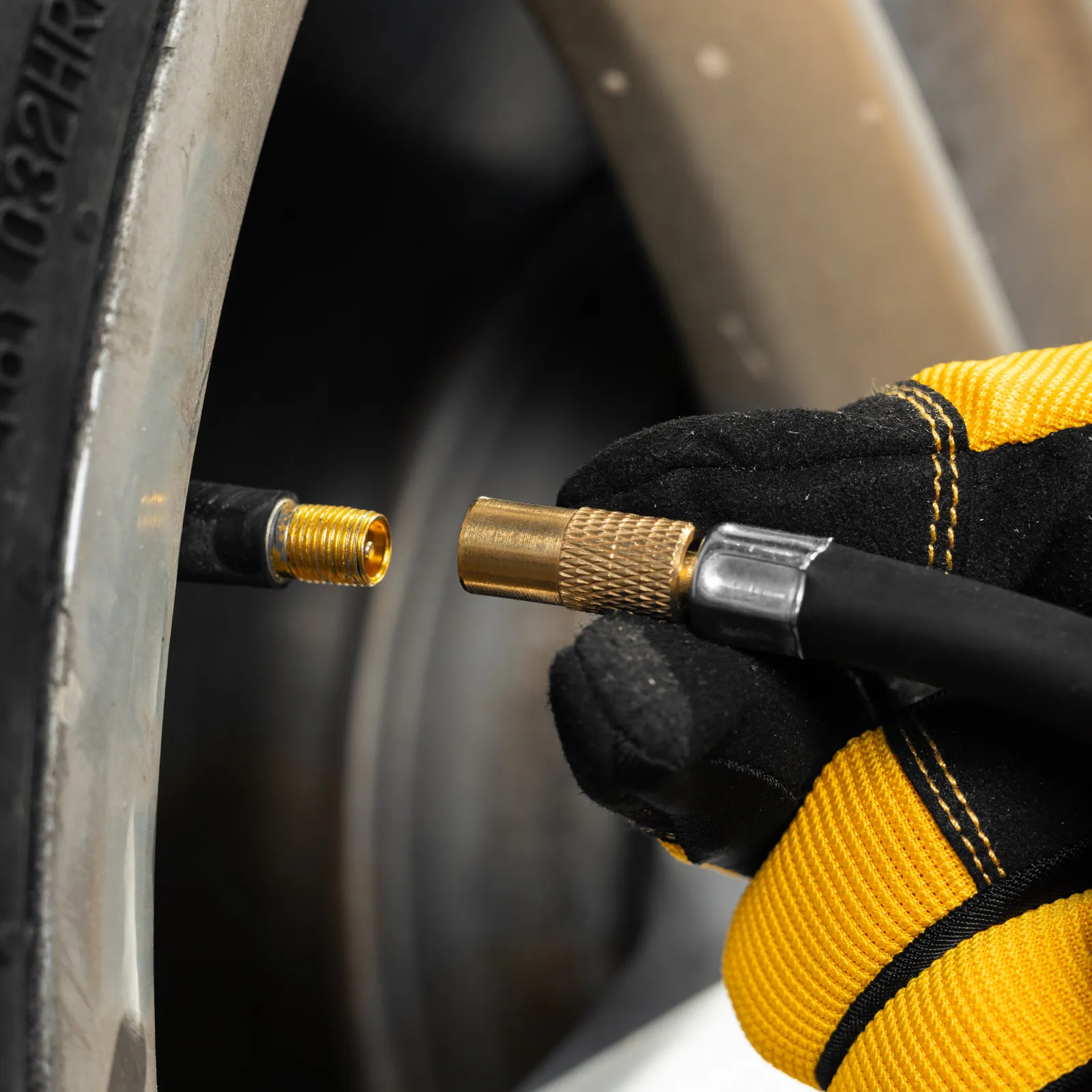 - В комплект входит 3 насадки для подключения к ниппелям разных типов.