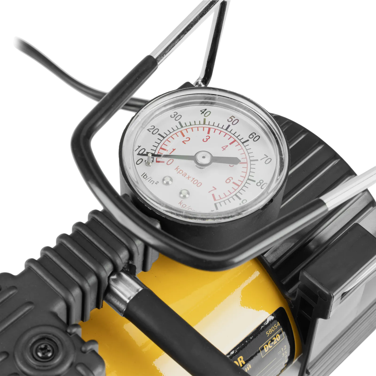 Автомобильный компрессор Denzel DC-20 58054 производительностью 35 л/мин работает от источника питания 12 В, создает давление 7 атмосфер и используется для быстрого накачивания шин автомобильных колес. Благодаря увеличенной мощности на подкачку колеса R16 потребуется не более 4-5 минут. Компрессор также подойдет для накачки мячей, надувных лодок, тюбингов и прочего снаряжения. Устройство не требует технического обслуживания и незаменимо в поездке или во время отдыха на природе.