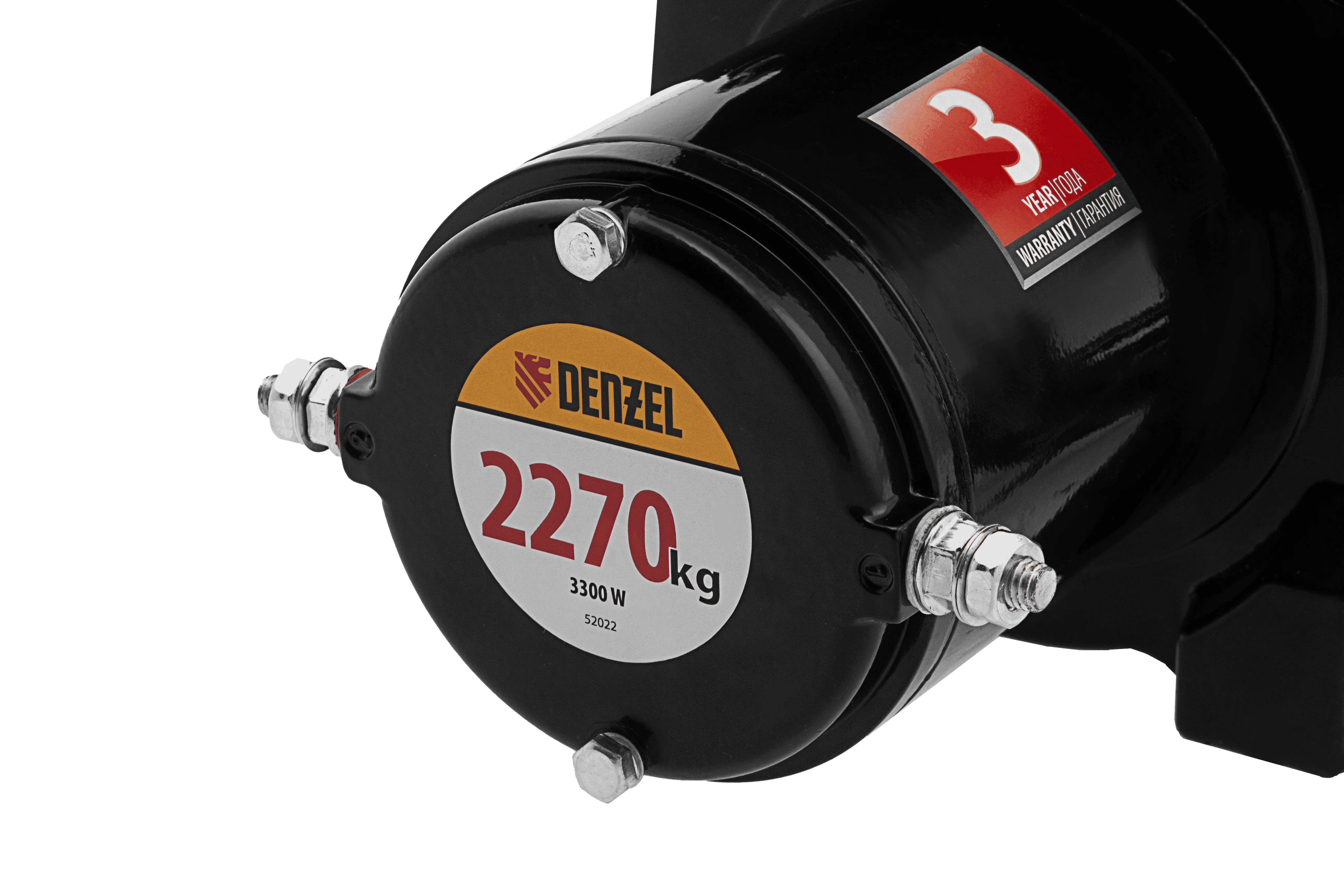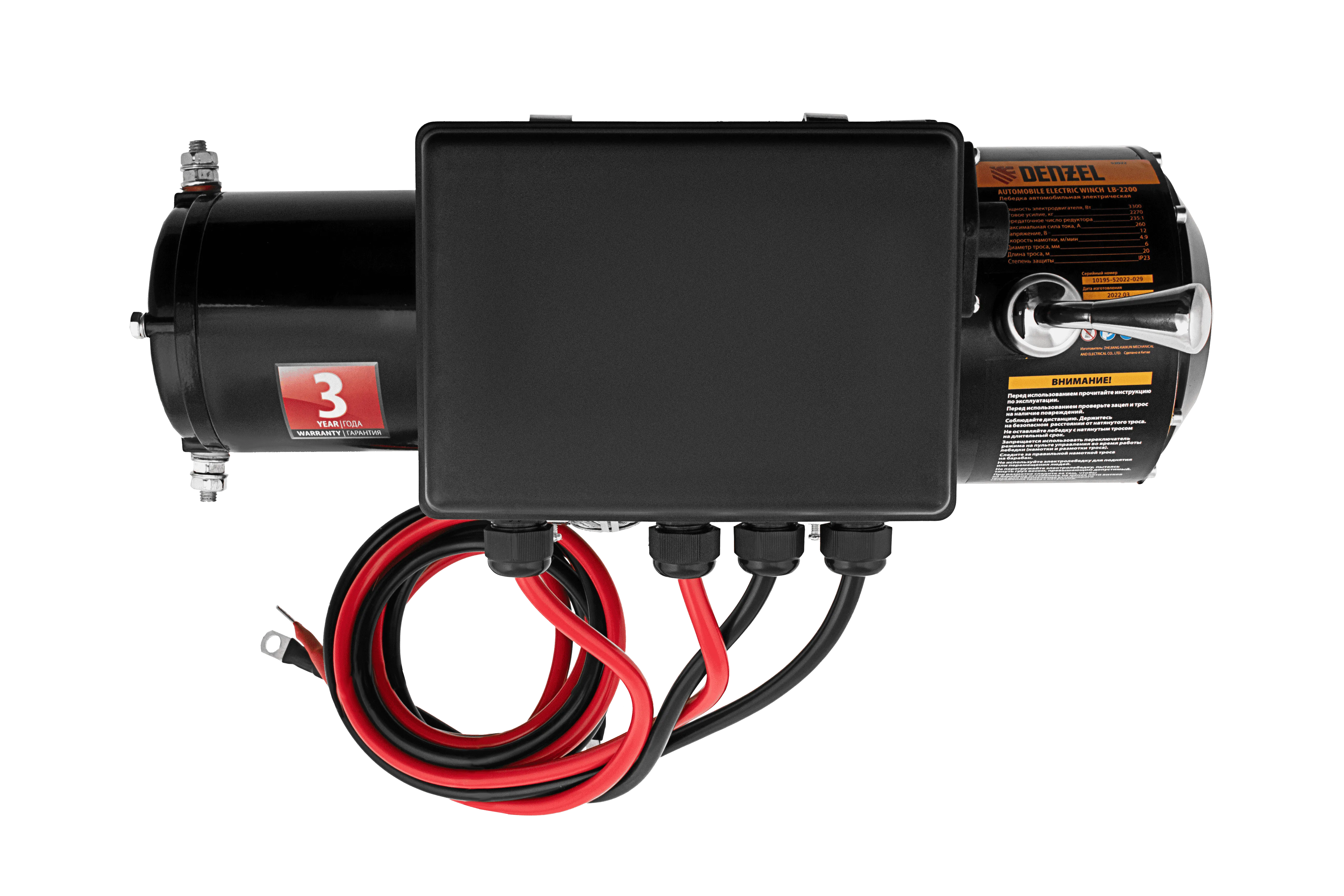 Автомобильная электрическая лебедка Denzel LB-2200 52022 мощностью 3,3 кВт работает от бортовой сети напряжением 12 В и предназначена для перемещения транспортных средств массой до 2,2 т. Монтируется на раме (бампере) автомобиля, незаменима в поездках, т.к. с ее помощью можно легко освободить застрявшее авто, квадроцикл и другую технику.