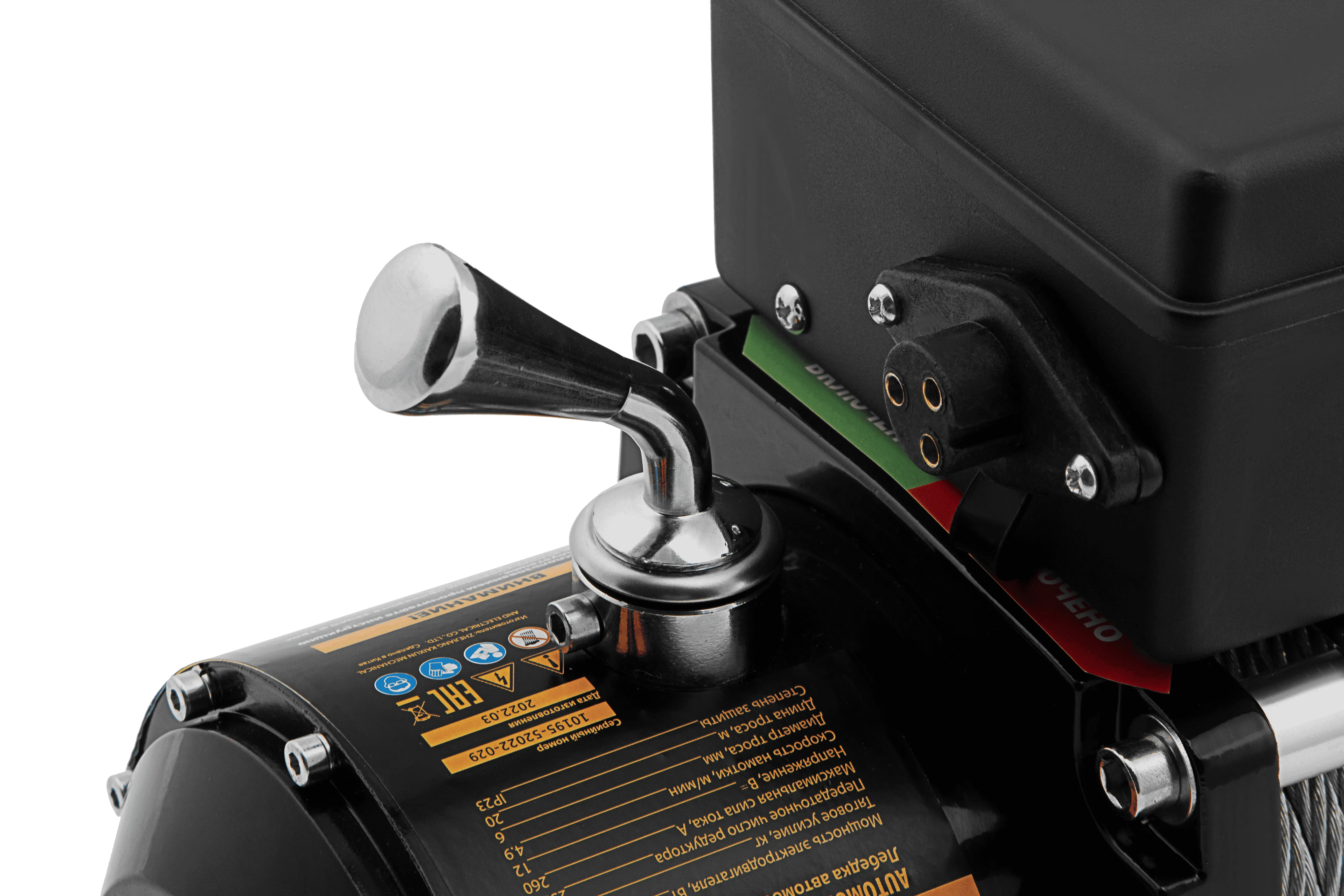 - Удобное управление — включение и выключение лебедки, размотка и намотка троса осуществляются при помощи выносного пульта.