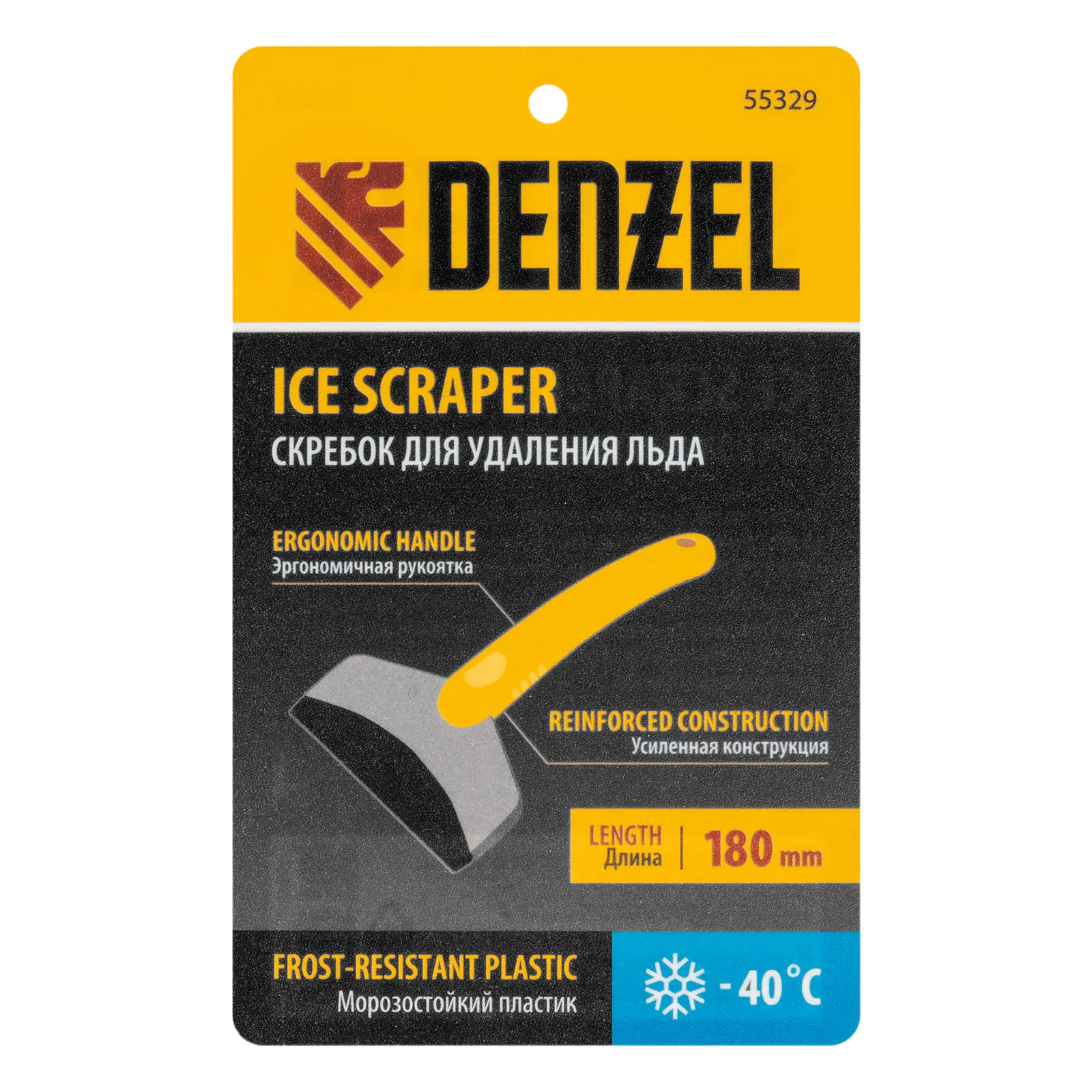 Усиленный скребок для удаления льда Denzel 55329 применяется для очищения зеркал и стекол автомобиля от налипшего и примерзшего снега. За счет небольшого размера 18 х 11 см скребок удобно хранить в салоне автомобиля.