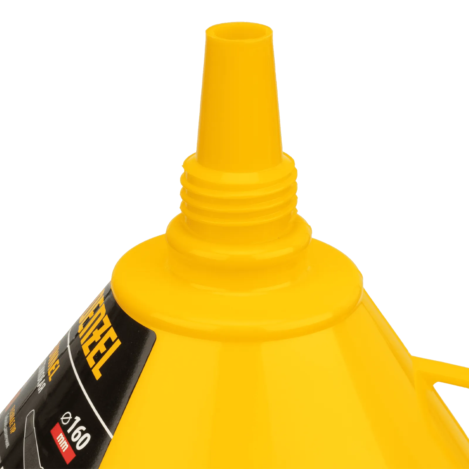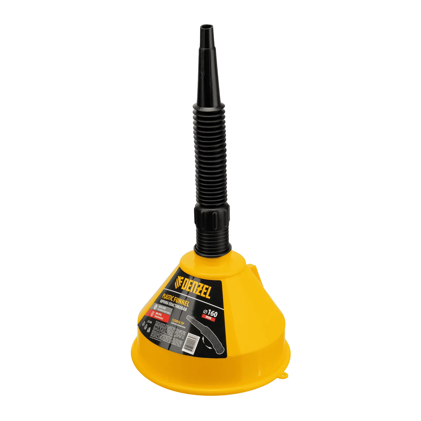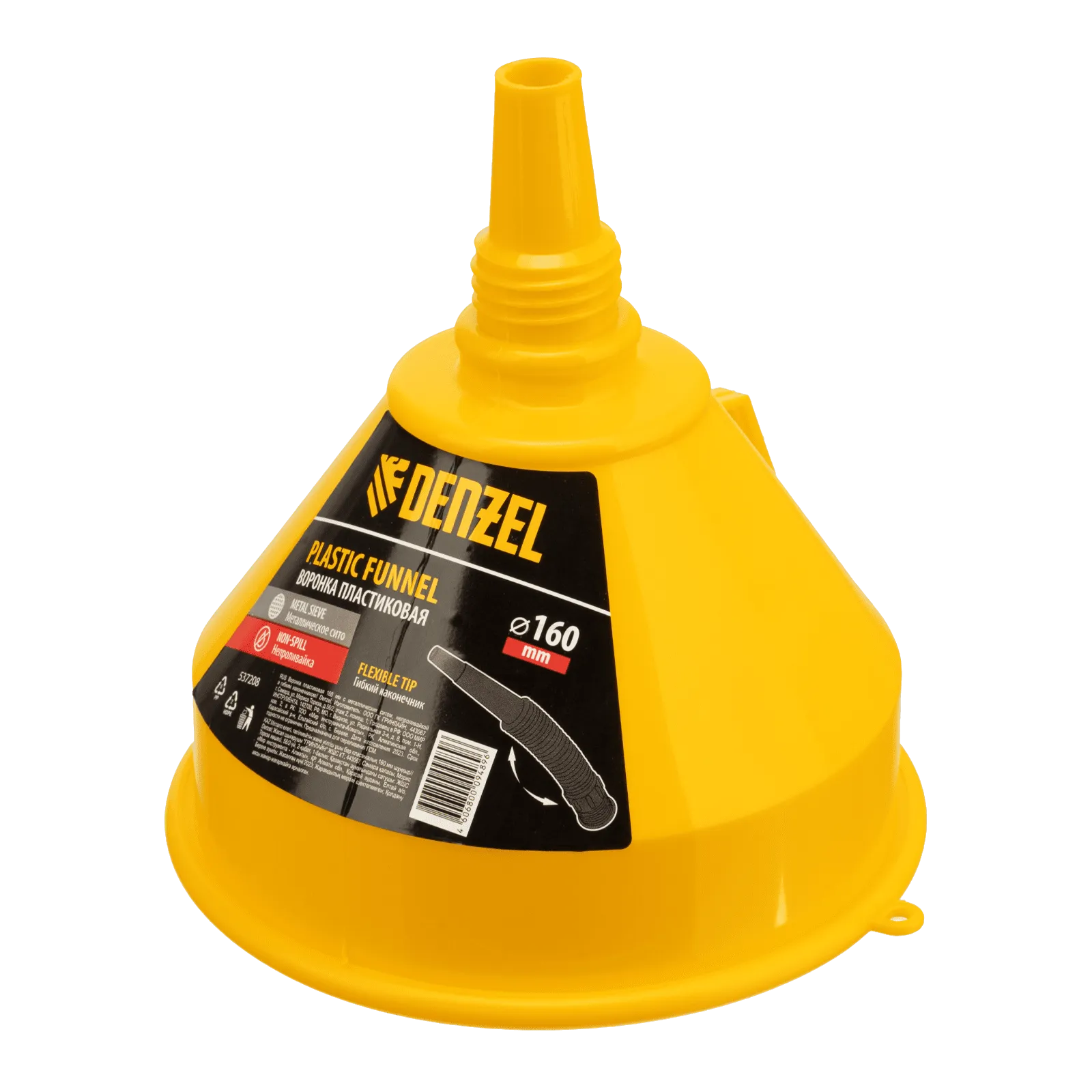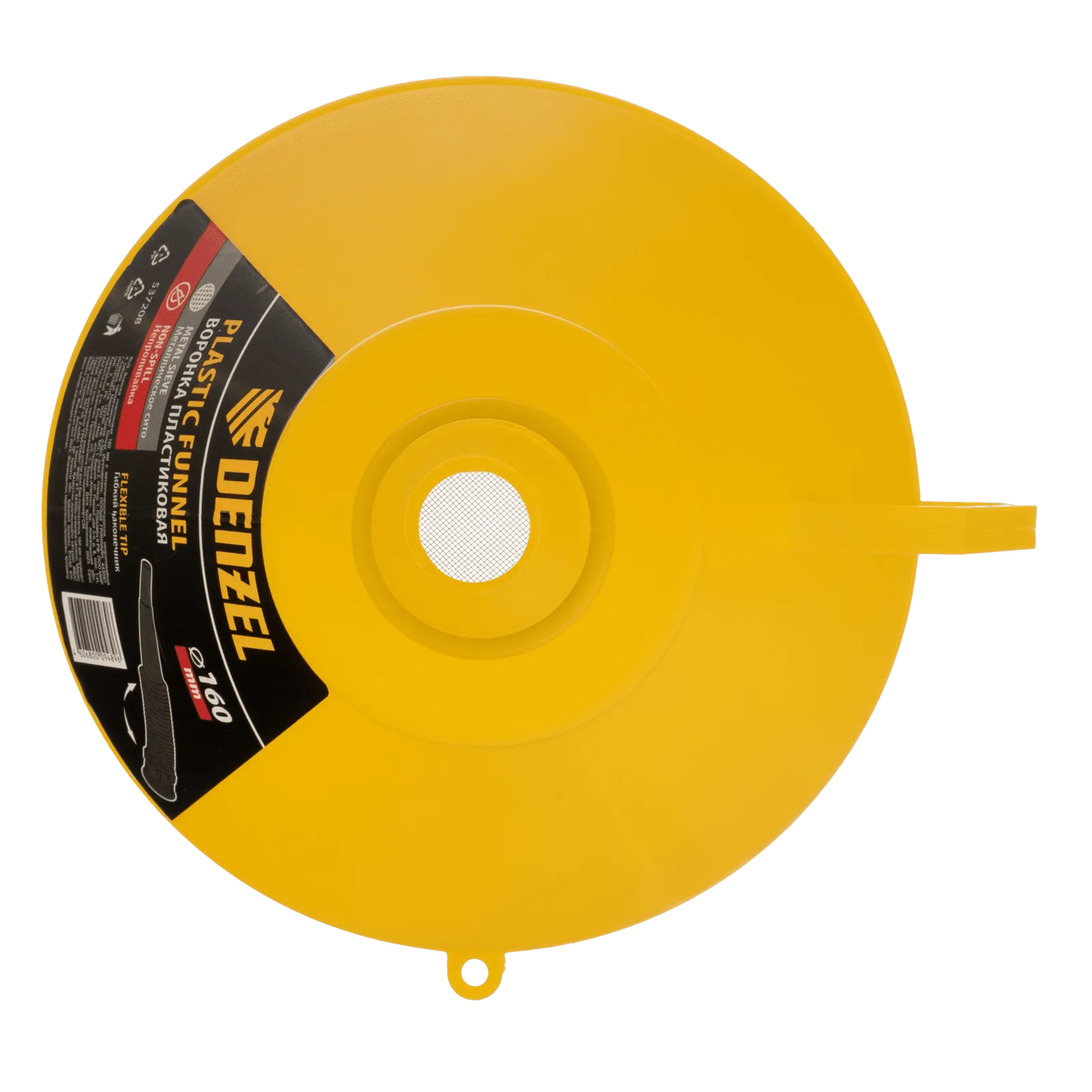 Пластиковая воронка Denzel 537208 диаметром 160 мм, с металлическим сетчатым фильтром, «непроливайкой» и гибким наконечником, позволяет переливать топливо, антифриз, масло и другие горюче-смазочные материалы. Будет полезна автовладельцам: с ее помощью процедура происходит гораздо быстрее и без риска испачкаться. Воронка выполнена из маслобензостойкого материала.