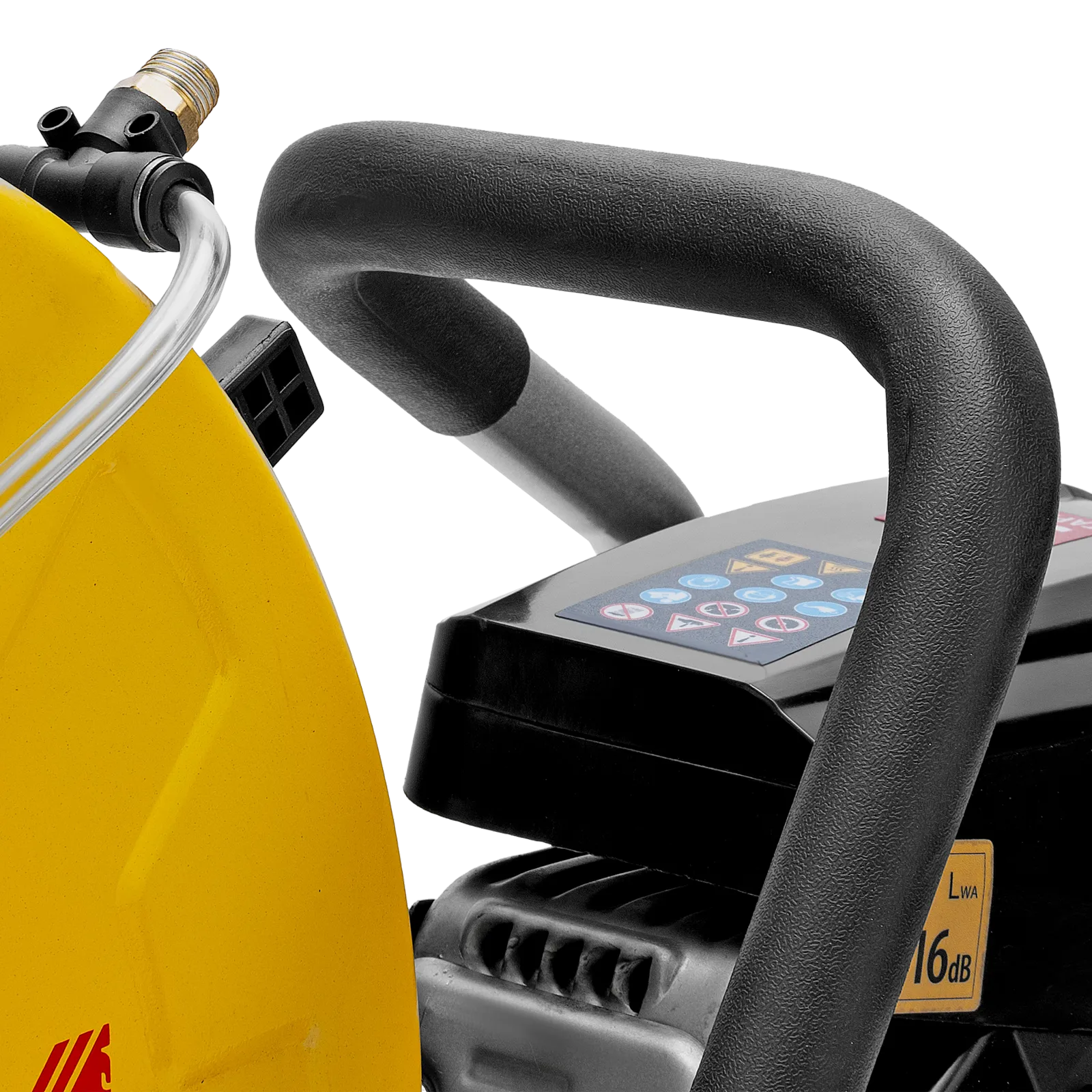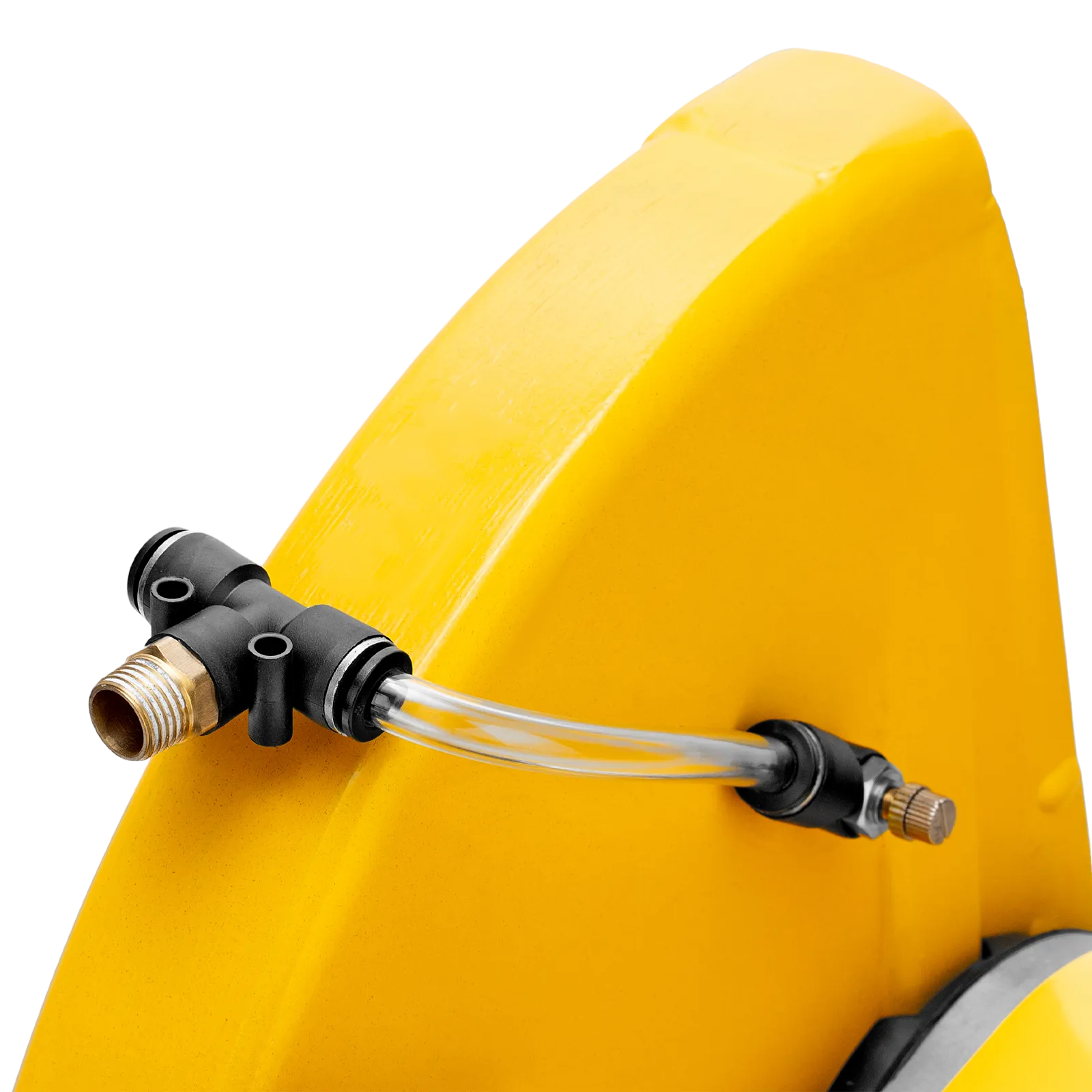 Бензорез оснащен универсальным штуцером для подачи воды. Использование водяного охлаждения позволяет уменьшить количество образующейся пыли и снизить нагрузку на двигатель.