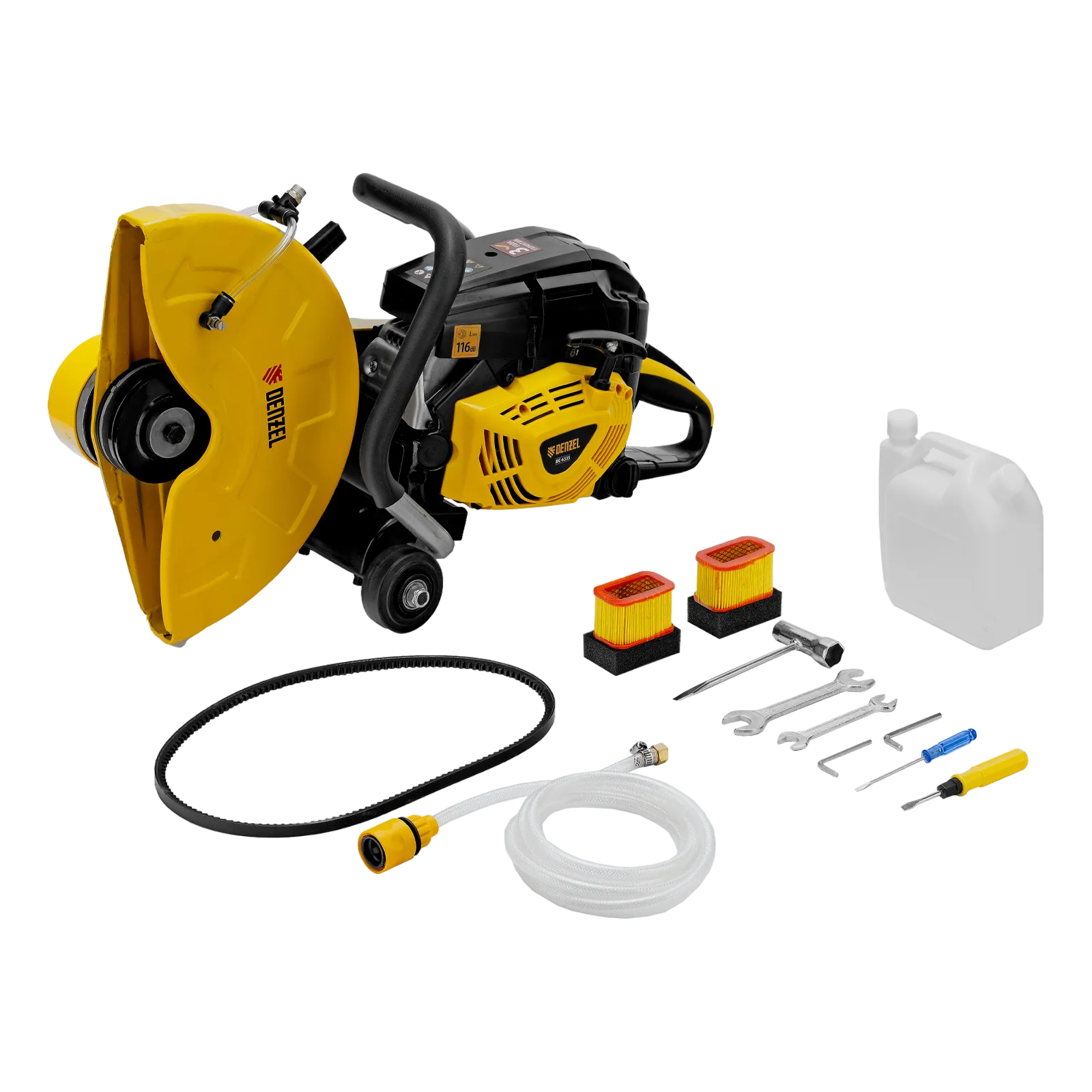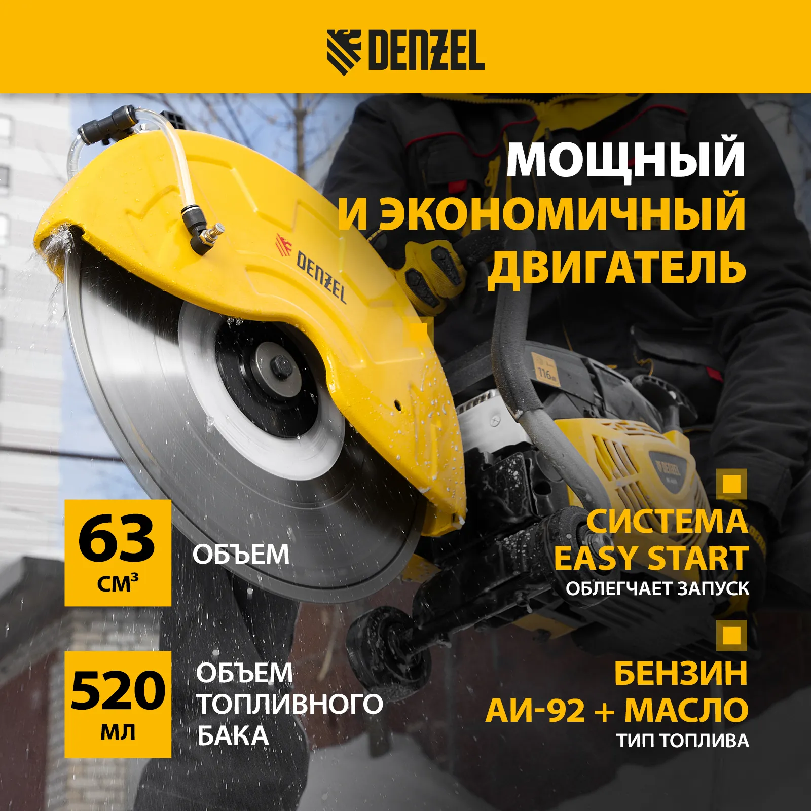 Бензорез Denzel MC-6335 66301 предназначен для работы с бетоном, асфальтом, чугуном, сталью и другими твердыми материалами. Оптимален для проведения демонтажных работ на строительной площадке, также может применяться во время спасательных операций. Для работы используются алмазные, абразивные и зубчатые диски диаметром 350 мм. Эффективное решение поставленных задач обеспечивает двигатель объемом 65 см3 и мощностью 4,5 л.с.
