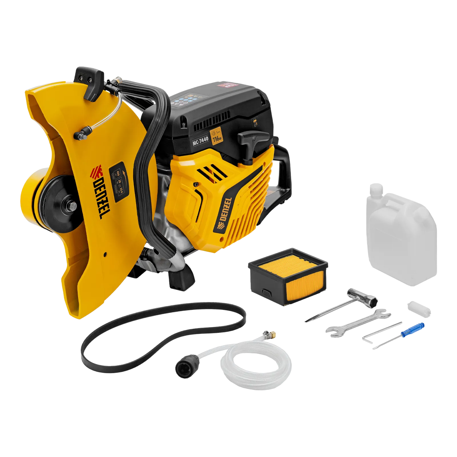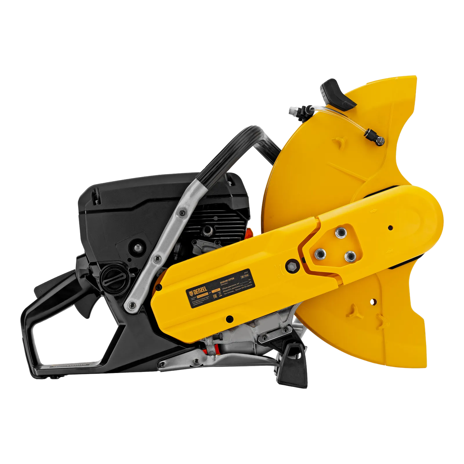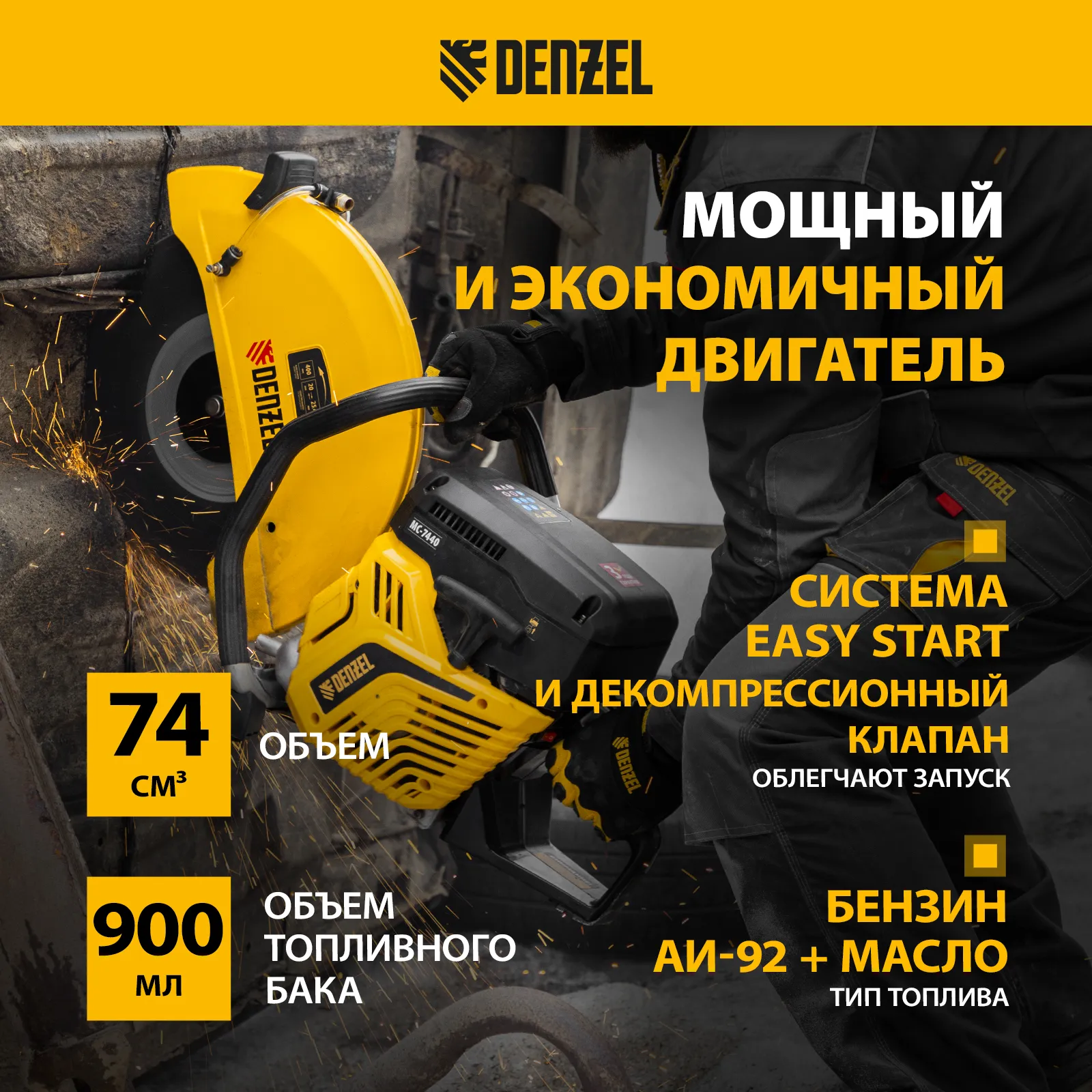 Бензорез Denzel MC-7440 66302 предназначен для работы с бетоном, асфальтом, чугуном, сталью и другими твердыми материалами. Оптимален для проведения демонтажных работ на строительной площадке, также может применяться во время спасательных операций. Для работы используются алмазные, абразивные и зубчатые диски диаметром 400 мм. Эффективное решение поставленных задач обеспечивает двигатель объемом 74 см3 и мощностью 4,8 л.с., для удобного выбора режущего диска имеется два посадочных диаметра: 20 и 25,4 мм.