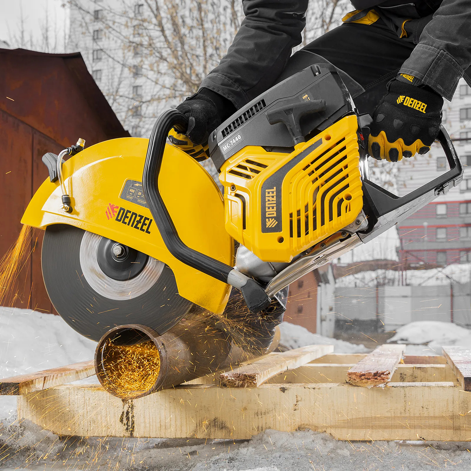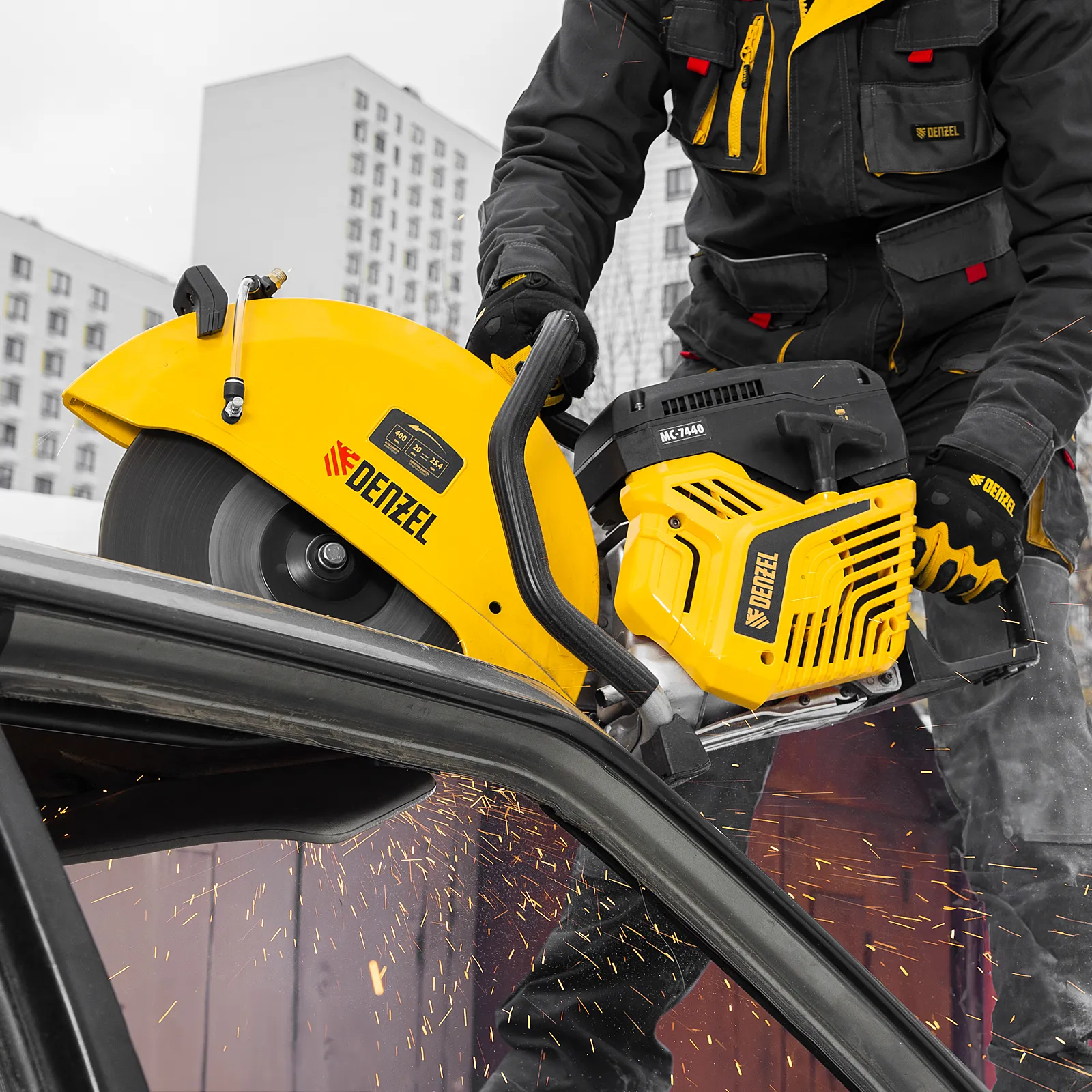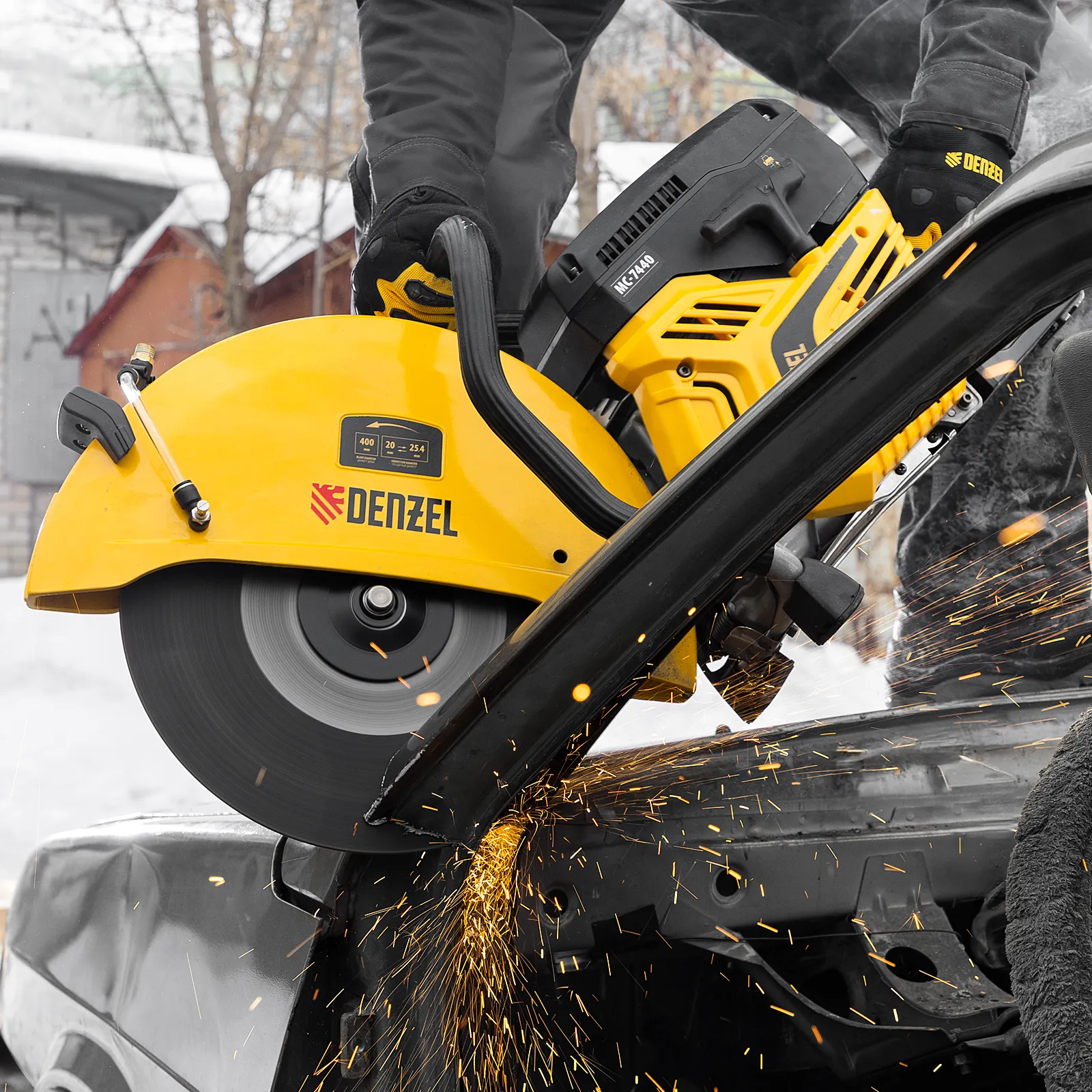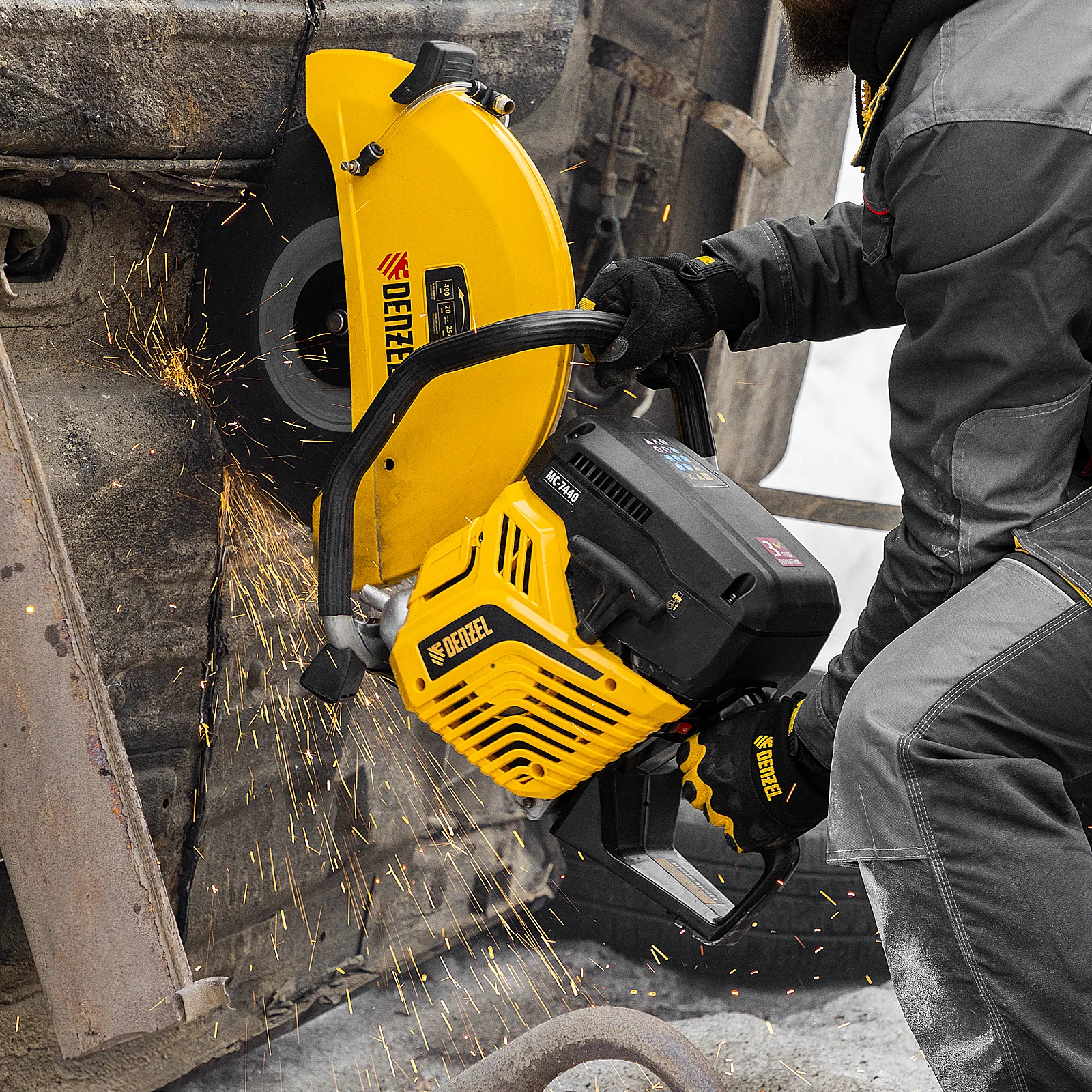Бензорез Denzel MC-7440 66302 предназначен для работы с бетоном, асфальтом, чугуном, сталью и другими твердыми материалами. Оптимален для проведения демонтажных работ на строительной площадке, также может применяться во время спасательных операций. Для работы используются алмазные, абразивные и зубчатые диски диаметром 400 мм. Эффективное решение поставленных задач обеспечивает двигатель объемом 74 см3 и мощностью 4,8 л.с., для удобного выбора режущего диска имеется два посадочных диаметра: 20 и 25,4 мм.