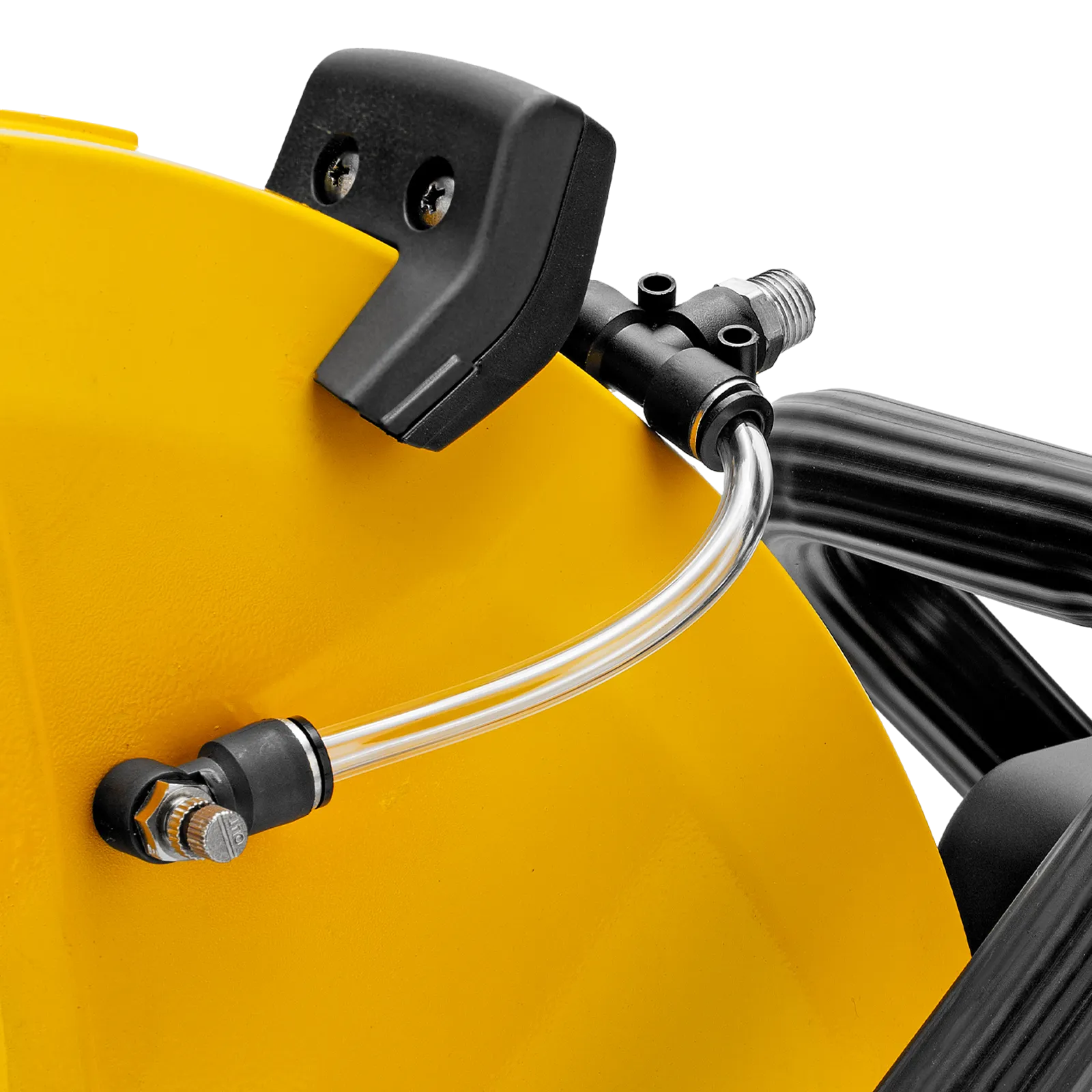 Бензорез оснащен универсальным штуцером для подачи воды. Использование водяного охлаждения позволяет уменьшить количество образующейся пыли и снизить нагрузку на двигатель.