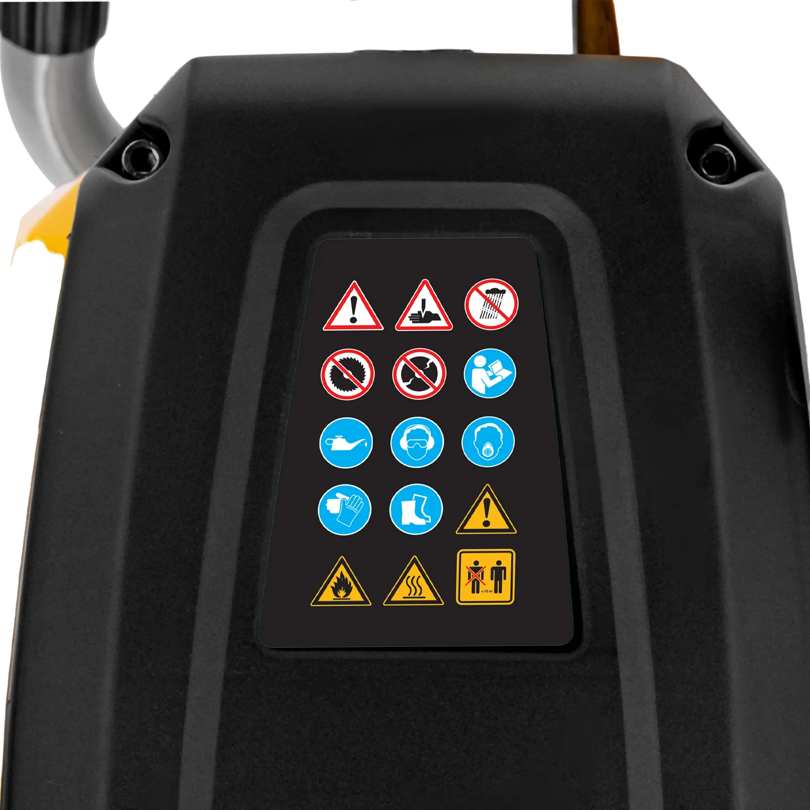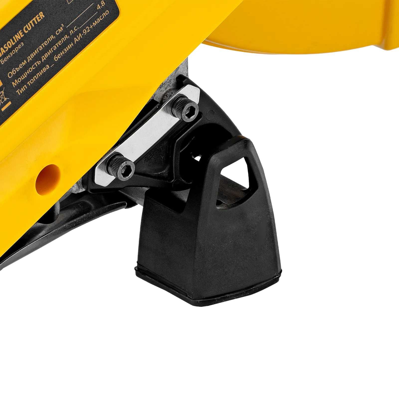 - Безопасность — режущий диск закрыт защитным кожухом, блокиратор курка газа исключает случайный запуск двигателя.