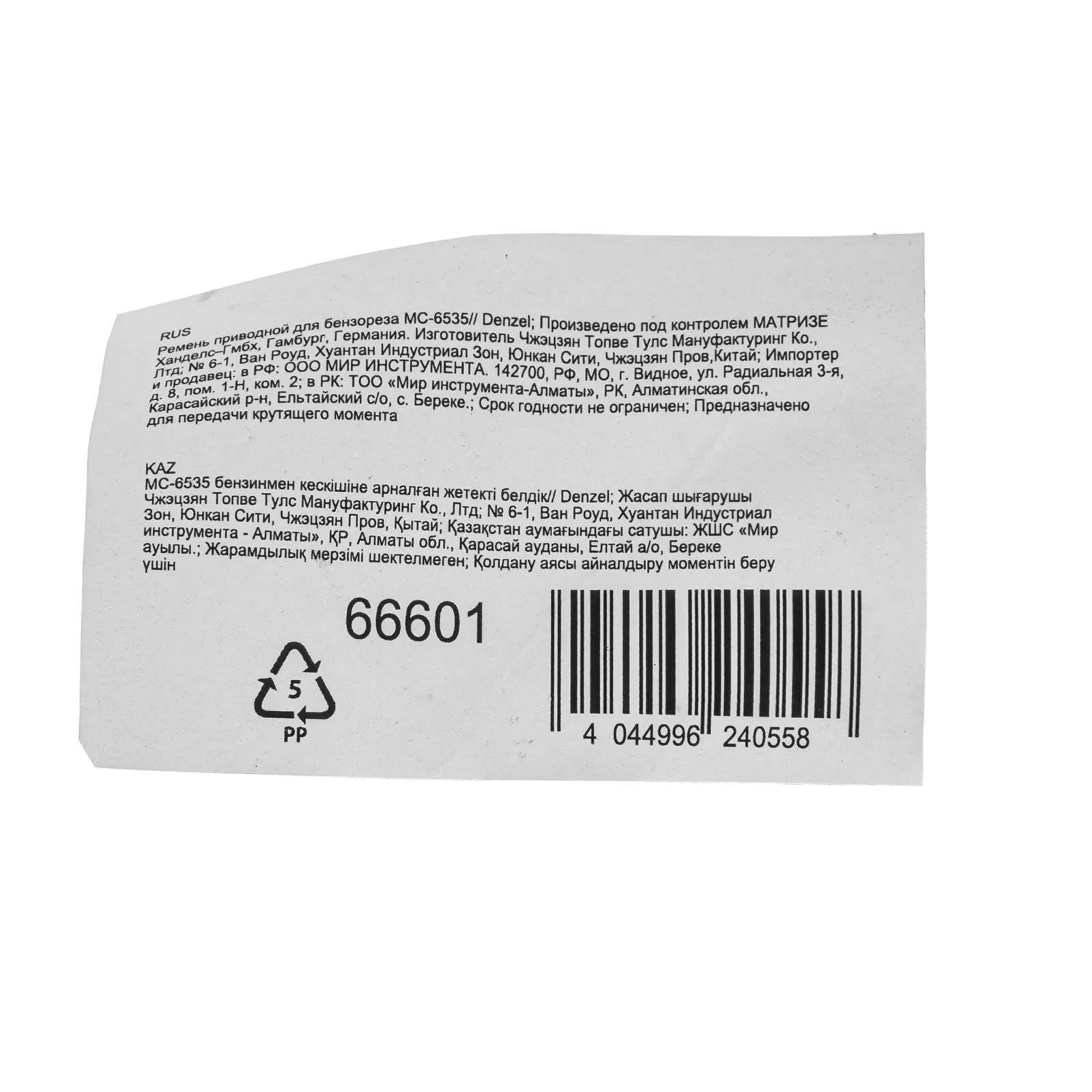 Приводной ремень Denzel 66601 передает крутящий момент с выходного вала, обеспечивая эффективное функционирование бензореза Denzel МС-6535 (арт. 66301). Позволяет восстановить работоспособность техники в случае растяжения или обрыва установленного ремня.