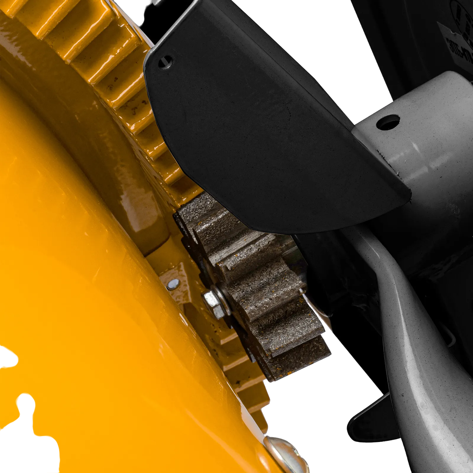 - Безопасная эксплуатация — ведущая шестерня закрыта широким защитным кожухом, предотвращающим затягивание посторонних предметов в привод.