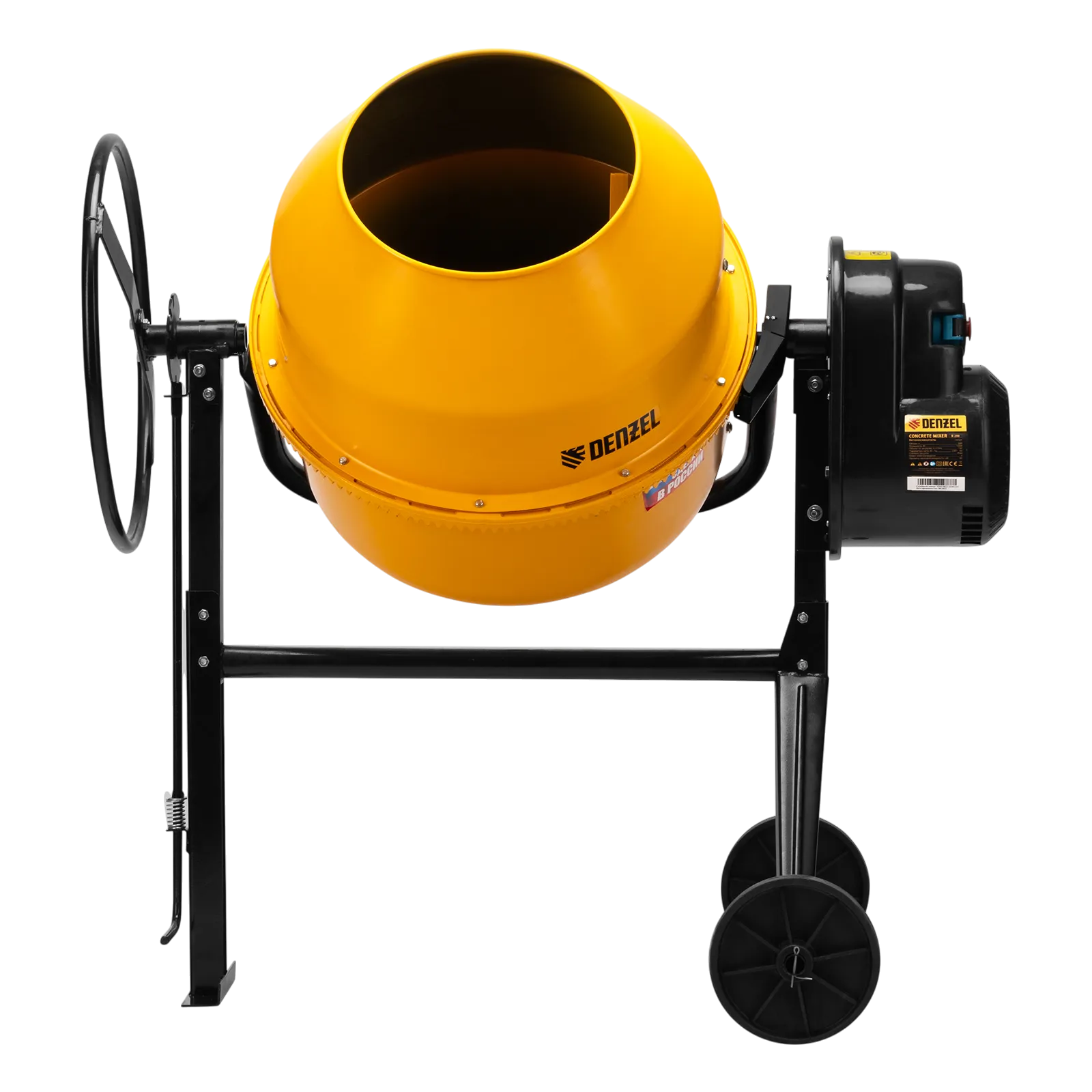 - Удобная транспортировка — колеса упрощают перемещение бетоносмесителя по строительной площадке.