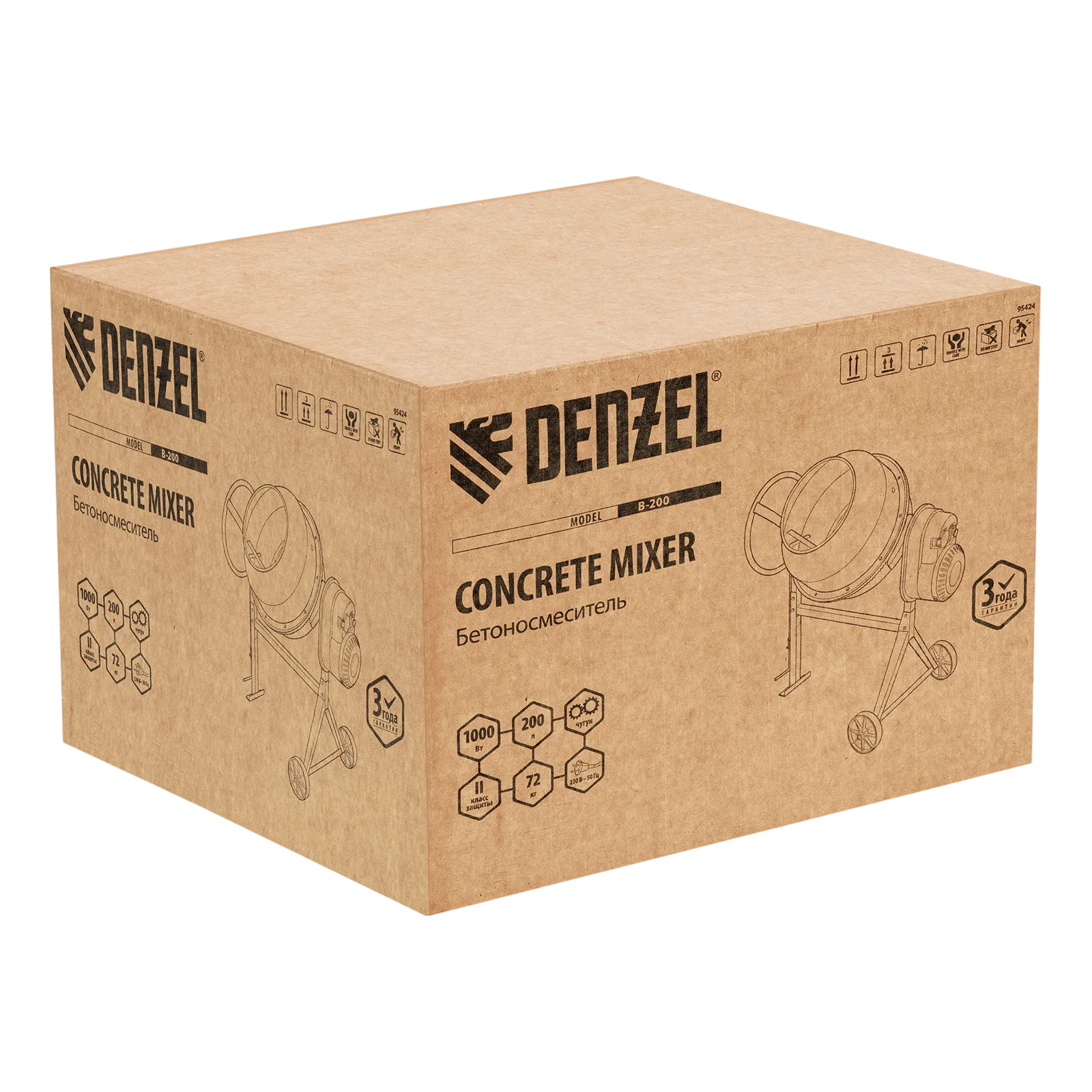Бетоносмеситель Denzel B-200 95424 используется для приготовления раствора цемента, бетона или других смесей. Усиленная конструкция, оптимальное соотношение мощности двигателя 1000 Вт и объема бака 200 л позволяют использовать устройство в режиме высокой нагрузки. Бетоносмеситель пригодится при проведении ремонтных работ и частном строительстве. Барабан объемом 200 л обеспечивает получение до 110 л готовой смеси.