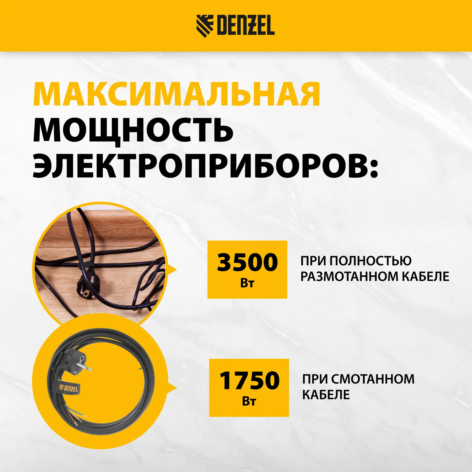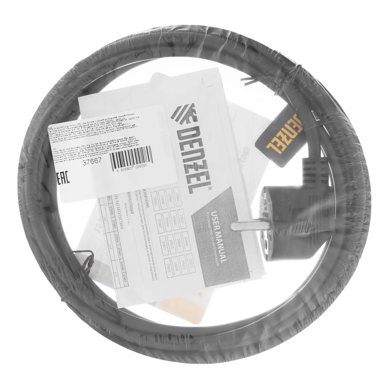 Черный сетевой шнур Denzel Energy Series 37667 с кабелем ПВС сечением 3 x 1 мм и длиной 3 м, с неразборной вилкой, предназначен для подключения к сети электроприборов мощностью до 3500 Вт. Для смотанного кабеля максимальная мощность потребителя составляет 1750 Вт. Шнур можно использовать для самостоятельного подключения прибора или замены вышедшего из строя провода. Сделано в России.