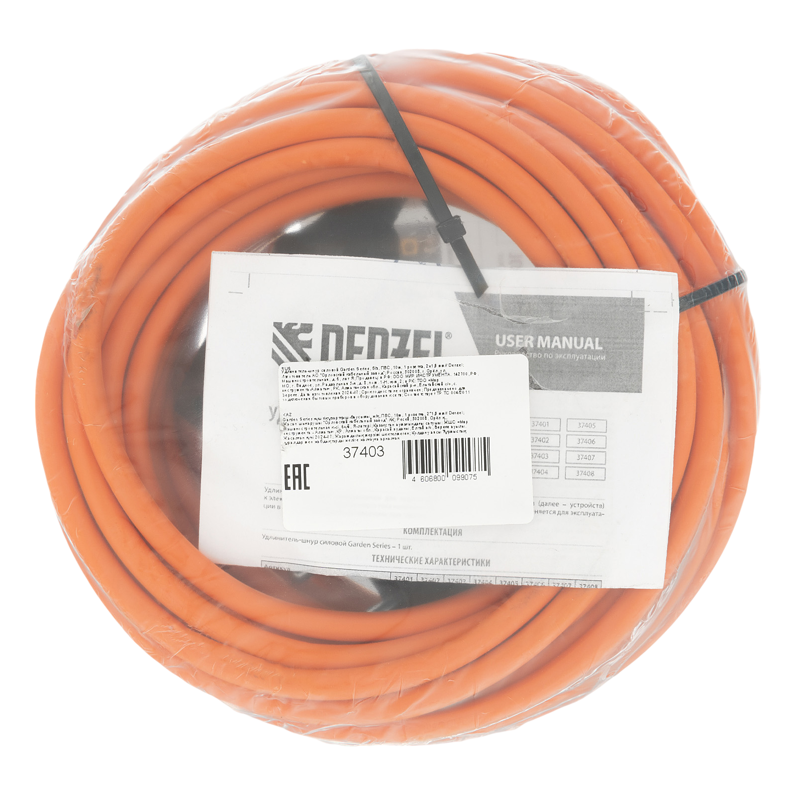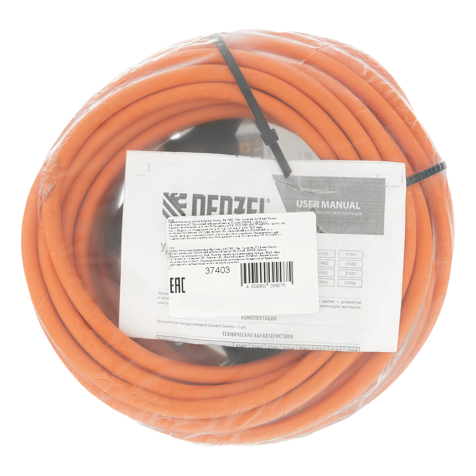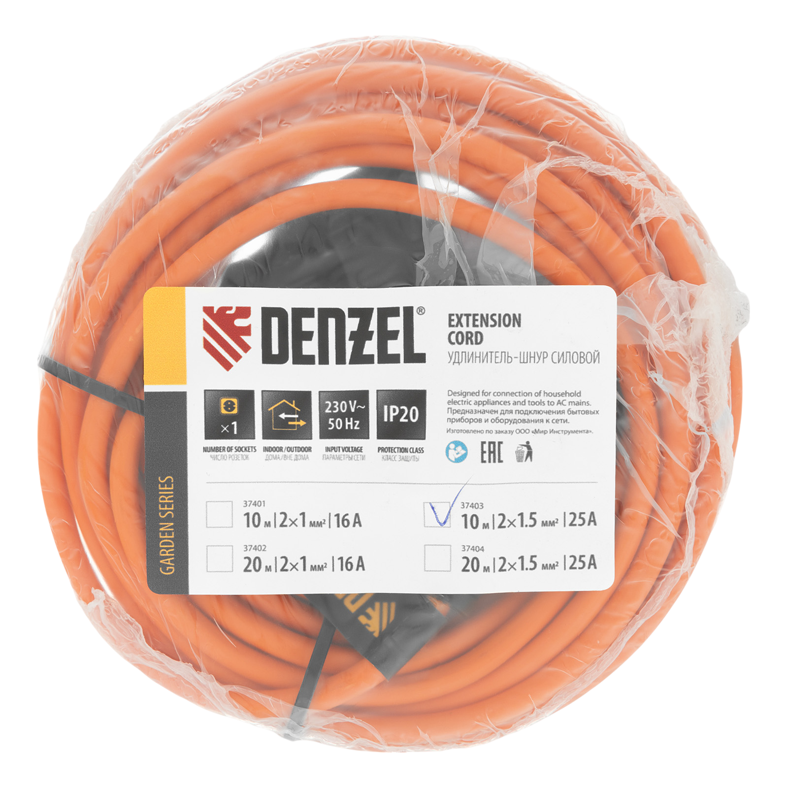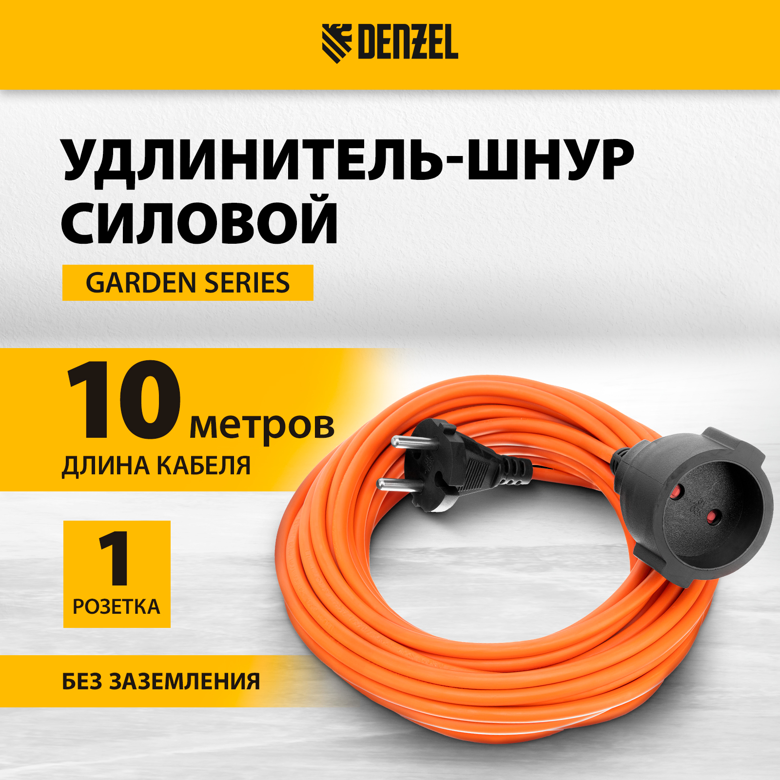 Силовой удлинитель-шнур Denzel Garden Series 37403 с кабелем ПВС сечением 2 x 1,5 мм и 1 розеткой без заземления, позволяет подключать приборы к электросети на расстоянии до 10 м от стационарного источника питания. Максимальная мощность потребителя составляет 4400 Вт при полностью размотанном кабеле и 2200 Вт — при смотанном. Удлинитель может использоваться при температуре от +5 до +35 °C. Пригодится дома, на даче, в гараже.