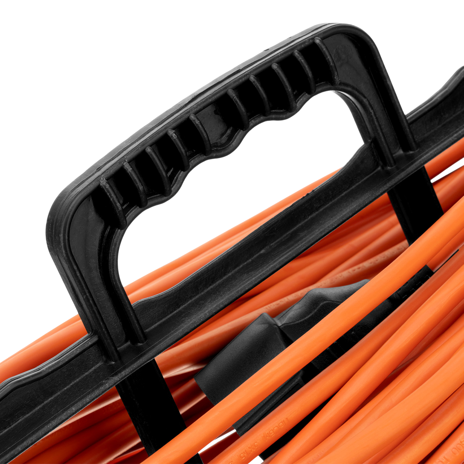 - Хорошая видимость — удлинитель ярко-оранжевого цвета заметен среди прочих предметов и строительного мусора.
