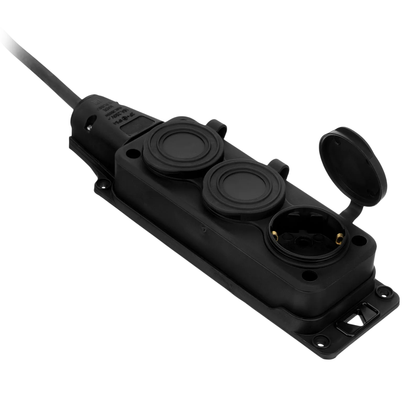 - Высокая степень защиты — удлинитель можно использовать даже во время выпадения осадков.