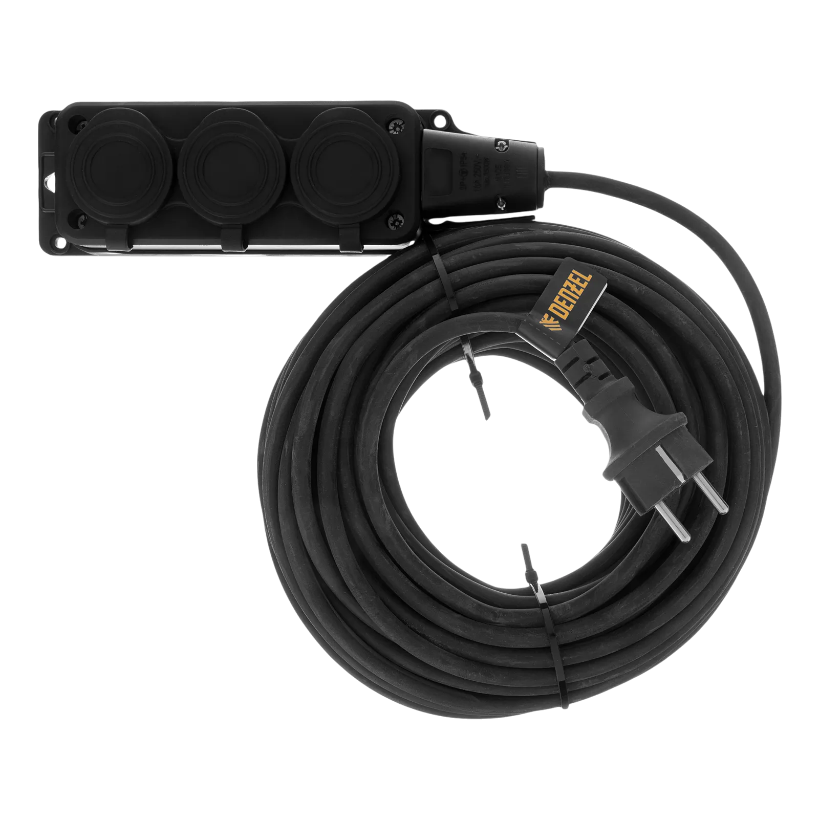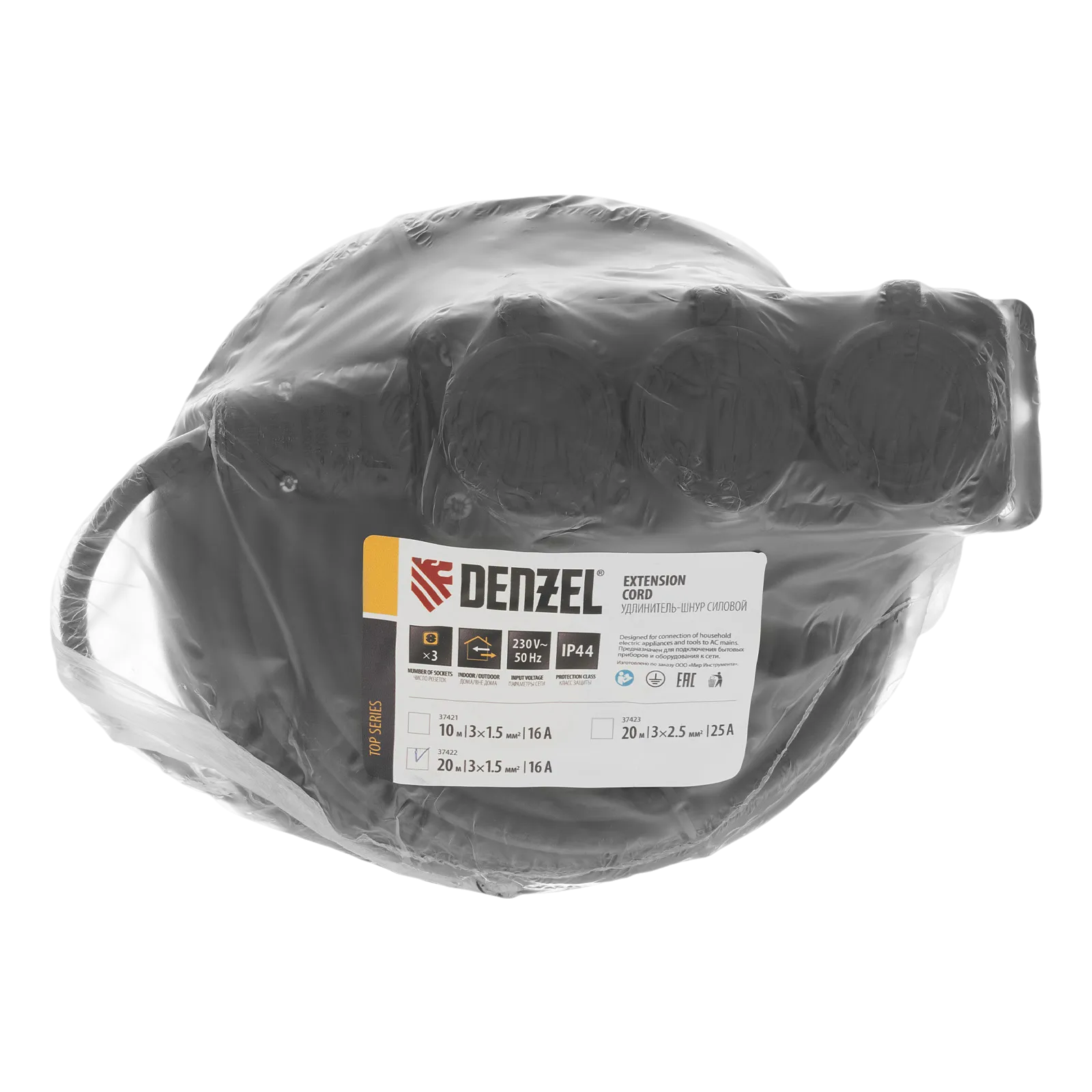 Силовой удлинитель-шнур Denzel Top Series 37422 с 3 розетками, с кабелем КГТТ сечением 3 x 1,5 мм и длиной 20 м, предназначен для подключения электроприборов на удалении от розетки. Суммарная мощность потребителей составляет 3680 Вт для полностью размотанного кабеля и 1840 Вт — для смотанного. Удлинитель подходит для подключения электроинструмента, будет полезен на строительной площадке и в быту.
