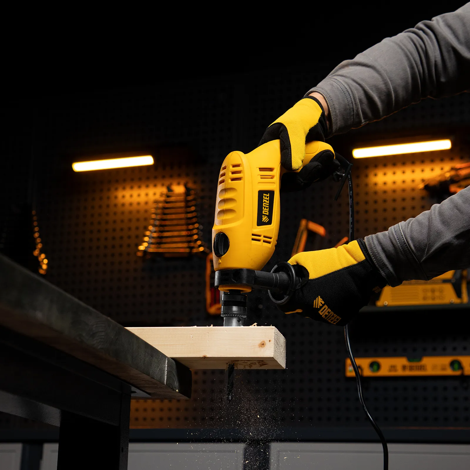 - Комфортная работа — обрезиненная боковая рукоятка не выскальзывает из руки, дрель весит 1,7 кг, что позволяет долго работать без ощущения усталости.