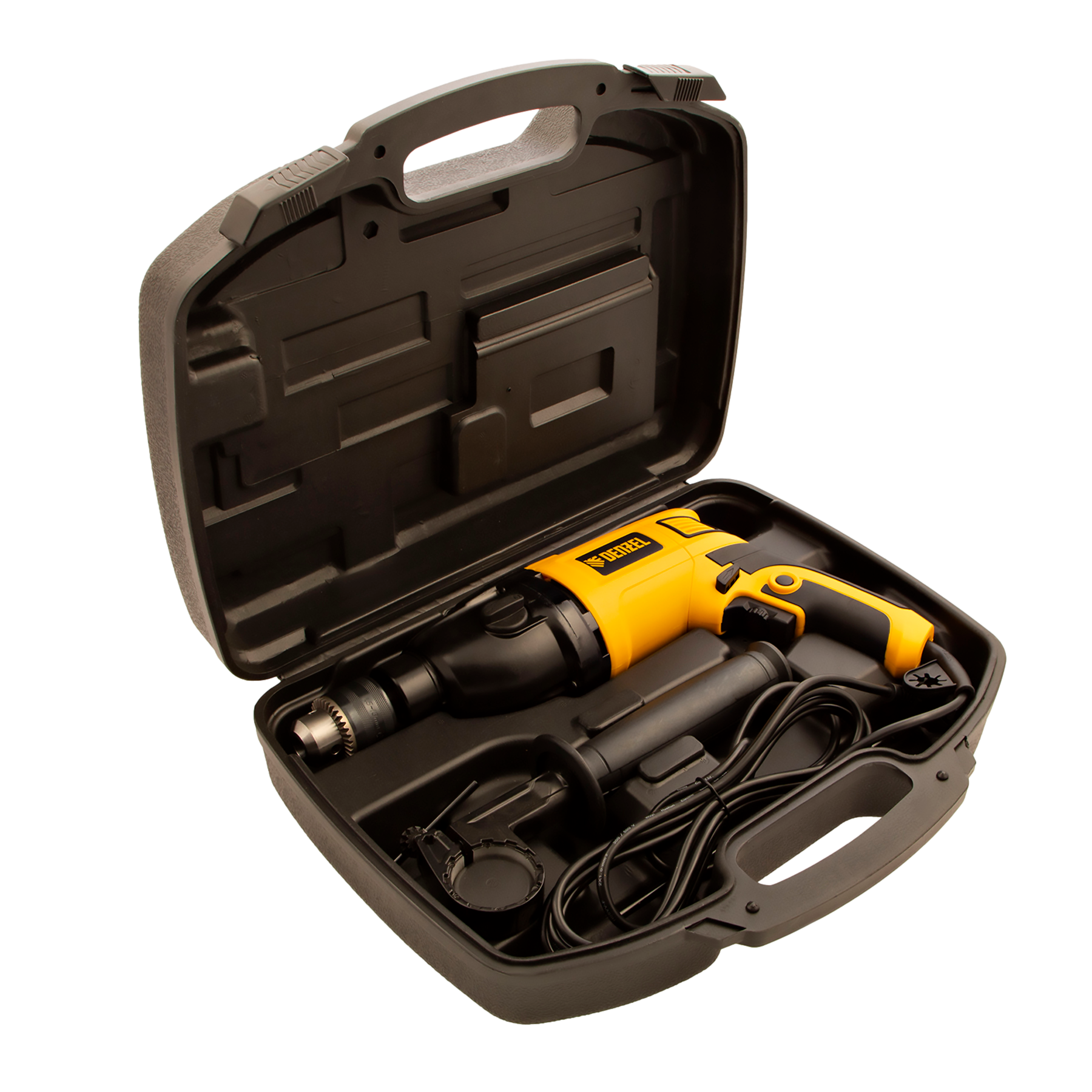 - Удобное хранение и транспортировка — дрель поставляется в прочном кейсе.