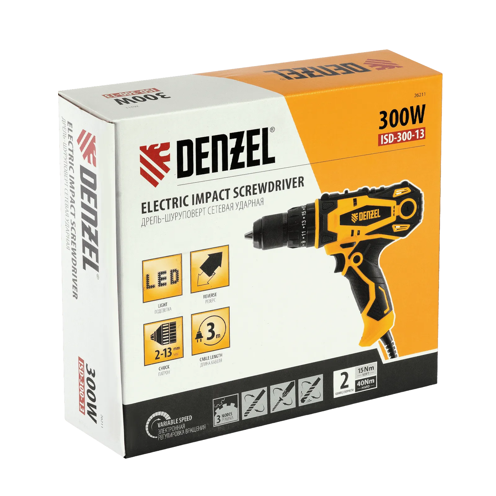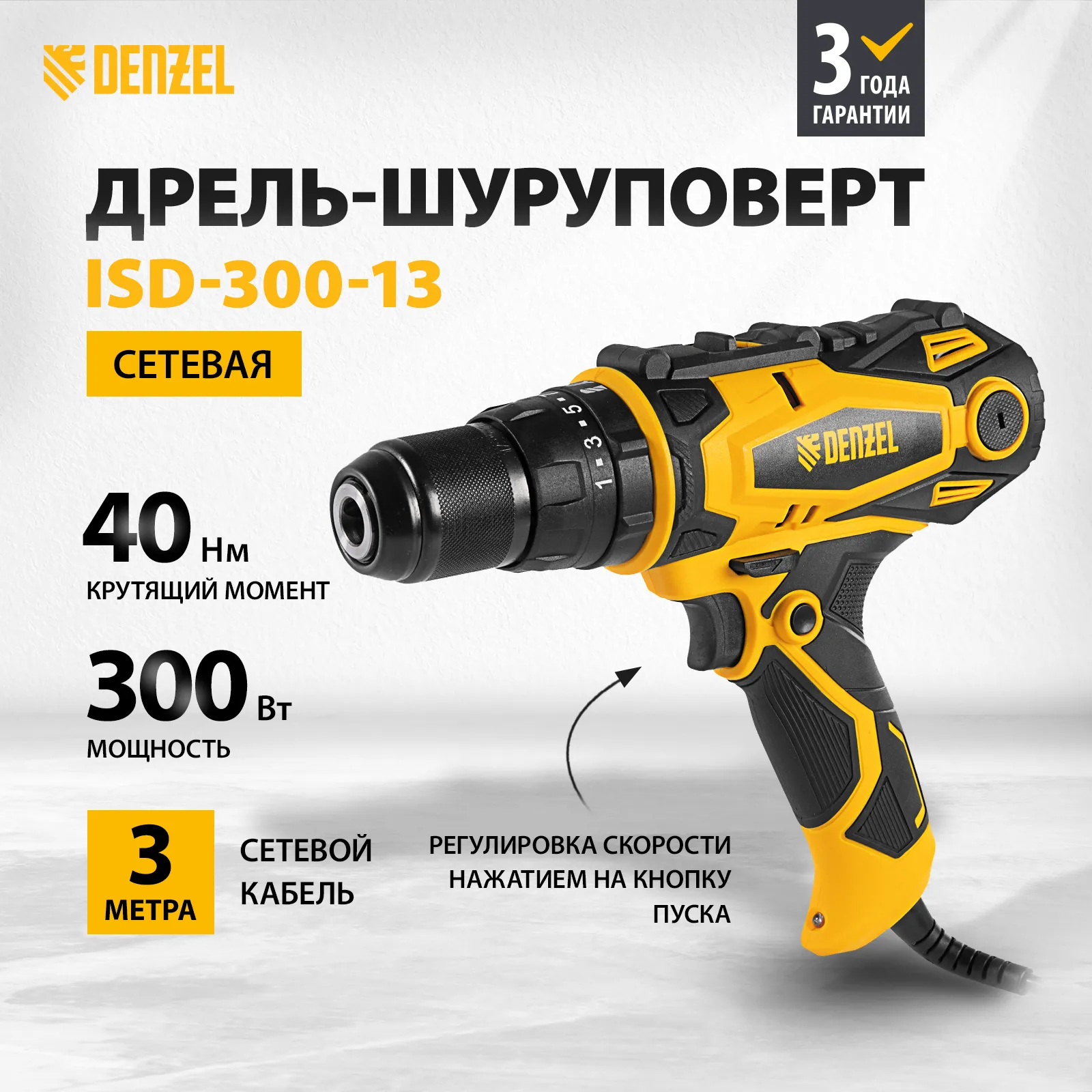 Сетевая дрель-шуруповерт Denzel ISD-300-13 26211 предназначена для монтажа и демонтажа резьбовых соединений, а также сверления отверстий в металле (до 10 мм), древесине (до 20 мм) и других материалах. Ударный режим позволяет получать отверстия диаметром до 10 мм в твёрдых материалах. Металлический патрон выдерживает высокие динамические нагрузки. Высокий крутящий момент до 40 Нм позволяет работать с оснасткой, требующей значительных усилий для завинчивания крепежа. Дрель-шуруповерт будет полезна на строительной площадке и в быту.