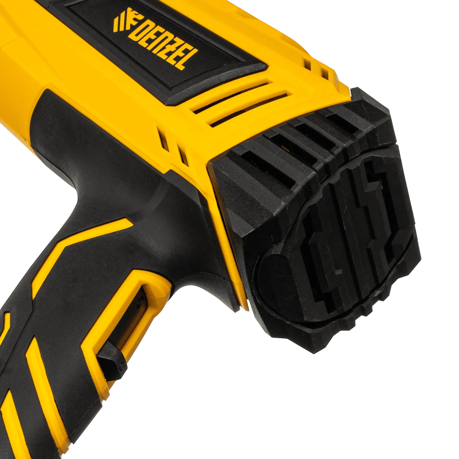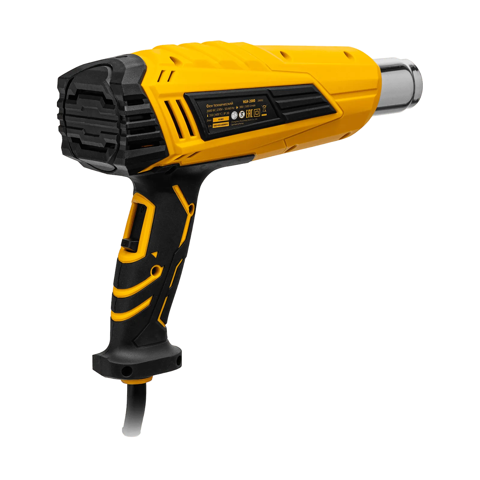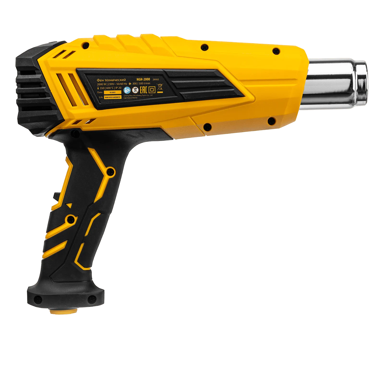 Фен технический Denzel HGH-2000 28002 мощностью 2000 Вт поддерживает 2 режима работы, обеспечивая стабильную производительность на уровне 300 или 500 л/мин. В зависимости от выбранного режима рабочая температура составляет 350 °C или 600 °C. Фен позволяет просушивать и снимать лакокрасочные покрытия, производить сварку пластиковых изделий, паять и размораживать трубы, проводить дезинфекцию поверхностей с помощью потока горячего воздуха, а также решать множество других задач.