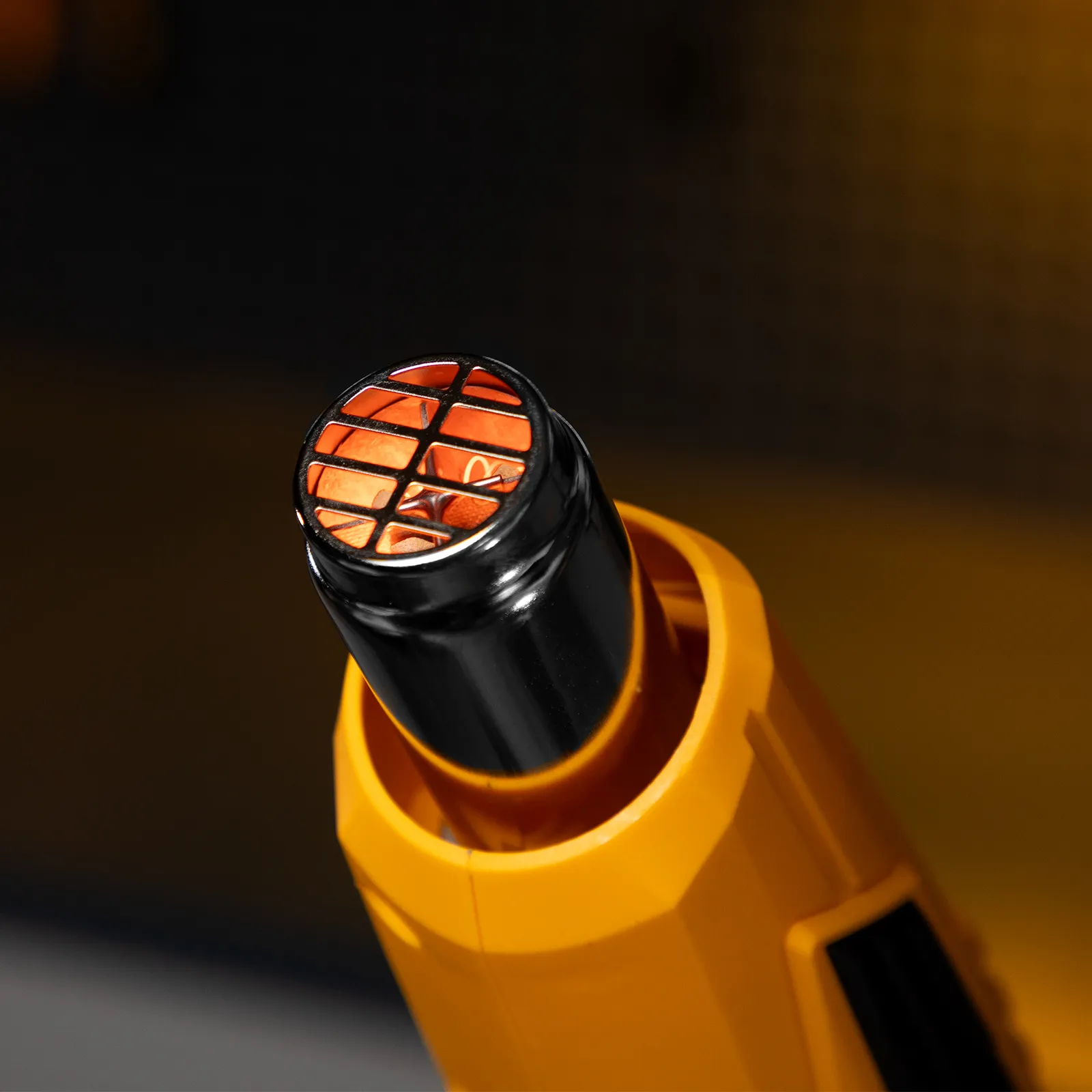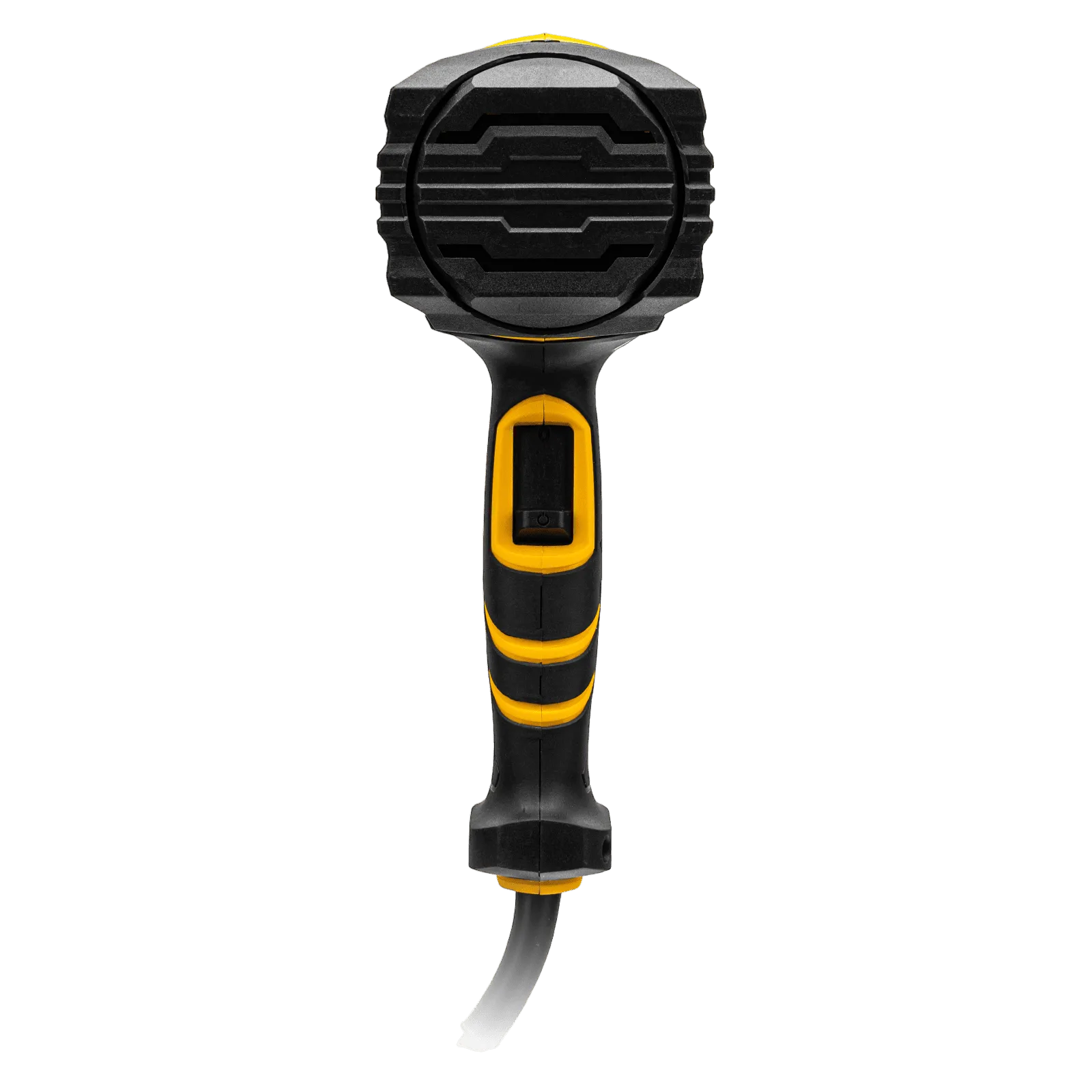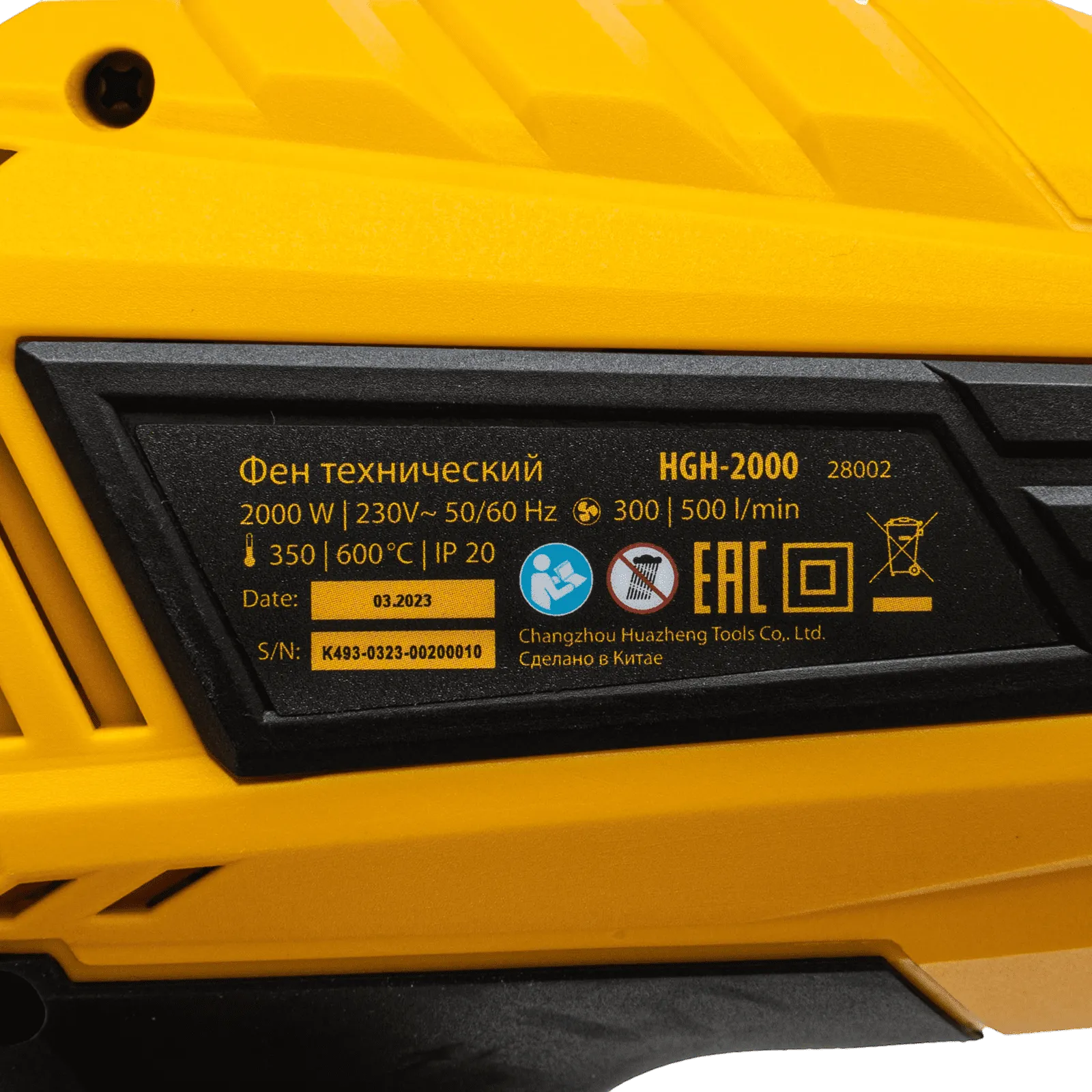 Фен технический Denzel HGH-2000 28002 мощностью 2000 Вт поддерживает 2 режима работы, обеспечивая стабильную производительность на уровне 300 или 500 л/мин. В зависимости от выбранного режима рабочая температура составляет 350 °C или 600 °C. Фен позволяет просушивать и снимать лакокрасочные покрытия, производить сварку пластиковых изделий, паять и размораживать трубы, проводить дезинфекцию поверхностей с помощью потока горячего воздуха, а также решать множество других задач.