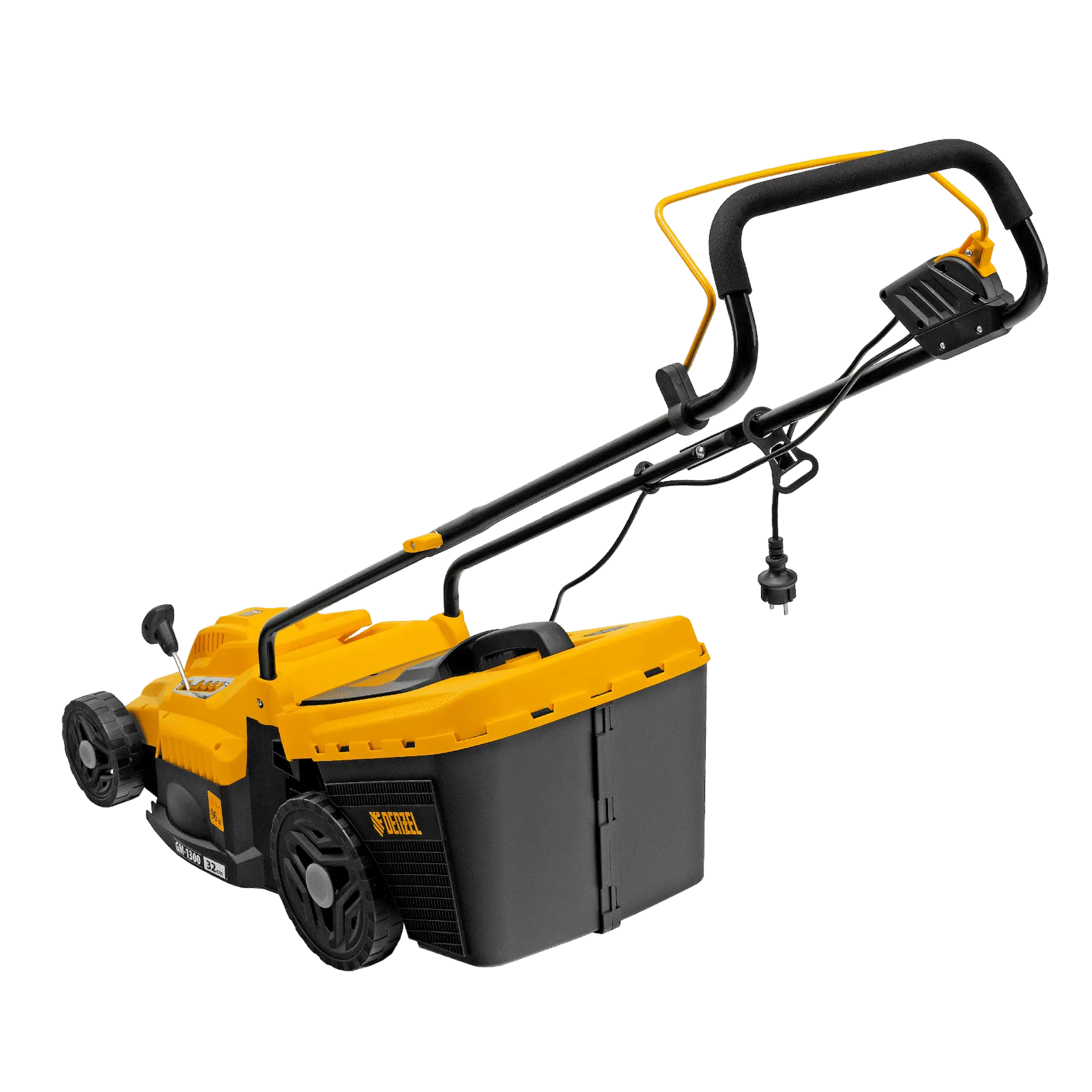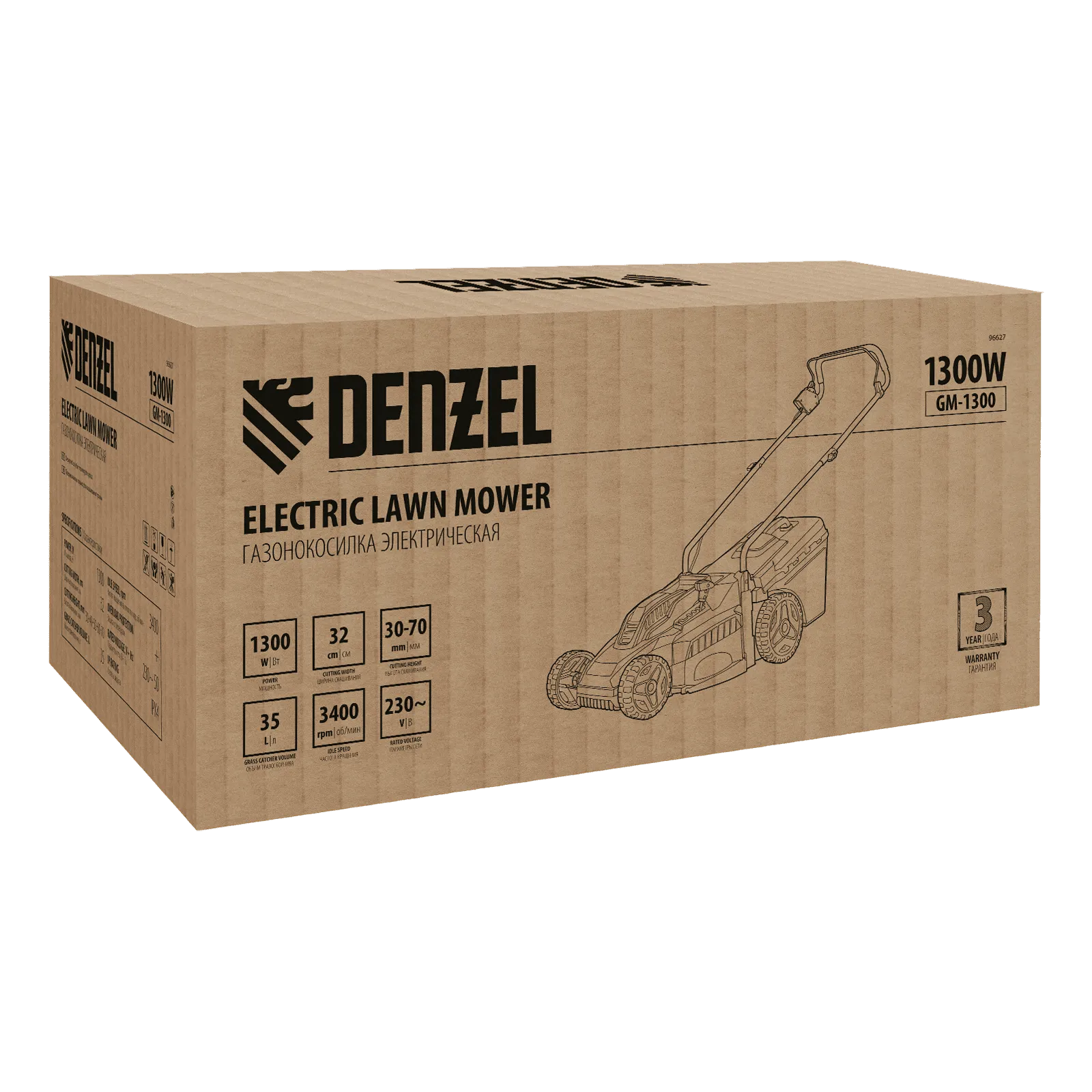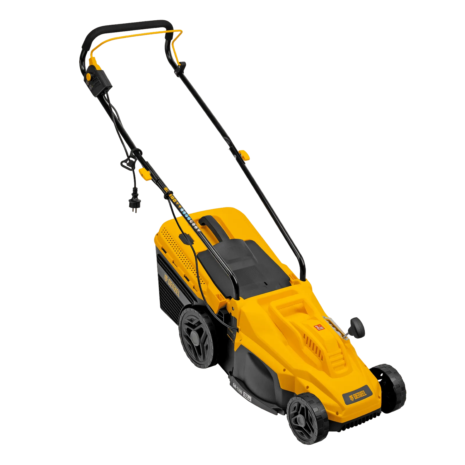 Газонокосилка электрическая Denzel GM-1300 96627 мощностью 1300 Вт, с травосборником объемом 35 л и 5 уровнями скашивания, обеспечивает ширину прохода 32 см и предназначена для стрижки газонов, кошения травы в саду и на небольшом приусадебном участке. Предусмотрена 5-ступенчатая регулировка высоты скашивания (от 30 до 70 мм) в зависимости от типа газона. Газонокосилка проста в управлении и обслуживании, с ней легко справится неопытный пользователь.