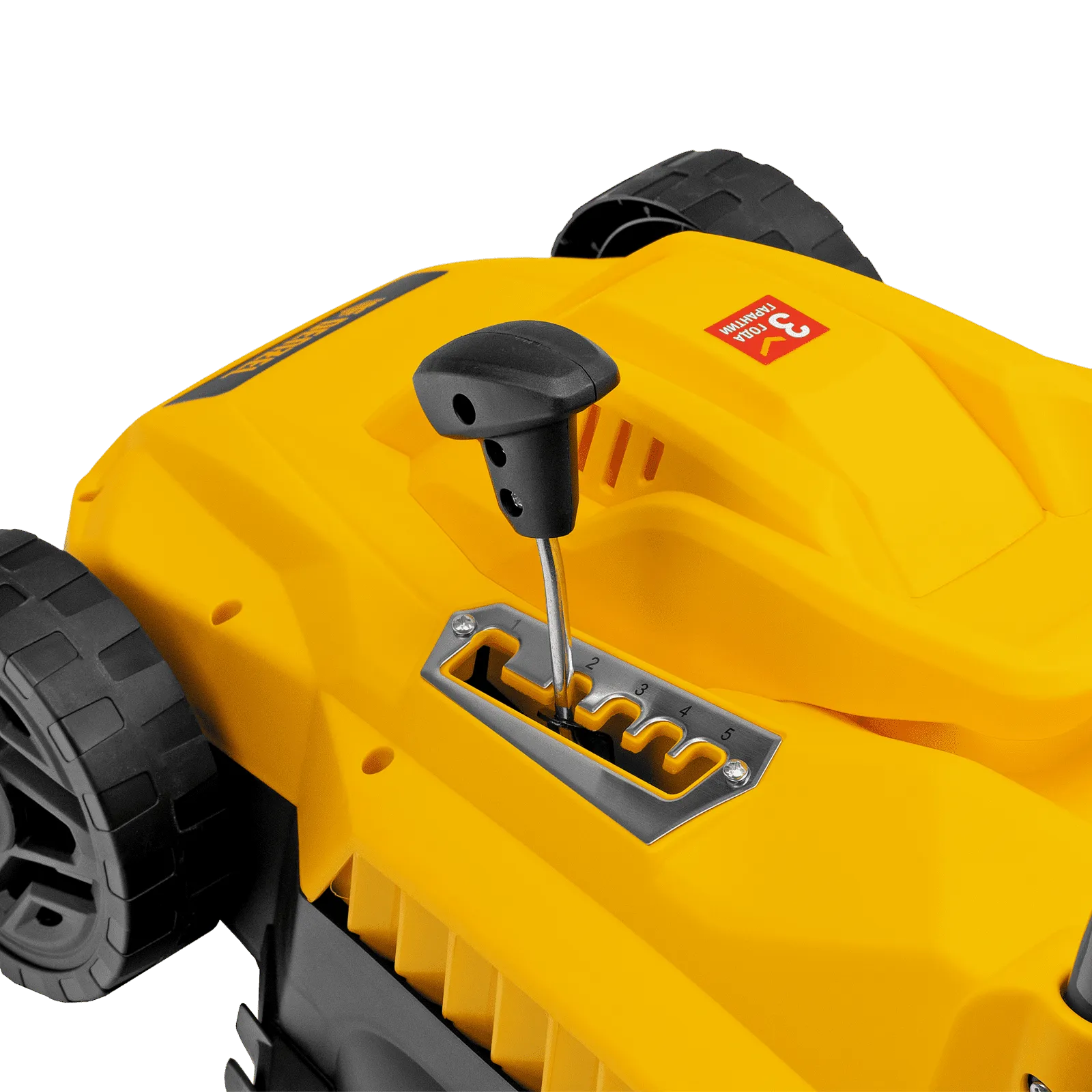 - Простая регулировка высоты скашивания — достаточно установить рычаг в нужное положение, что удобно сделать даже одной рукой.
